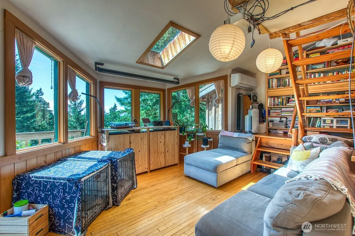 Ten acres & two parcels at the end of Hurricane Hill Rd near the amenities of the Orcas Village/Ferry & Killebrew Lake. Sunny location for rustic 2 story 2/bdrm home w/views of Olympic Mountains & distant islands. French doors lead to a deck overlooking the fenced garden, open kitchen w/ induction range, wood floors, sky lights, new heat pump/mini split. Bathroom w/sink & shower. Composting toilet & gray water system. Two new outbuildings can be offices, guest or studio space. Campsite cleared in a serene grove for overflow guests. Parcels adjoin SJ County Land Bank properties on the north & west sides. Well has approx 144 gal/day, 350 gal storage tank, UV and ultra sub micron filters. Seller was able to obtain conventional financing.