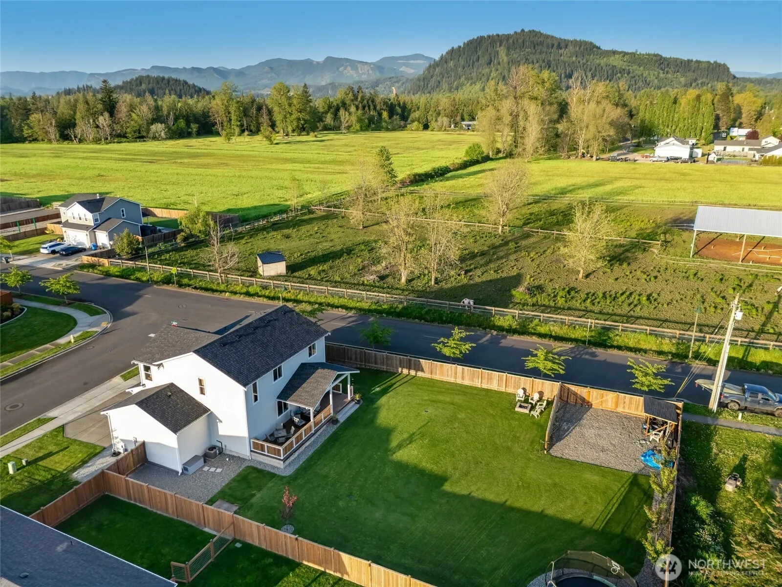 Better than new Richmond American home on over a 1/4 acre corner lot with stunning mountain views! Featuring 4 bedrooms, 3 bathrooms, and open-concept seamless indoor/outdoor living. Main level features 9ft ceilings & tons of natural light, with custom touches throughout. Spacious kitchen with stainless steel appliances & walk in pantry. Upstairs find 4 bedrooms including spacious primary with ensuite & walk-in closet, extra full bathroom & utility room. Upgraded with A/C for upcoming summer days! South facing backyard & expansive partially-covered deck is perfect for entertaining, gardening, the sky’s the limit – and yes, the riding lawn mower stays! Gated access from street to back part of yard for additional parking/toy storage.