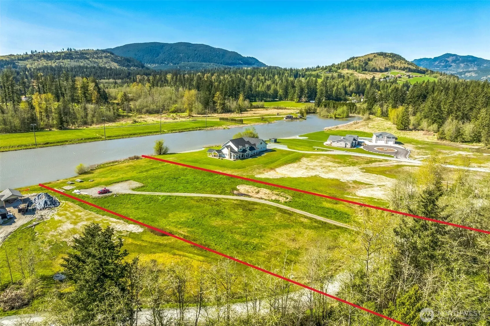 Build-ready stunning 5.8-acre lot with 203′ of low-bank lakefront in sought-after Bow Lake Estates—1 of just 3 vacant parcels left! Ideally located just minutes from I-5 & halfway between Seattle & Vancouver BC. This gated 8-lot luxury home community offers exclusive & private access to a unique waterski lake plus the marina, dock, boat launch, boat slips, hot tub, & more. Major prep work is complete: well & power on-site, 6-bed septic permit approved, wetland review & stormwater report complete. Last step is underway with plans for a 3,600 SF home with 6-car garage currently under county review—use them or opt to submit your own. This is a rare opportunity to fast-track a custom lakefront dream home in a premier PNW watersport destination!
