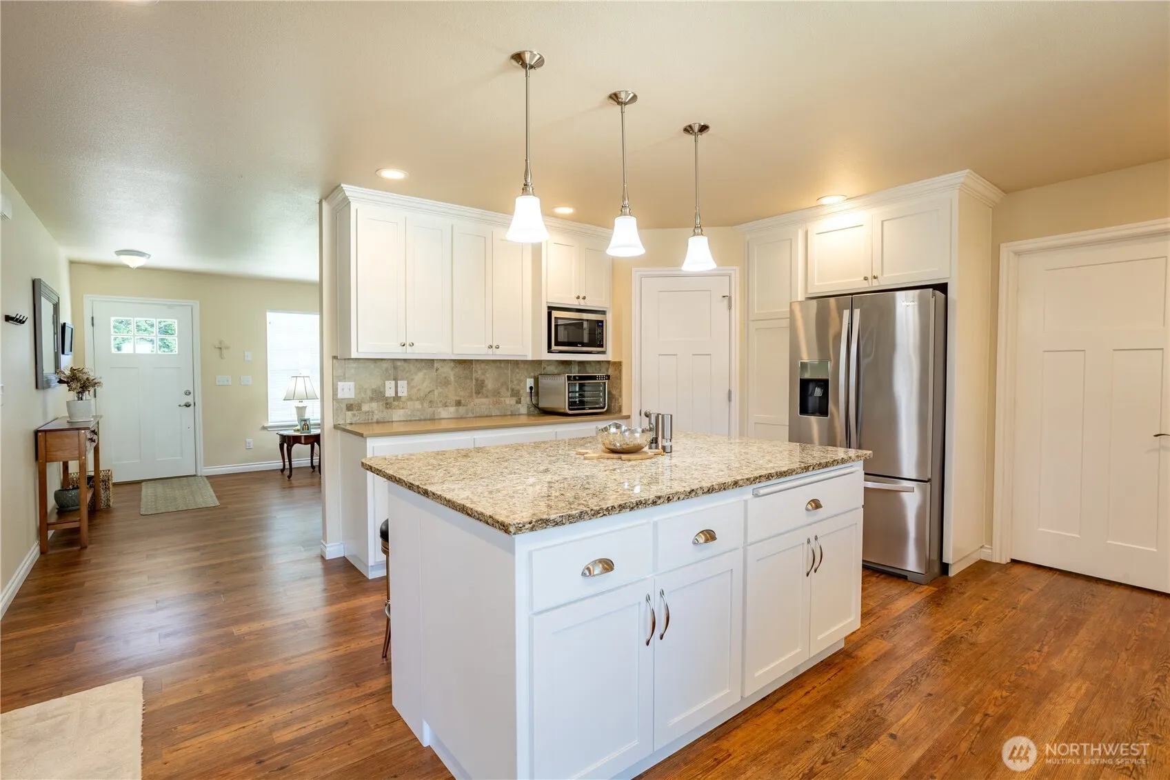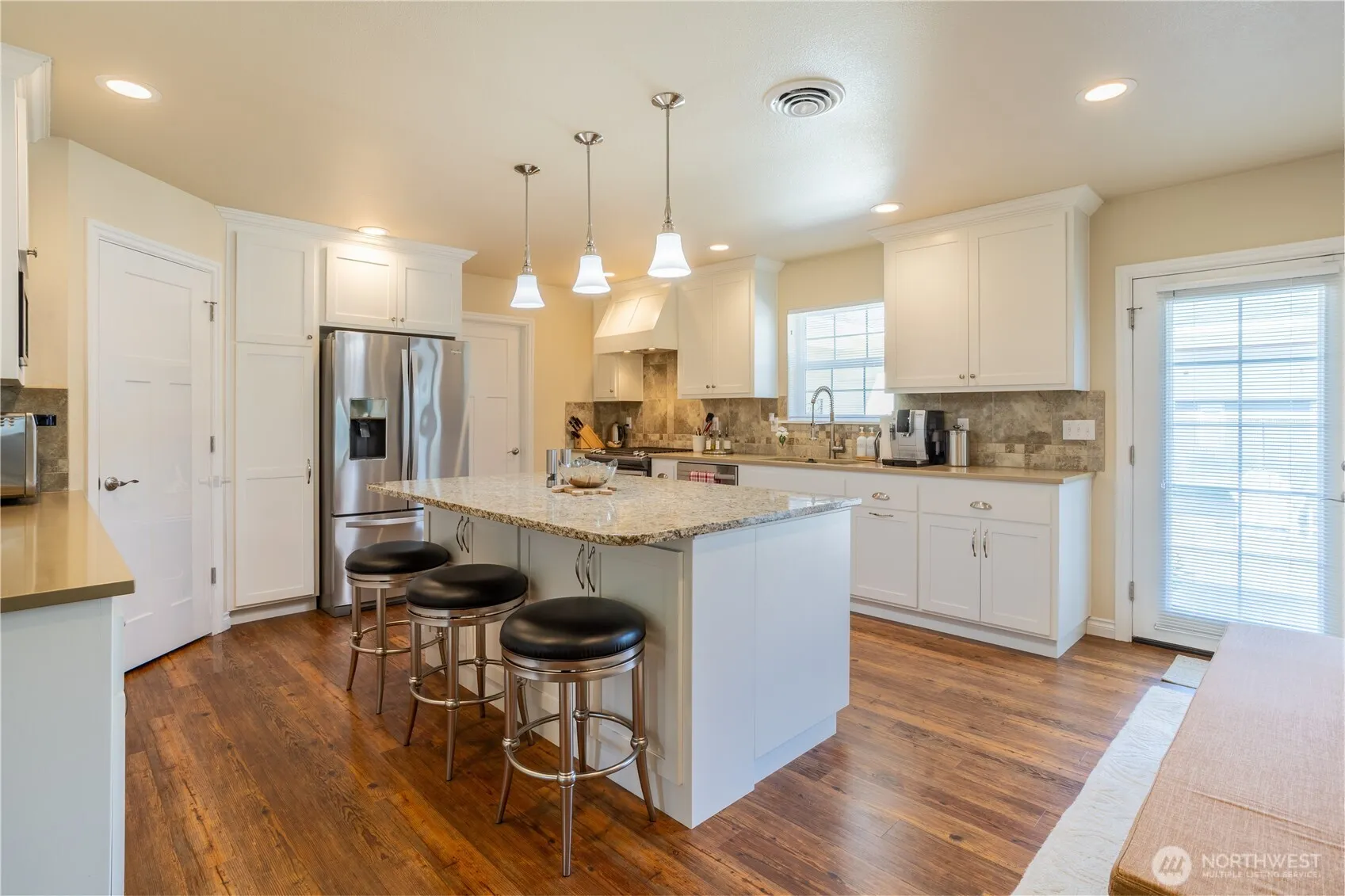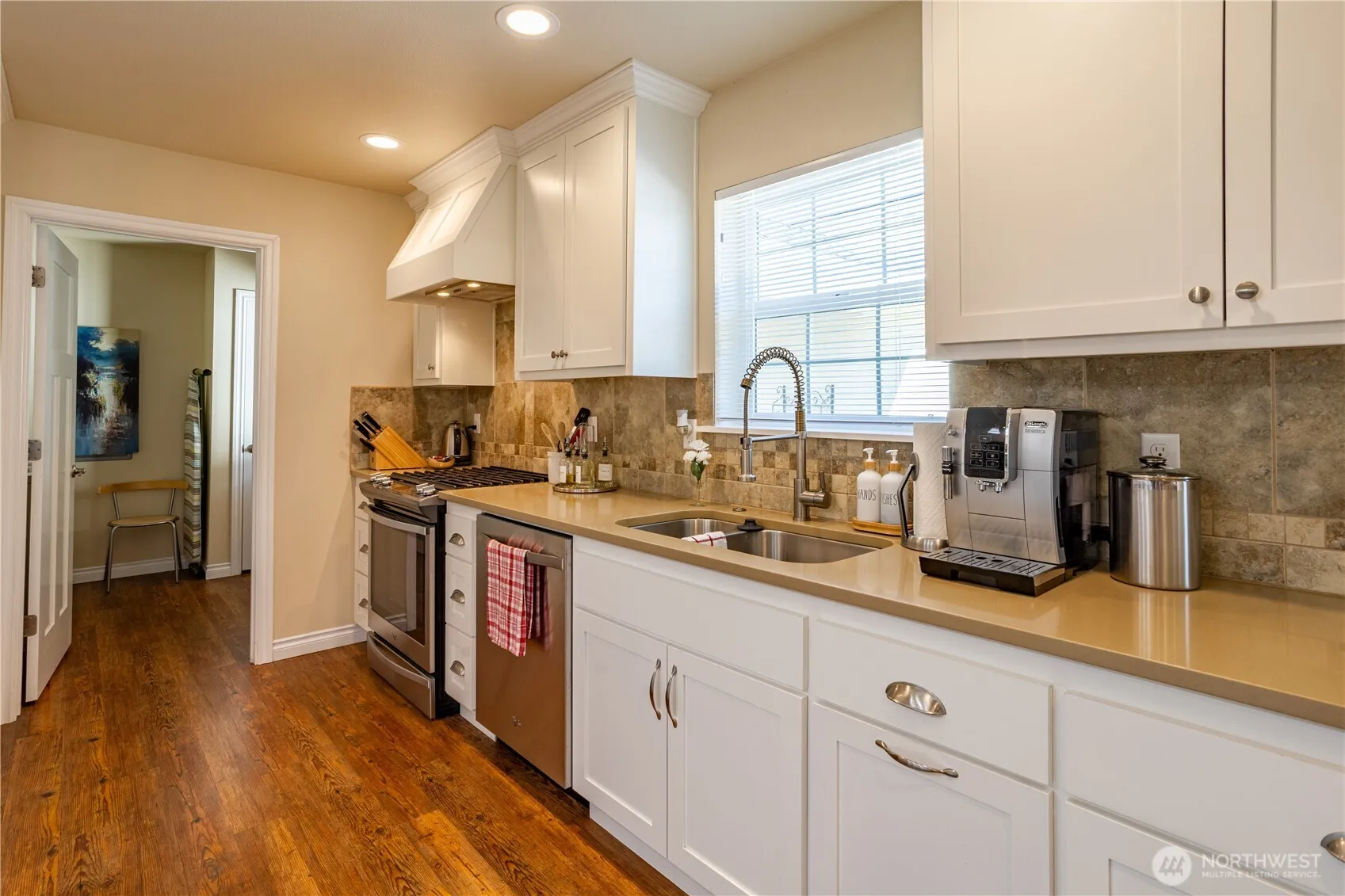 Step inside this elegant single-story home boasting 3 bedrooms and 2 full baths, discover a wealth of living space including dining room, a cozy family room, and bright inviting living room. The chef’s kitchen with eating space and professional gas stove is a dream, while conveniences like a tankless water heater and heat pump ensure comfort and efficiency. Situated on an extra-large lot, the back yard is fully fenced and low-maintenance. The manicured lawn and outdoor spaces is an entertainer’s delight with custom covered BBQ area and sundeck. Detached, insulated 720sf garage with ample storage. Home is surrounded with extensive level concrete and front door has accessible level approach. This is a one of a kind, special home.