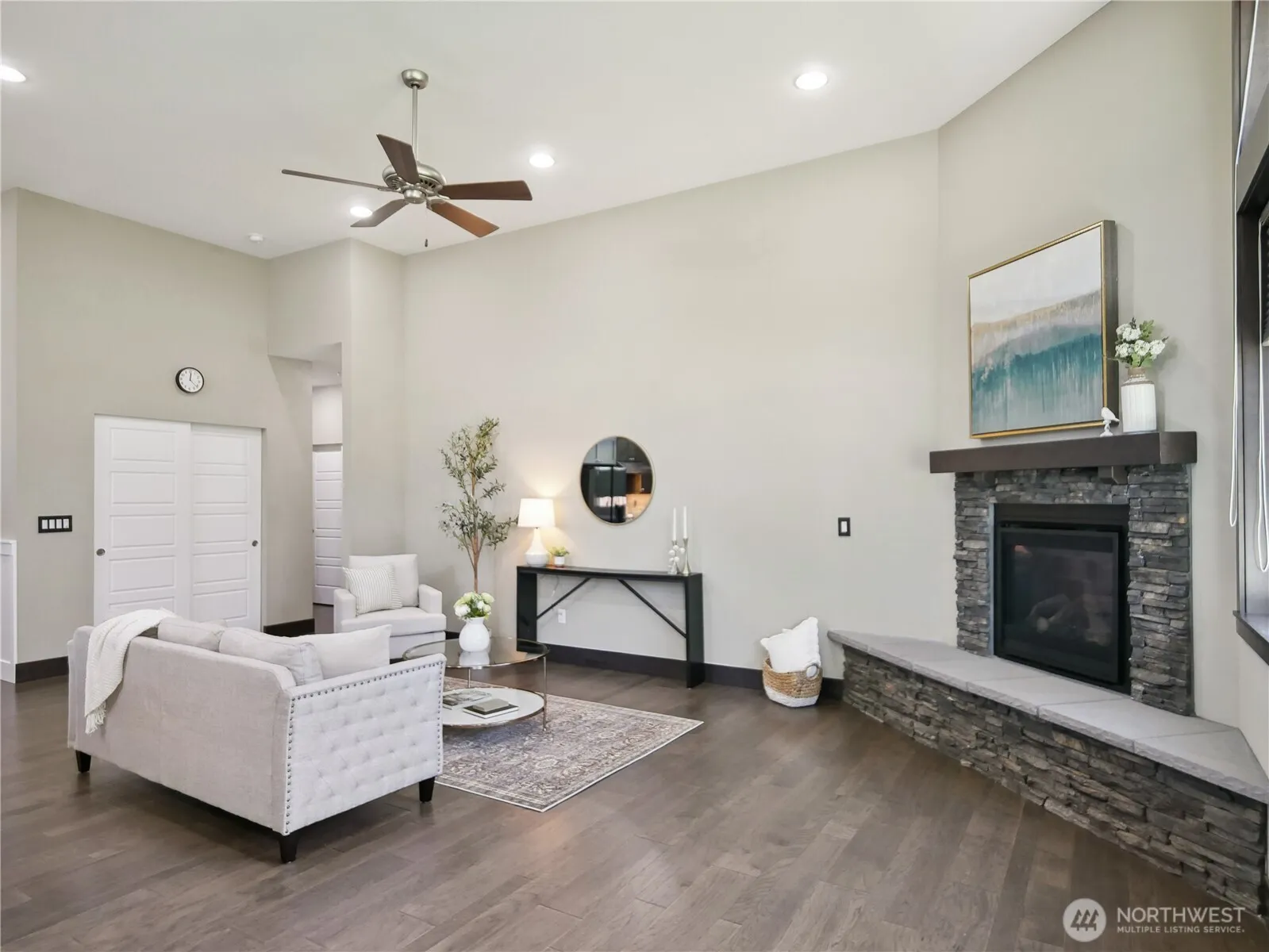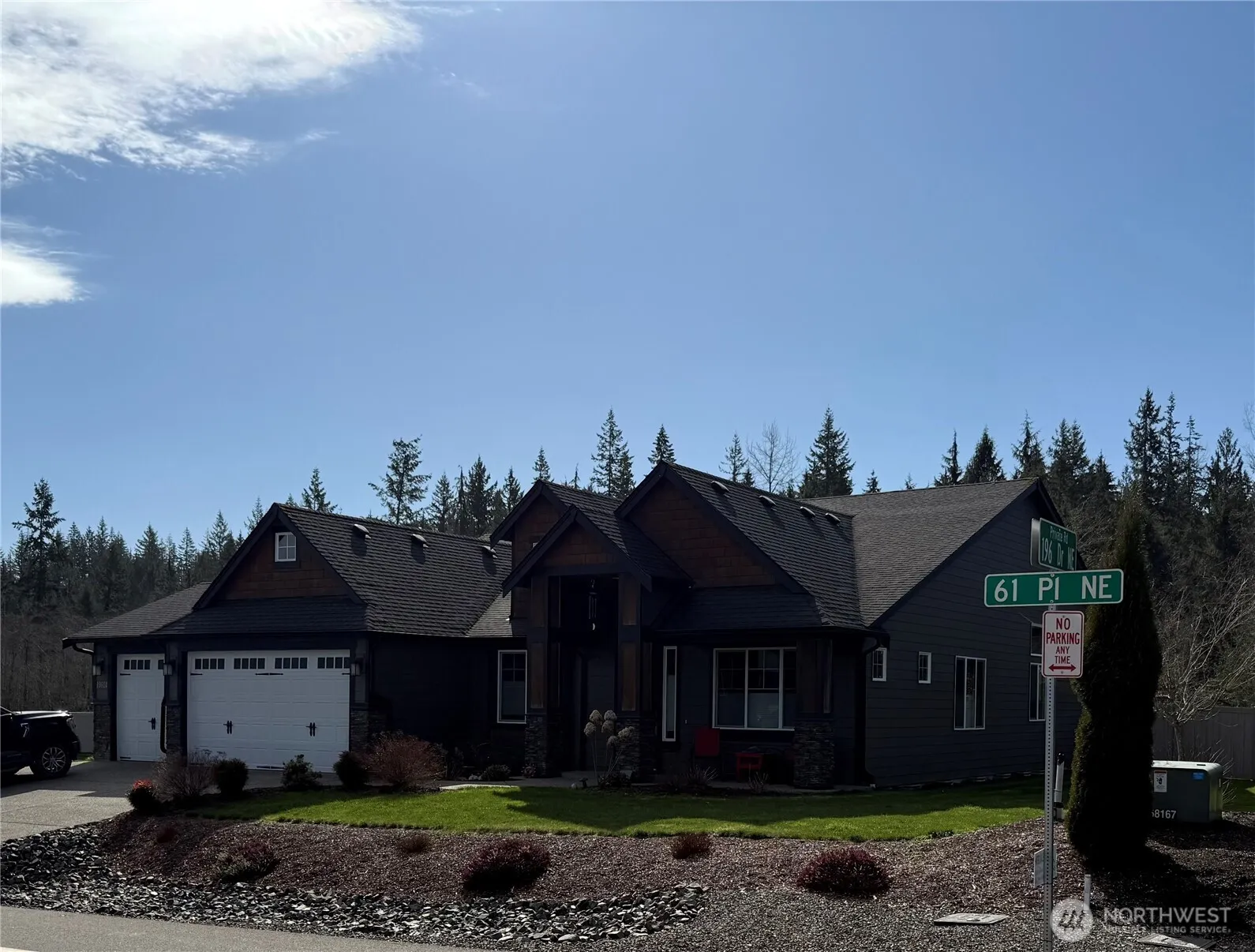 This home is stunning! Enjoy views of Mt. Pilchuck and the Cascades from the front porch. Single-level living. It’s well-maintained and features a large, usable, level, high-quality fenced yard with dedicated green space at the rear. Perfect for lawn games, pets, gardening, or just relaxing. Thoughtfully designed for seamless living and entertaining, the open-concept layout is highlighted by soaring ceilings and high-end finishes. Every detail exudes luxury from the rich laminated hardwood floors to the generous millwork and intricate tile designs. The home includes stainless steel appliances, an energy-efficient heat pump, a three-car garage, and plenty of additional storage space. The storage shed and washer/dryer stay!