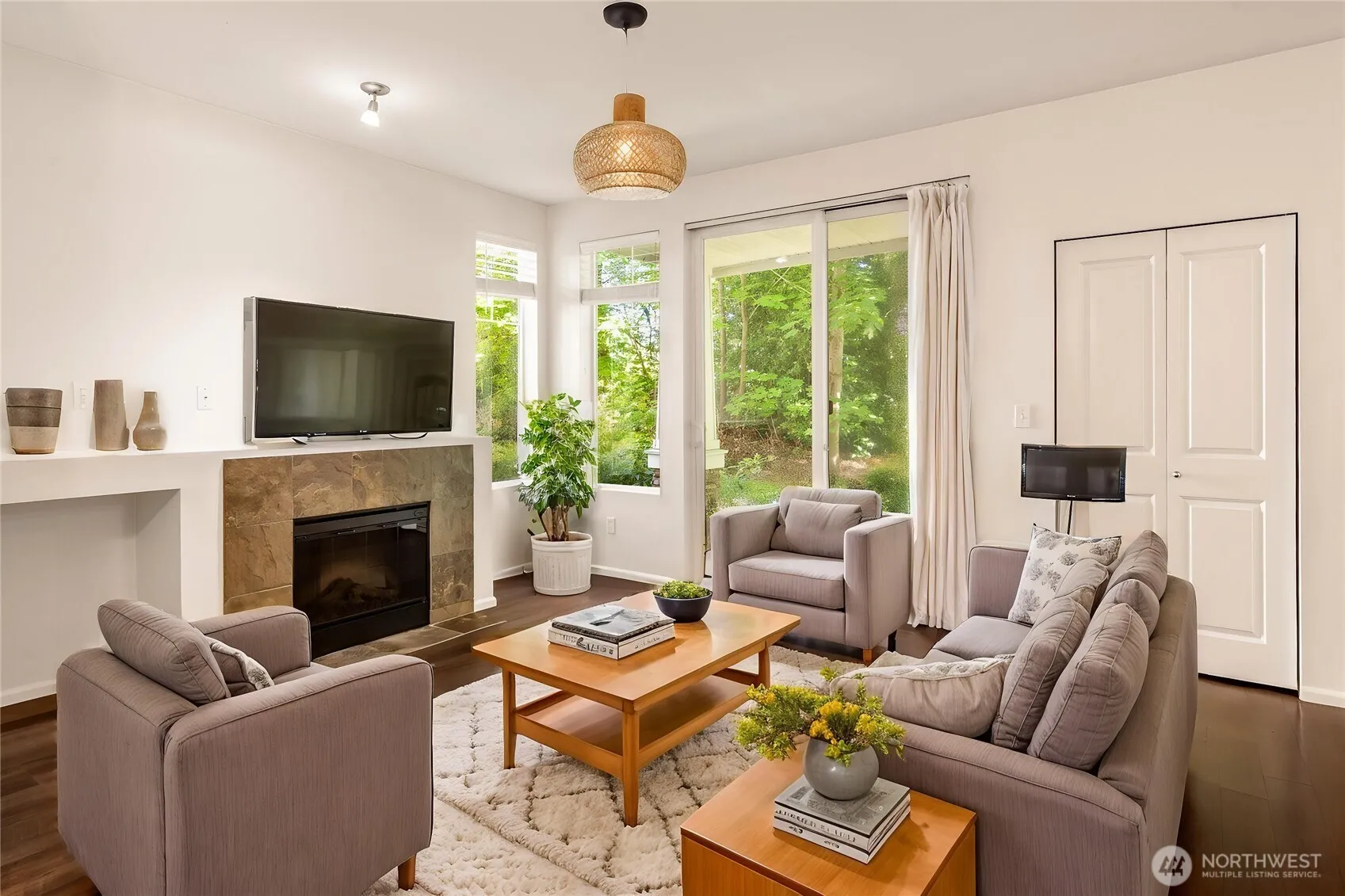 Spacious 2BR/2BA private lower level end-unit condo in Viewcrest with an airy open-concept layout. The generous kitchen offers ample storage and counter space, flowing into the inviting living room with large windows and a cozy fireplace. The primary suite includes a walk-in closet & en suite bath with dual vanity and soaking tub. Second bedroom offers flexible use. Enjoy year-round relaxation on the covered patio in a park-like setting. Includes detached 1-car garage. Well-maintained community just minutes to Southcenter, Sea-Tac, I-5, and light rail. Appliances stay. No rental cap—ideal for homeowners or investors!