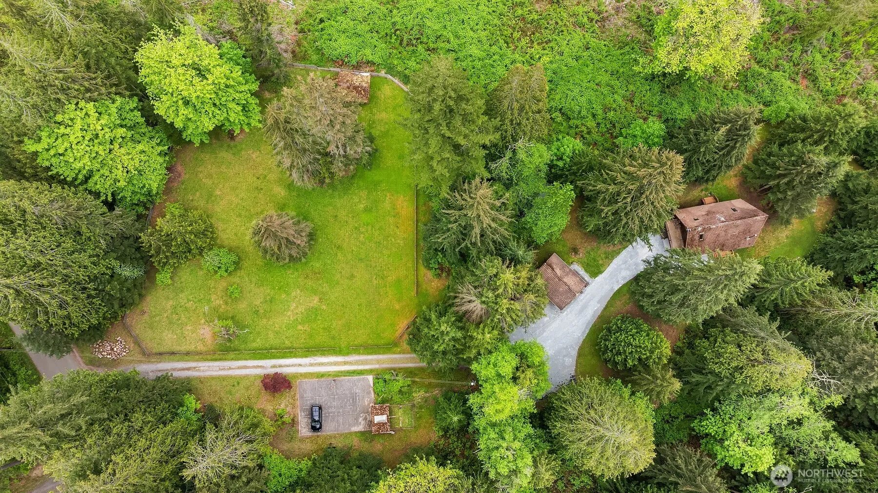 [2 HOMES] Escape to this secluded PNW A-frame, tucked away on 3.6 acres bordering Pilchuck Tree Farm. NO NEIGHBORS in sight—just peace, quiet, & nature. The main house features vaulted ceilings & abundant natural light, with a main-floor bed/bath plus an upstairs bedroom, bath, & office space. The open-concept kitchen, living, and dining areas provide plenty of space for entertaining. TINY HOME/ADU offers rental income potential—perfect for multigenerational living, Airbnb, or more. Enjoy a pasture ideal for horses, nice wood shed + outbuildings, a sport court, pond, and stream, plus ample space to park an RV or build your dream shop. This rare gem offers endless possibilities in a breathtaking setting. Only 10 minutes to downtown Arlington