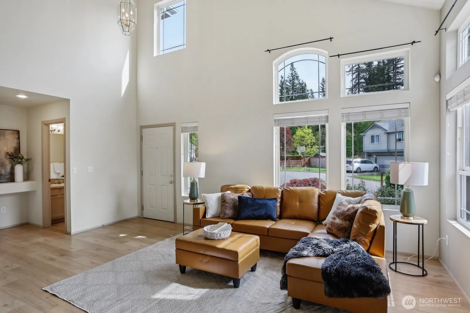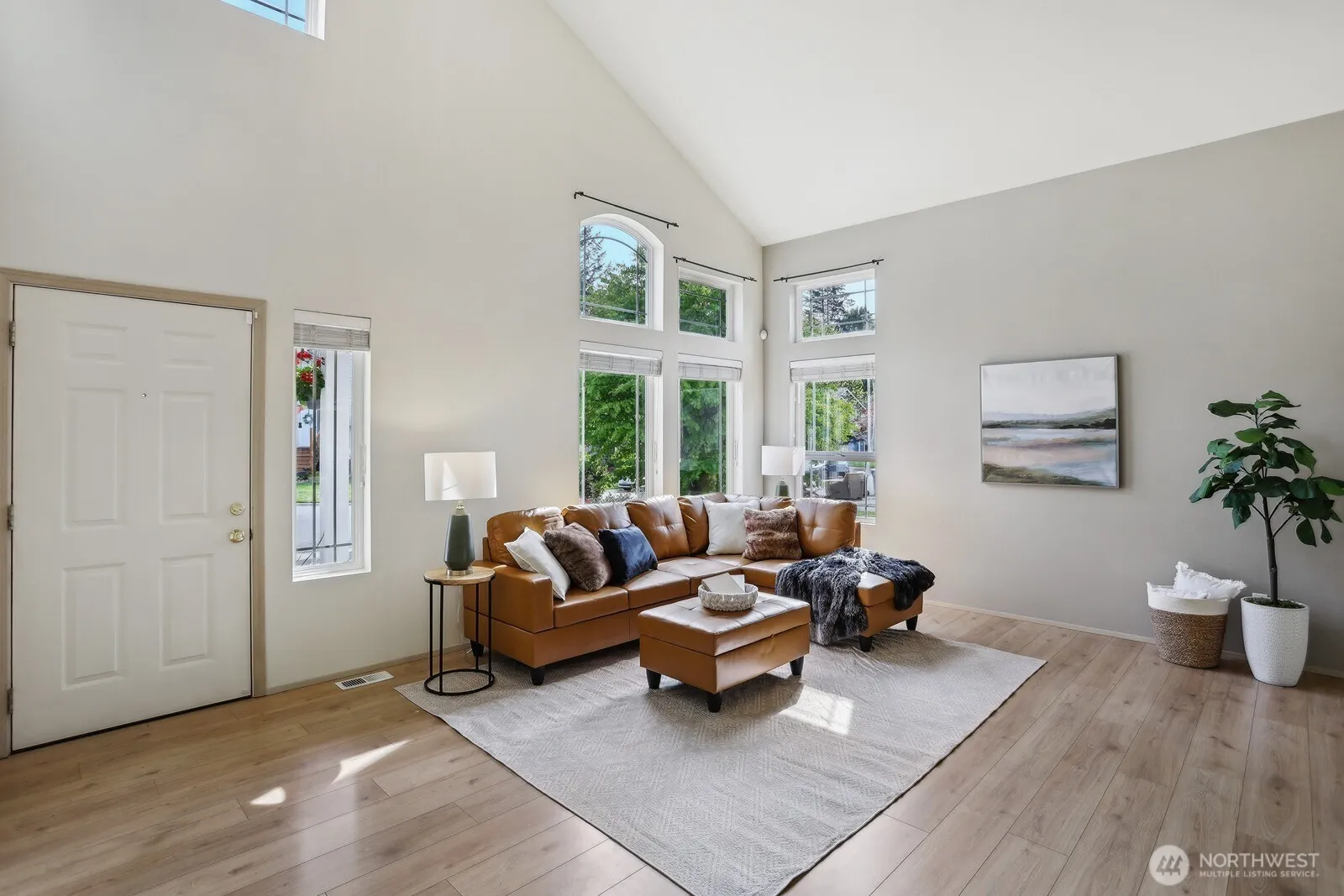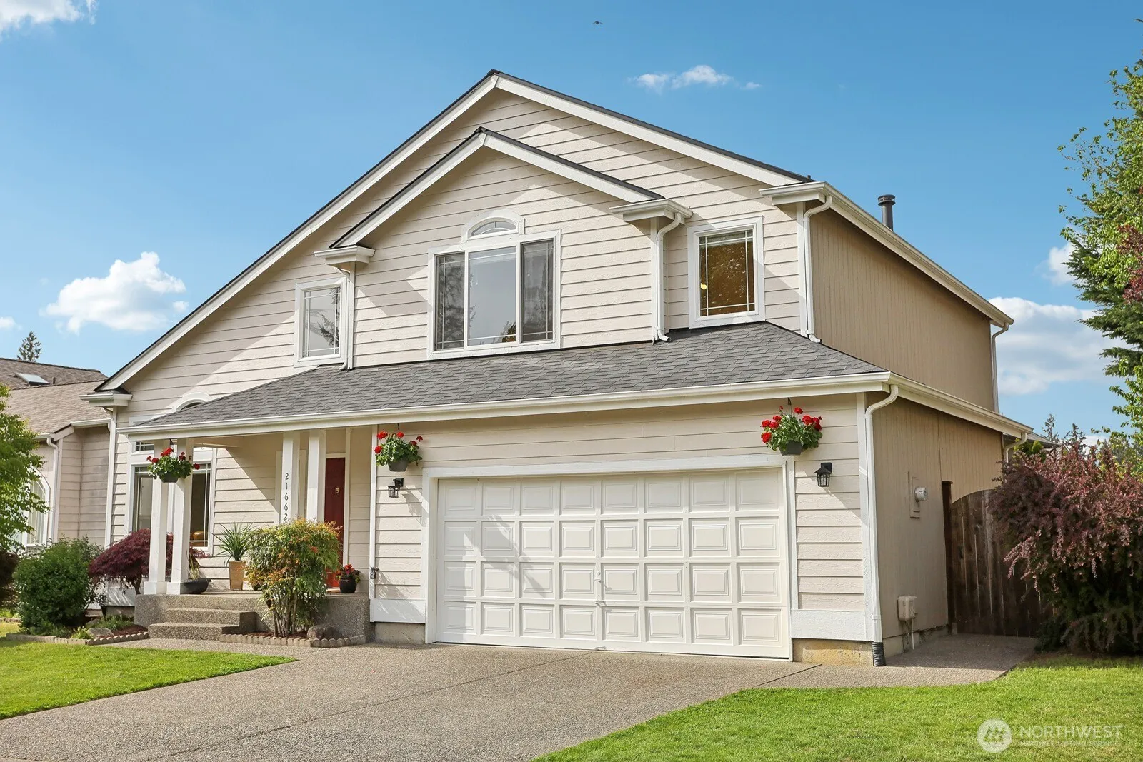 Freshly updated MapleBrook Meadows gem! This home offers a well-designed layout w/ soaring vaulted ceilings, tons of natural light, & a long list of recent upgrades: new roof, fresh paint inside & out, new laminate floors, carpet, & new SS kitchen appliances, sink & faucet—all in 2025. Main level features formal living & dining, gas FP, family room off the kitchen, ½ bath, & laundry. Upstairs boasts 2 guest bedrooms, full bath, plus vaulted primary suite w/ double doors, soaking tub, dual vanities, walk-in closet, & separate shower. Energy-efficient Milgard windows, 2-car garage, fully fenced backyard w/ patio, all tucked in a quiet cul-de-sac. Minutes to parks, shopping, trails, Hwy 18 & award-winning Tahoma schools!