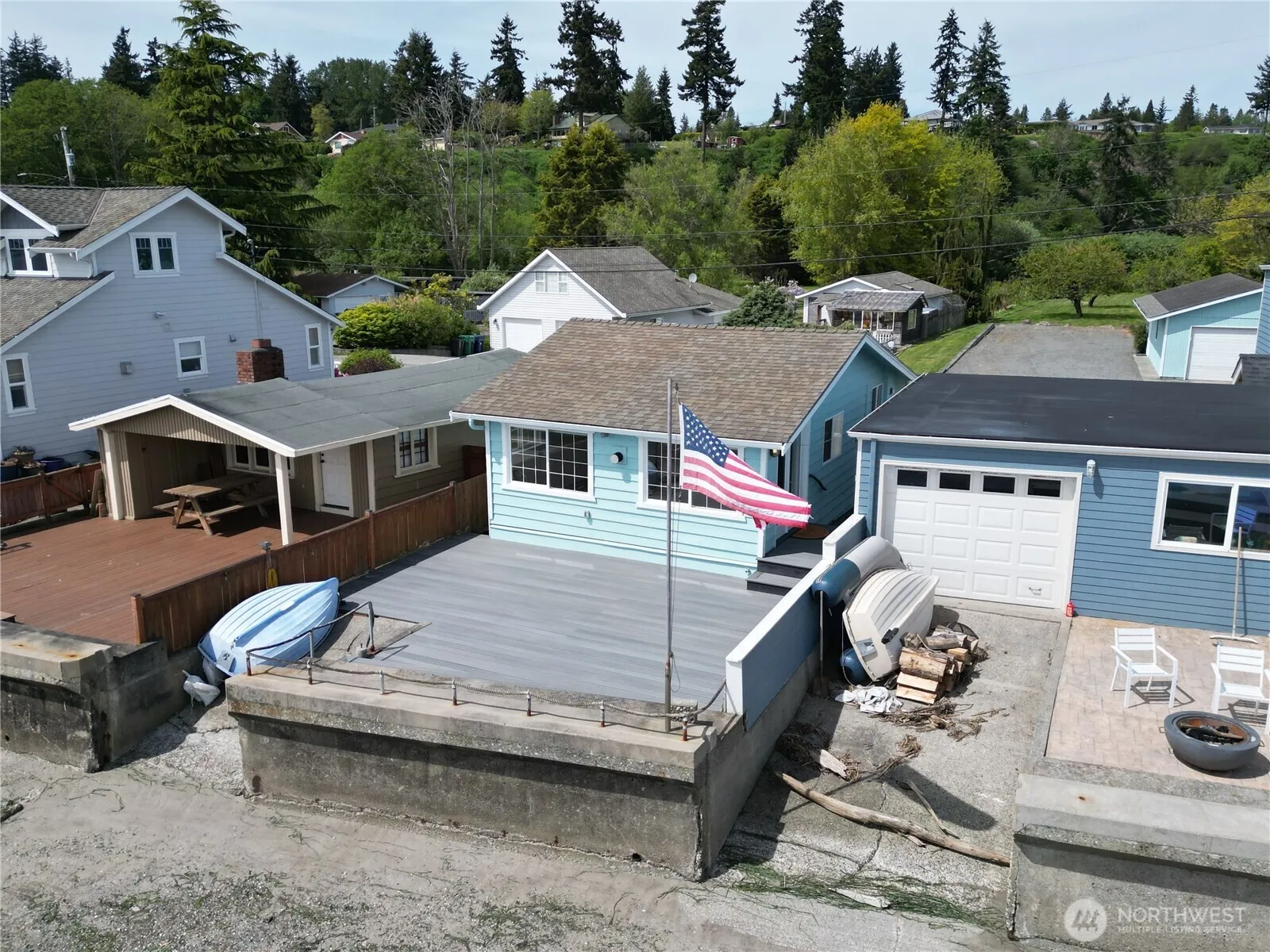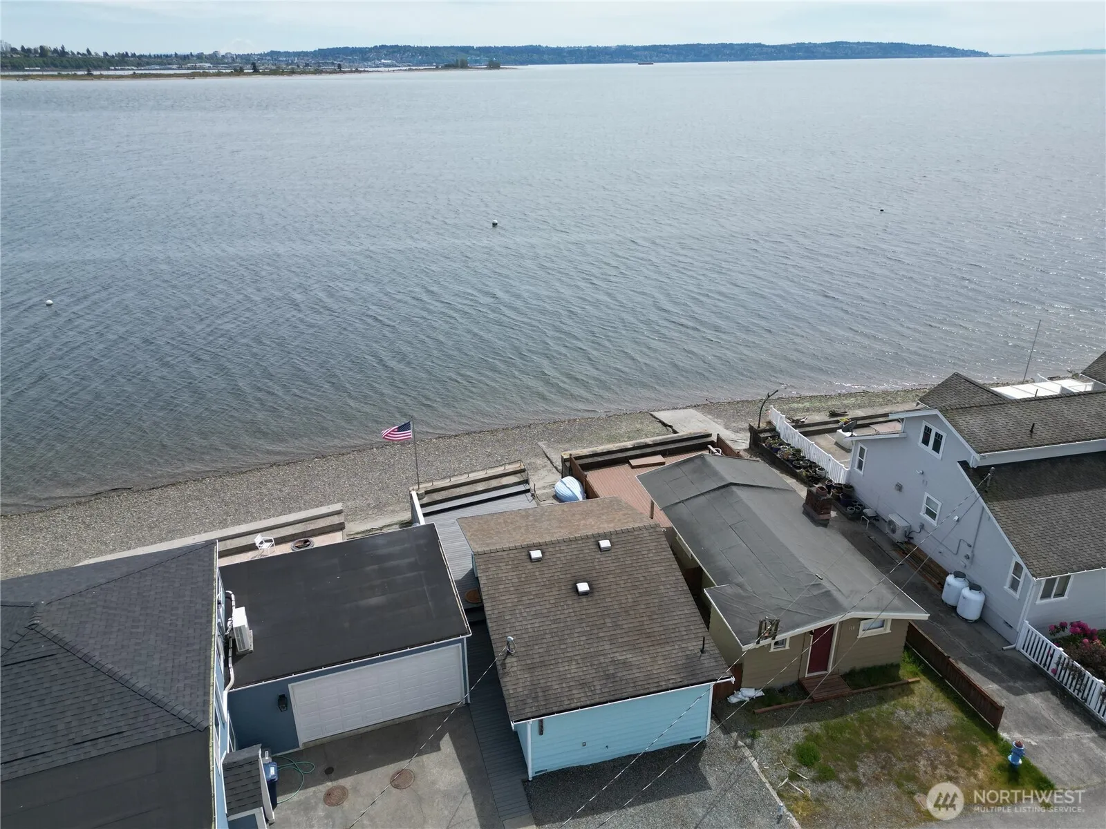 Discover this rare, deeded no-bank beachfront gem in scenic Priest Point! This beautifully maintained 1-bed, 1-bath home offers sweeping views of Mt. Rainier, the Everett skyline, the Cascades & Olympics, Hat & Whidbey Islands, ferries crossing Possession Sound, & the golden sands of the Jetty. Inside, enjoy bright, spacious living areas with large windows that flood the home with natural light & coastal charm. Recent upgrades include fresh exterior paint in a serene coastal color called “Water” & a brand-new Trex deck—perfect for entertaining or unwinding by the sea. Across the street, a generous 21,780 sq ft bonus lot features a detached garage, bonus room, RV parking, and space to build the shop of your dreams. No lease—you own the land!