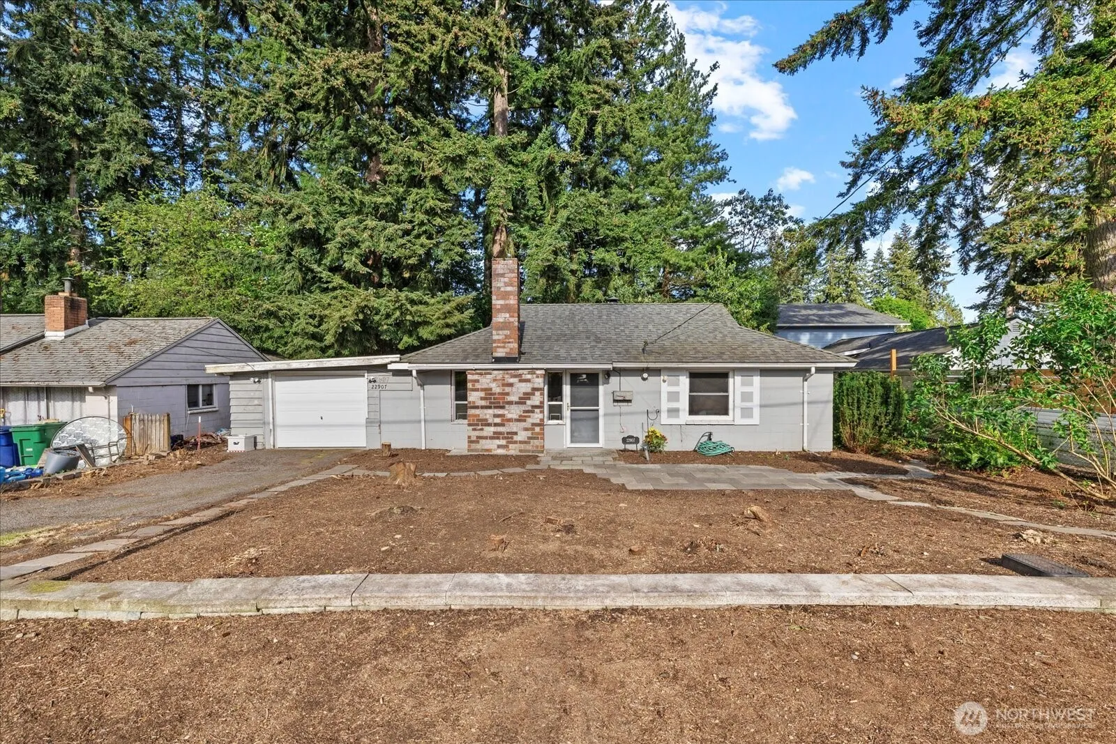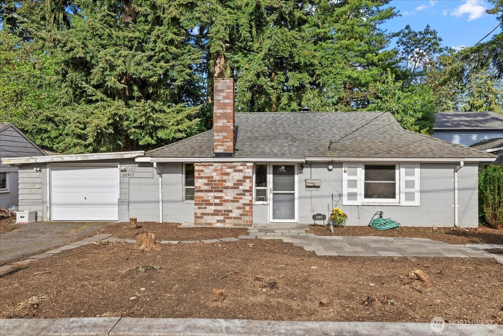 Unbeatable location! A cozy fixer home on a sizeable and heavily wooded 8,200+ sqft lot in the community of Mountlake Terrace. Just north of Seattle and less than 1 mile from the light rail station sits this charming 2-bedroom home with a newer 3/4 bath. Attached one car garage with new door in ’24. The large back yard with a covered patio is ready for landscaping while home and front yard offer instant sweat equity. Bring design ideas or alternatively, bring your big investment ideas! Located a half mile from restaurants, breweries, walking paths, the public library and so much more. Mountlake Terrace is known for its steady growth, beautiful trees, and multiple parks. This home has been pre-inspected and sewer scoped for your convenience.