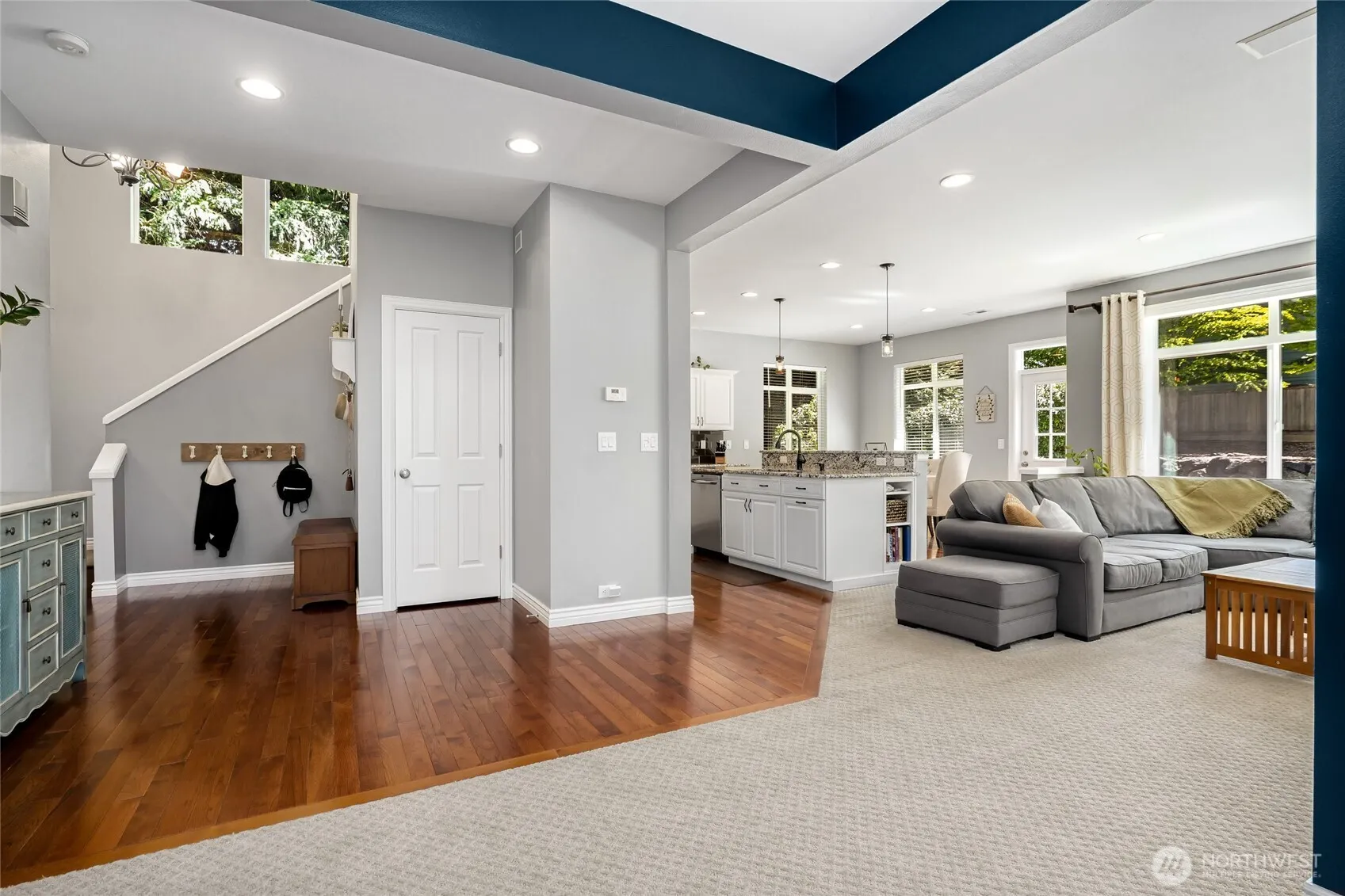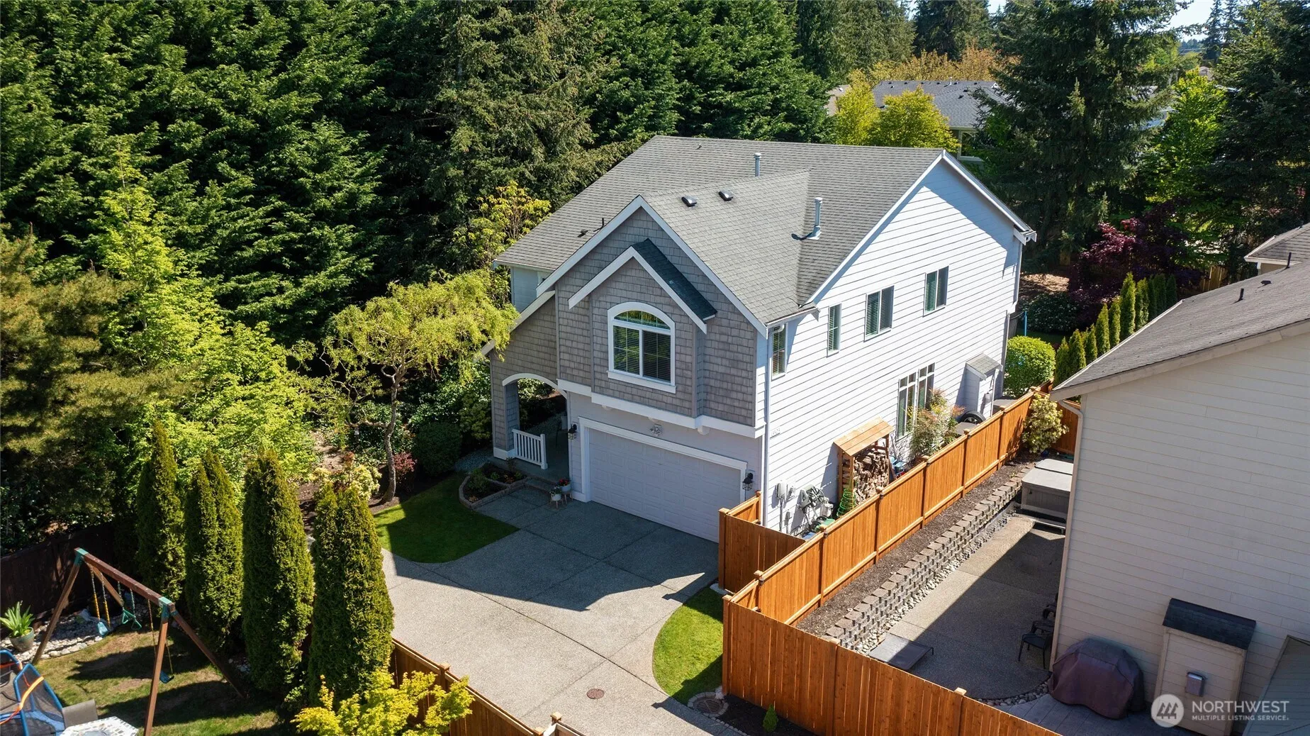 Tucked away in a private setting, this stunning NORTH facing home boasts one of the largest backyards in the neighborhood—perfect for entertaining & relaxing. Step inside to an expansive open-concept layout with soaring ceilings and oversized windows that fill the space with abundant natural light. Updated kitchen with granite counter top, stainless steel appliances, brand new microwave & fixtures. Updated bathrooms, flooring, laundry cabinets. TOP RATED SCHOOLS, scenic walking & biking trails, & parks. Enjoy unbeatable convenience with Amazon Go, restaurants, and shops all just a short stroll away. Use our preferred lender to receive a 1-0 temporary rate buydown, potentially saving you thousands.