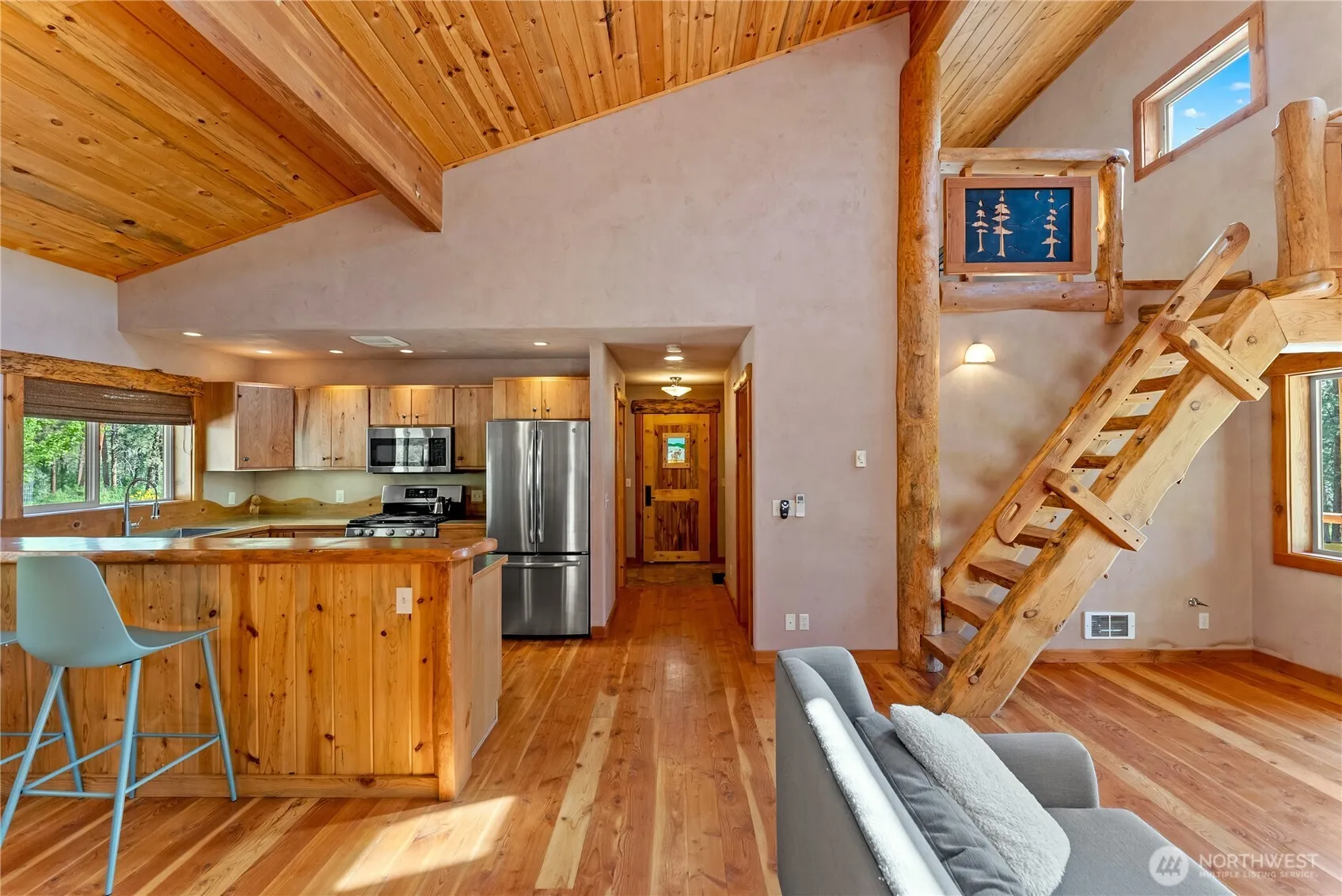 Methow Contemporary Cabin -w/craftsmanship throughout, this energy-efficient home features SIP-panel construction, passive solar design, & vaulted ceilings. 2 BD, 1.75 BA, w/a loft space on 1.89-acre lot recently Firewise treated. Just steps from Methow Trails for skiing, mountain biking, hiking, & Patterson Lake in this community surrounded by National Forest. Highlights include: clay plaster walls, fir flooring & trim, custom glass sconces, stained glass accents, & travertine tile. Mini-split HVAC systems for heating & cooling & a storage shed w/waxing bench on the circular drive. Spacious 40-foot covered deck — perfect for relaxing or entertaining while taking in views of sunlit meadows & mountains amidst balsamroot wildflowers.