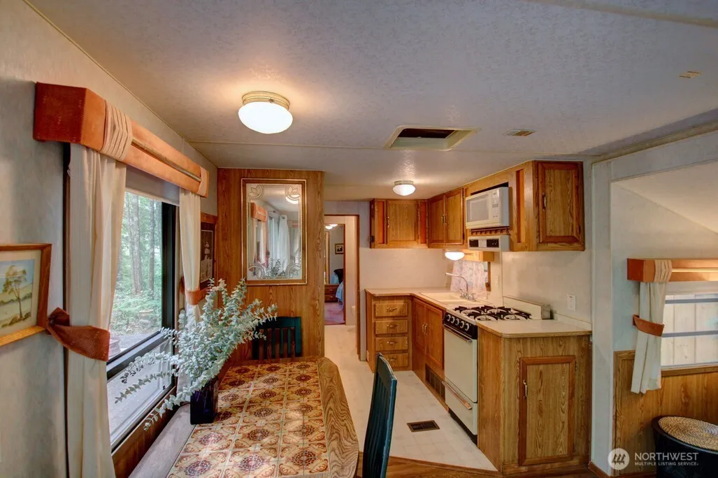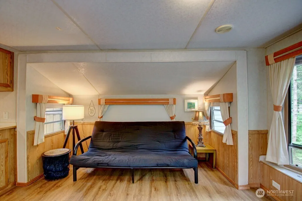 Discover your serene getaway at Lot 49 in The Glen at Maple Falls! This well-kept 40-ft Nomad by Skyline (1993) sits on a lush 4,011 sq ft lot backing to greenspace with peekaboo river views. Inside, enjoy a cozy layout with vinyl plank flooring, a full bathroom, and sleeping accommodations between the bedroom and futon. Outside, relax on the patio, roast marshmallows around the firepit, or add your dream gazebo. The Glen offers unbeatable amenities: 2 pools, hot tub, tennis courts, clubhouse, laundry, security, and gated access. Zoned recreational for up to 120 days/year—perfect for weekend escapes or seasonal stays.
