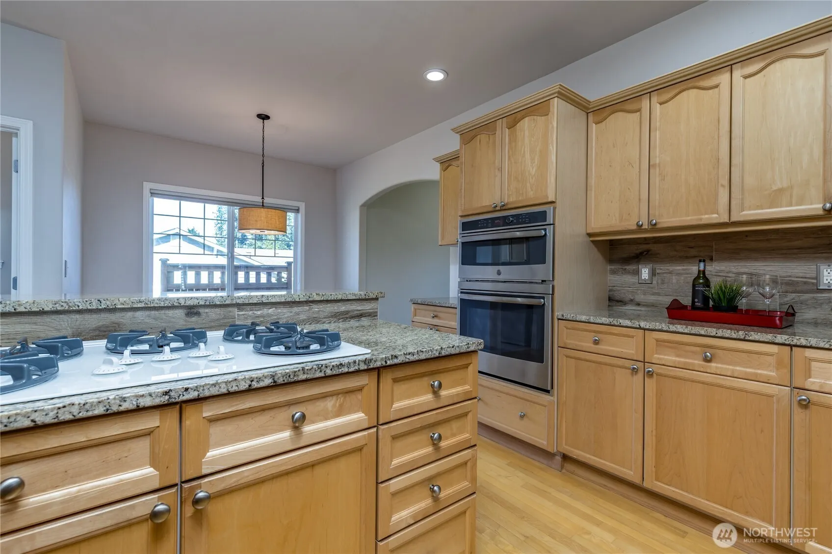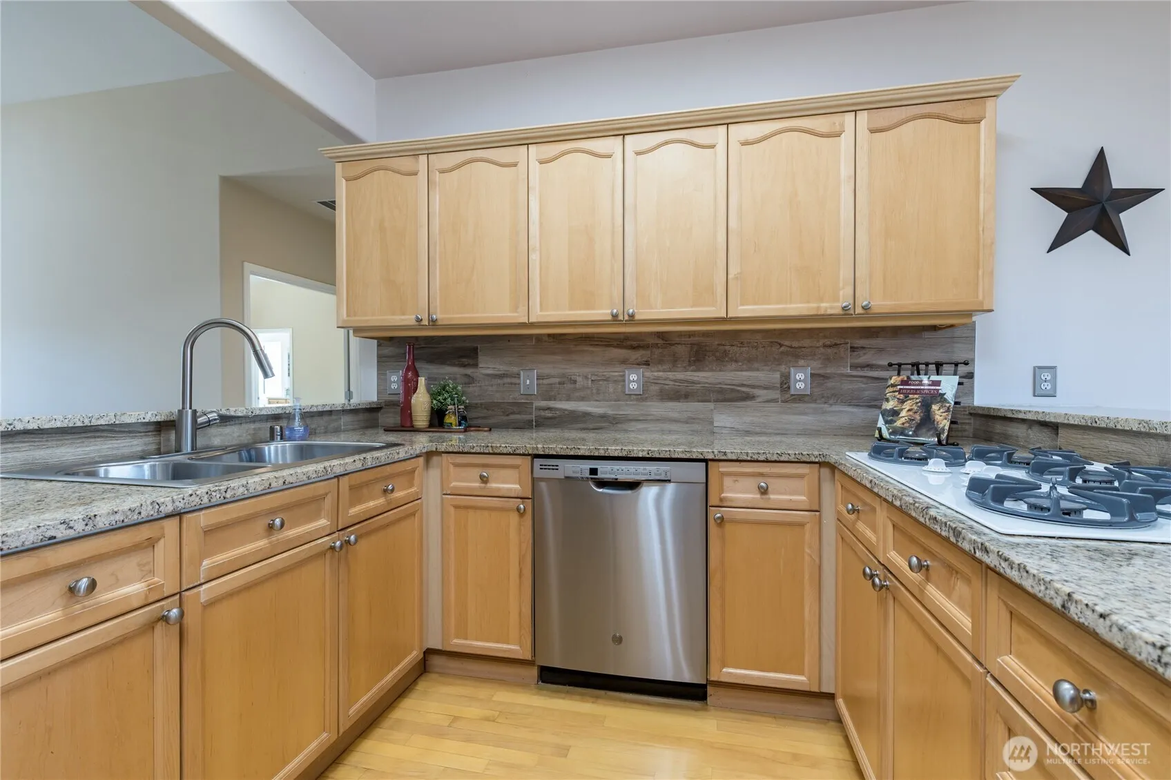 Enjoy easy living in this single-level condo in the gated Pemberton Creek community. The large central kitchen offers granite counters, tiled backsplash and a five-burner gas range, perfect for casual or gourmet cooks alike. Vaulted ceilings and a cozy gas fireplace make the family room inviting. The primary suite features a private bath with dual sinks and a walk-in closet. French doors open to a dedicated office, ideal for work or hobbies. Freshly refinished hardwood floors add warmth to the entry, kitchen and dining room. Step outside to a private patio, or enjoy the convenience of an attached two-car garage. With central A/C, and landscaping handled by the HOA, you get a comfortable, low-maintenance home in a great location!