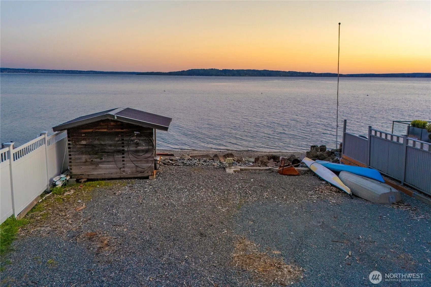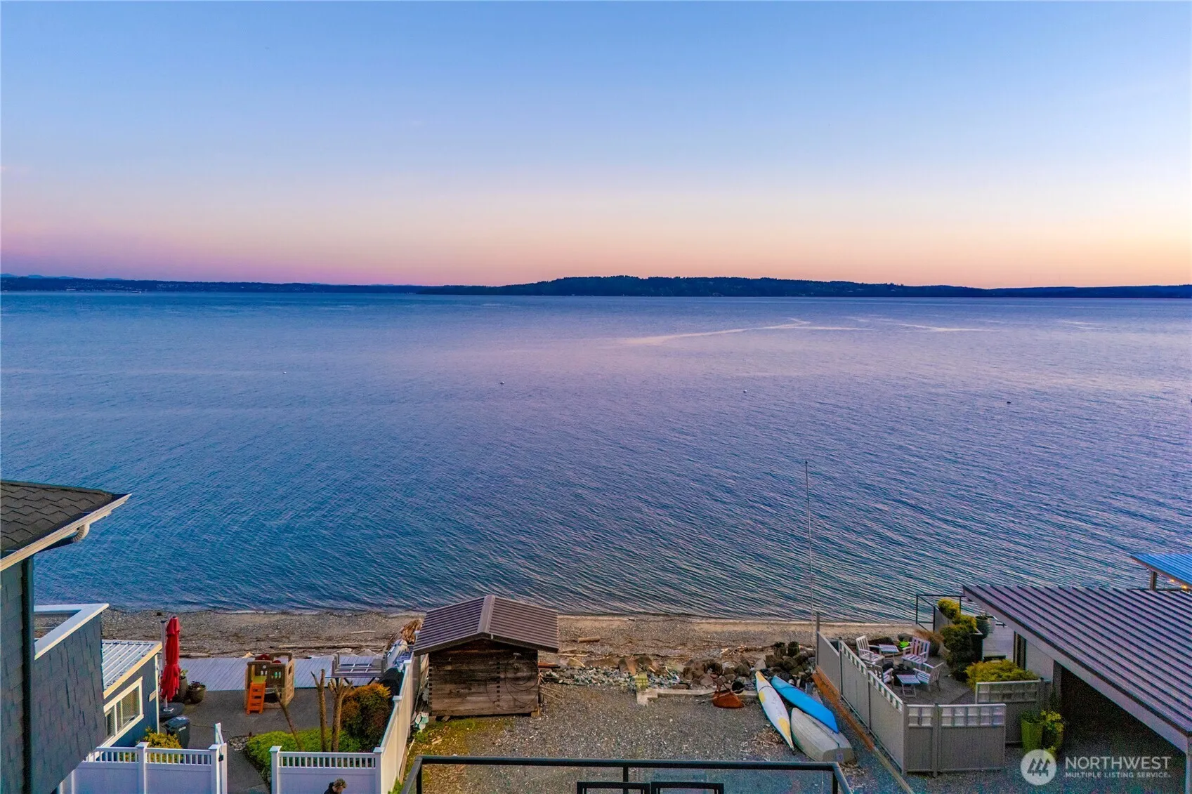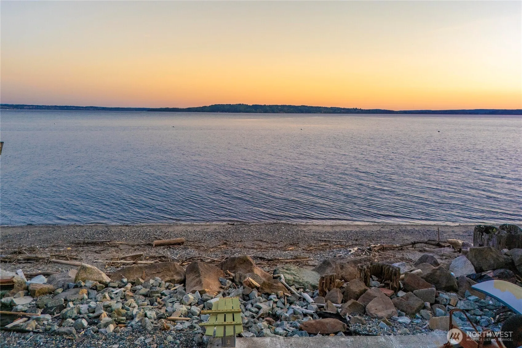 Nestled on the shore of Three Tree Point this low-bank waterfront home offers the perfect blend of Northwest charm and investment potential. Enjoy 40 feet of private Puget Sound shoreline with buoy for moorage. Launch your kayak or paddle-board or soaking in the sunsets, passing freighters, and mountain views. The upper-level main house features 2 bedrooms and 1 bath, maple hardwood floors, a free-standing stove, and open beam construction. The upper deck is perfect for entertaining. Downstairs, a separate lower unit with its own entrance includes a second kitchen and bath—perfect for guest quarters, a private studio, or income-producing Airbnb or tenant. Minutes from the TTP stores, Olde Burien, and Sea-Tac Airport.