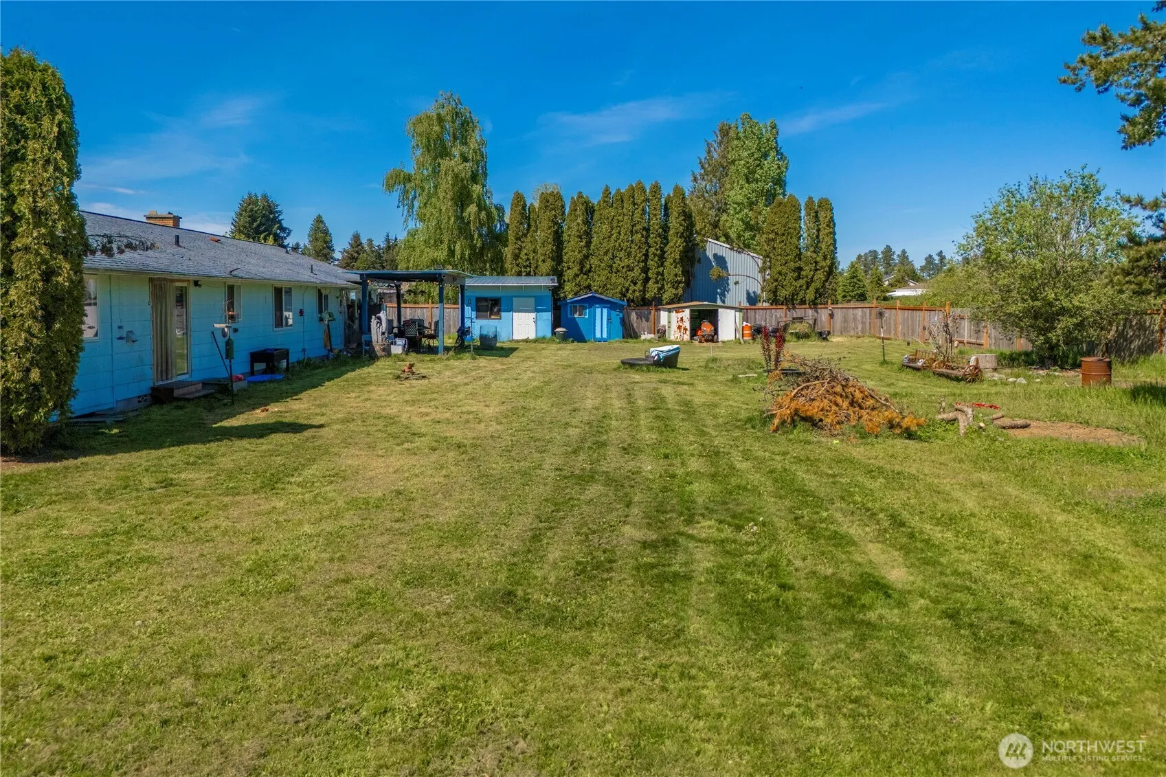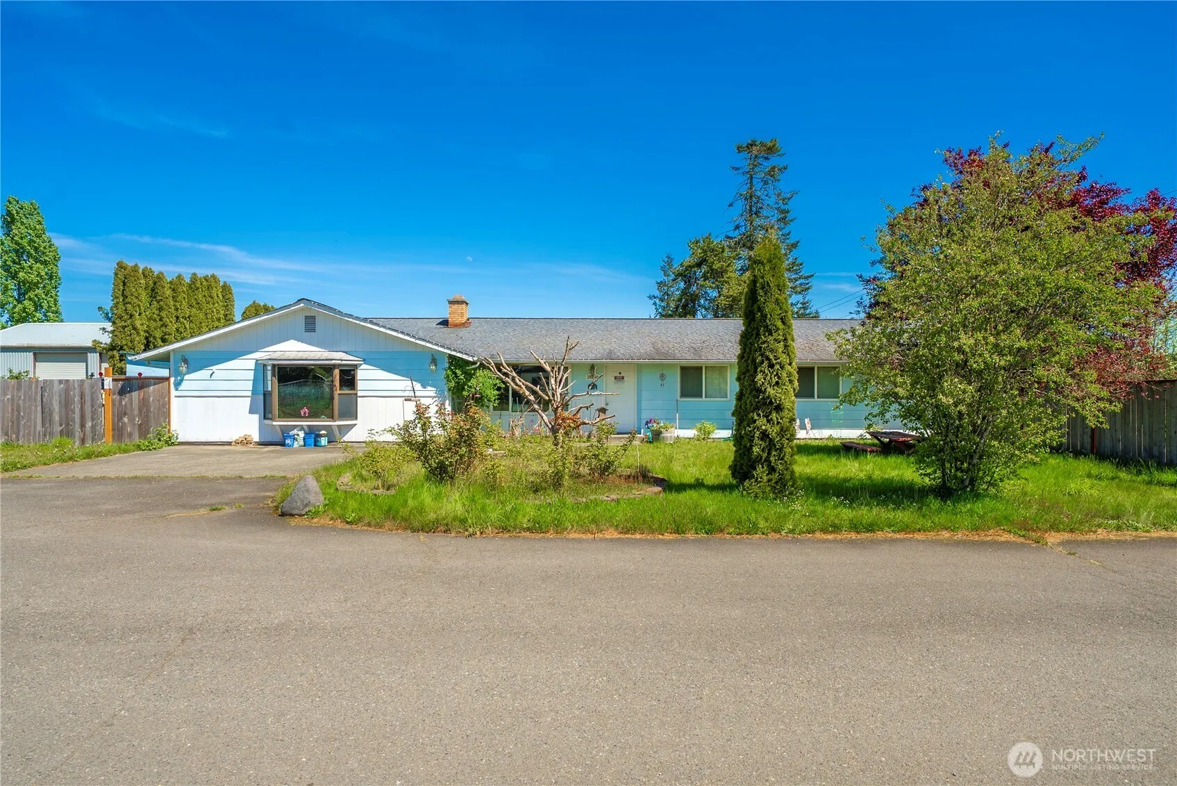 Sprawling rambler peacefully set on over half-an-acre in a quiet cul-de-sac. This home features a spacious layout with custom pine trim, large living & family rooms, and eat-in kitchen, & exceptionally generous bedrooms, including a primary suite with private bath. Property has great potential & offers mountain and countryside views, covered patio, RV parking with hookups, & multiple outbuildings. ideal opportunity for someone looking for quiet country living close to city amenities!