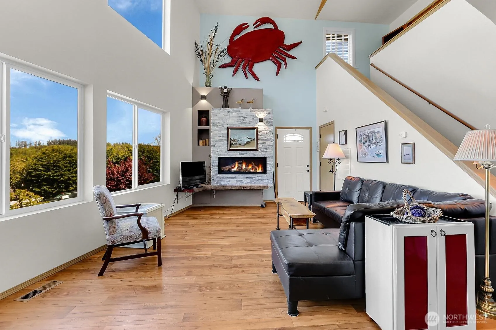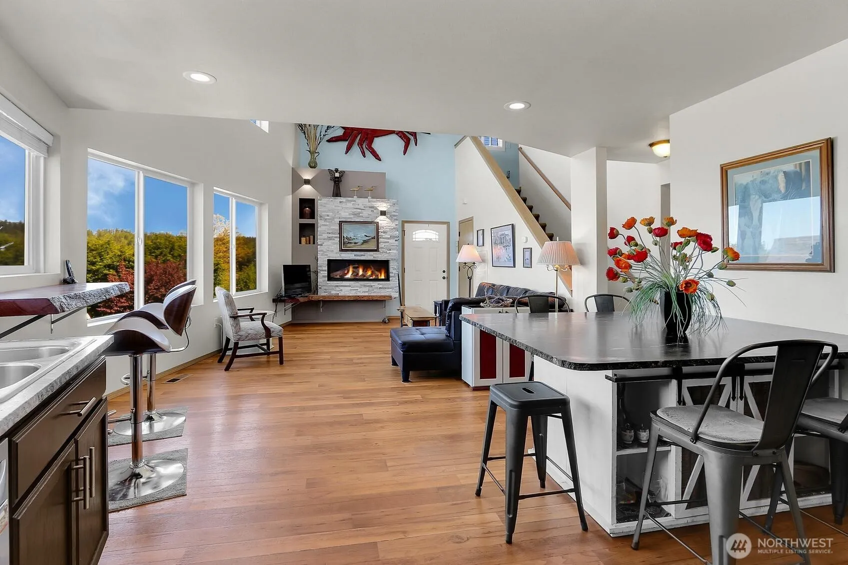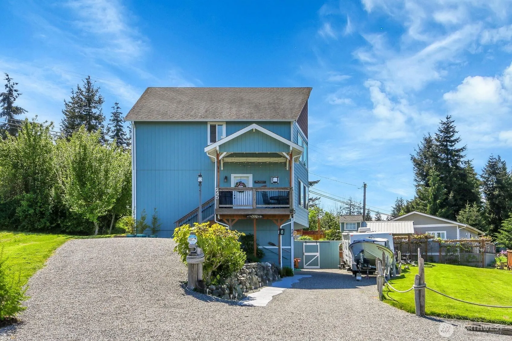 With scenic views of Utsalady Bay and the mountains plus beach access nearby, this classic PNW home has been well cared for and features a wall of windows to take in the view, an open floor plan, a spacious kitchen with breakfast bar, granite counters and more! The loft is currently set up as the primary suite and features beautiful views of the bay to wake up to! Room for a generous home office too! Amazing outdoor amenities: fenced, tool/garden shed, patio and deck to enjoy the views and sunshine! This home is offering so much home, yard, location and views for the price point! Great set up for full-time or short-term rental. Close to amenities, boat launch nearby to enjoy the best crabbing around in Utsalady Bay!