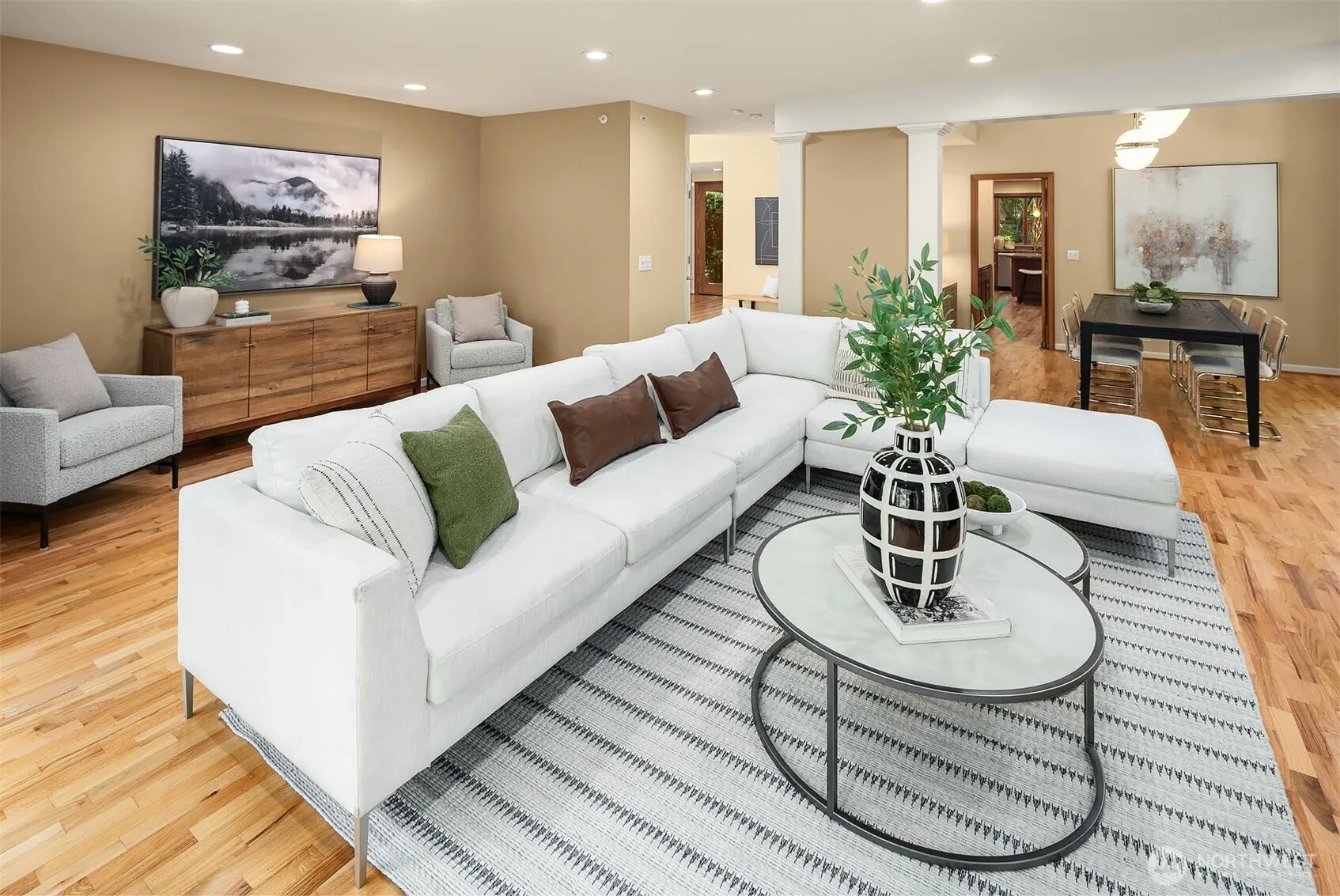 The private retreat of your dreams awaits in Island Point! This stunning estate is set amidst beautiful gardens and magnificent trees on a lovely level 1/3 acre lot, nestled down a peaceful lane near parks and schools. Step inside and discover quality craftsmanship at every turn–warm hardwoods, soaring ceilings & walls of windows framing the outdoors. Perfect floor plan features expansive living & dining spaces and two upper level bedroom wings: one, your luxurious primary suite with wonderful office or reading room; the other, 3 bedrooms & full bath tucked together + huge family room (or 2nd primary suite). Wraparound outdoor entertaining patio, fully fenced backyard, 3-car garage w/ EV charging & gym. Stroll to south-end shops & dining!