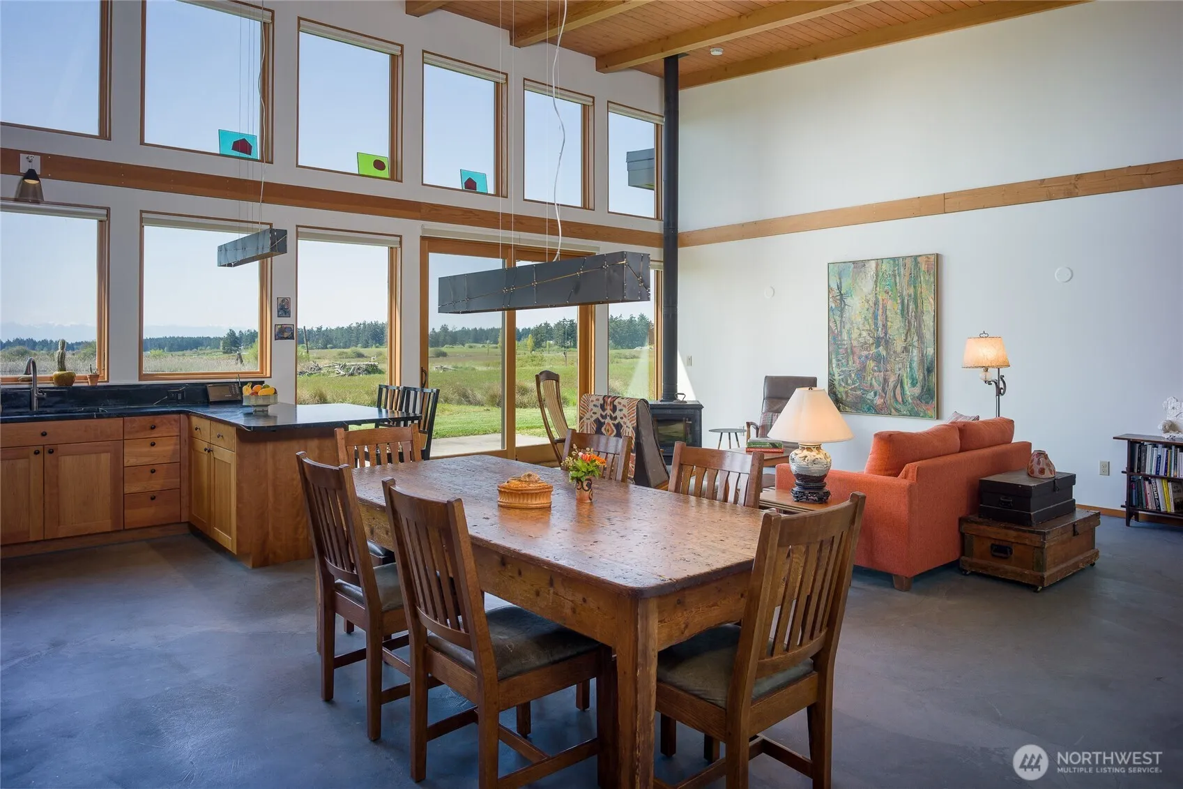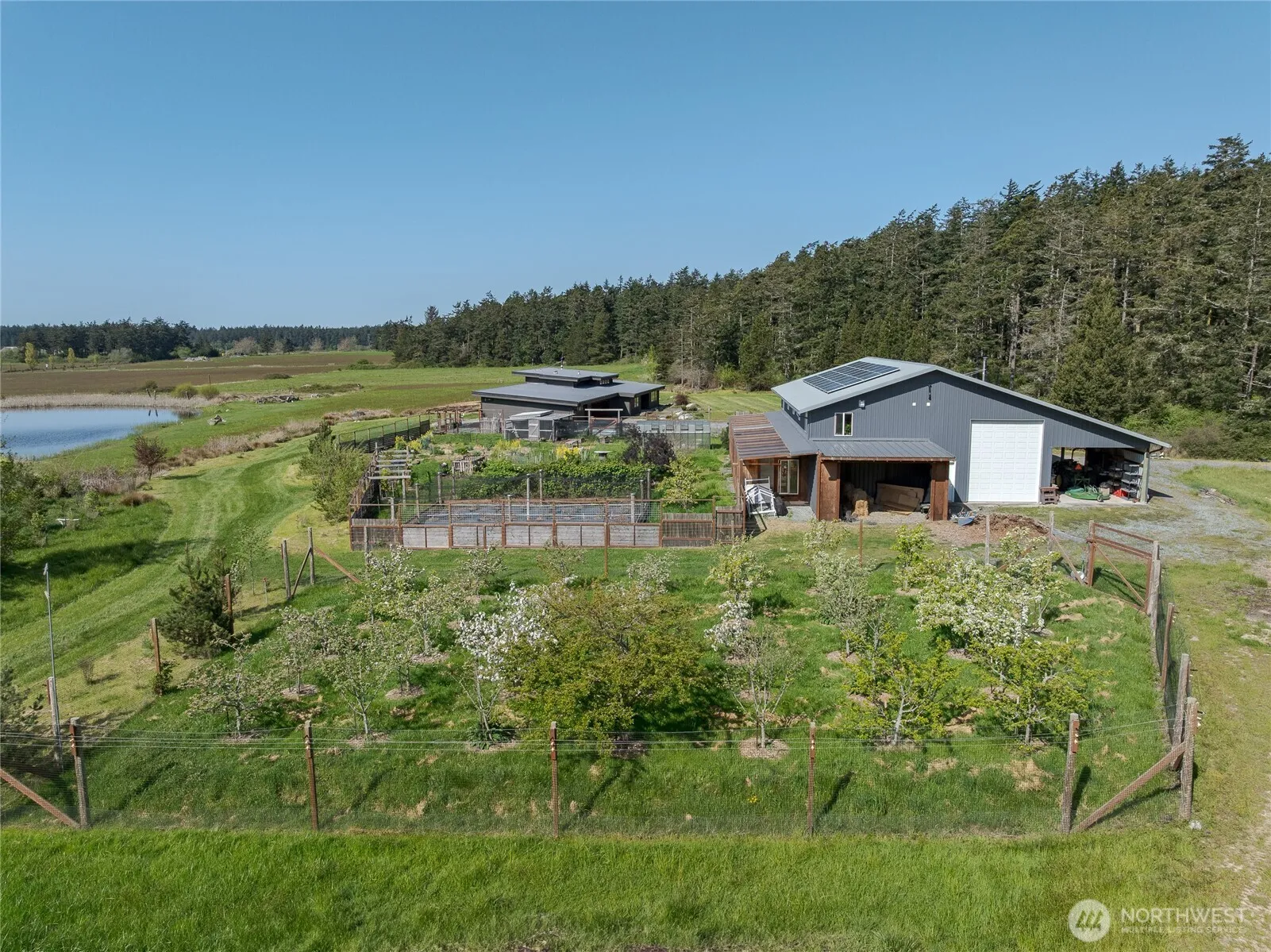 Rare Creative Sanctuary—A Modern Farmstead This one-of-a-kind property blends contemporary design with pastoral charm–perfectly tailored for artists, seekers of inspiration & foodies. Meticulous attention to every detail from the well-appointed, passive solar 2 bedroom 2 bath home to the spacious barn art studio with apartment above. Epicurean kitchen with soap stone counters, Shaker design cherry cabinets, fossil backsplash, 6 burner propane range with griddle & double oven, 2 sinks, immense pantry w/sink & concrete floors. Geothermal heat pump system for radiant floor heat + grid tied PV solar system. 2 greenhouses, fenced garden & orchard, netted blueberry area + huge pond. Southern exposure with territorial views to Olympic Mtns.