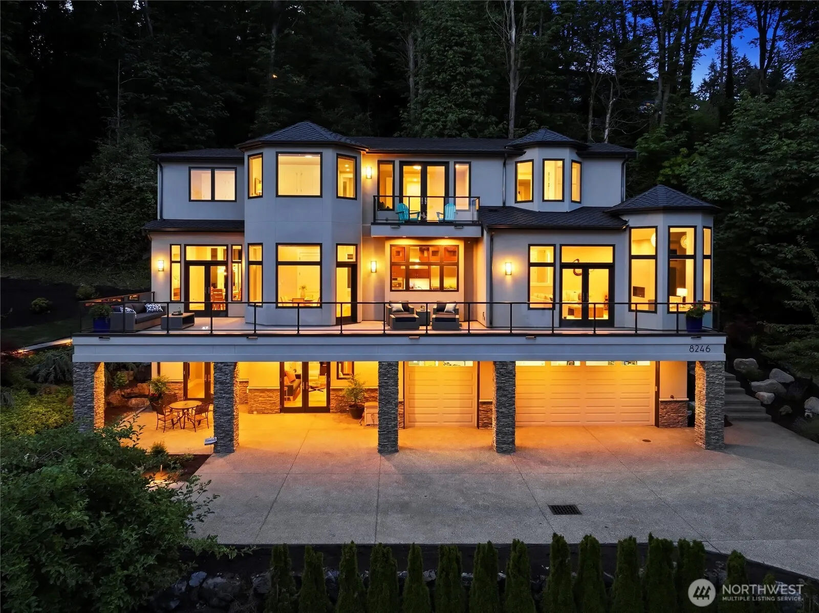 At the top of a private driveway in the tranquil south end of Mercer Island, immaculate 4,450SF 5BR, 4.5BA built in 2016. SW facing & light-filled w/views of Lk WA from nearly every room. Sunlit living rm opens to large chef’s island kitchen w/Wolf, Miele & SubZero. Elegant dining rm w/ built-in buffet. Indoor-outdoor living w/multiple French doors to vast SW facing view deck ideal for entertaining! Primary BR w/5-piece BA, 2 walk-ins & deck. Lower level incls family rm, guest BR, ¾ bath, & huge 3-car garage. 5” hdwds, heated floors in all BA’s & lower level, & AC. Lush, prof landscaped .4 acre lot. Mins to Bell & Seattle yet w/ a quiet, rural feel. Top rated Mercer Island SD. Experience the finest that the NW offers from this amazing home!