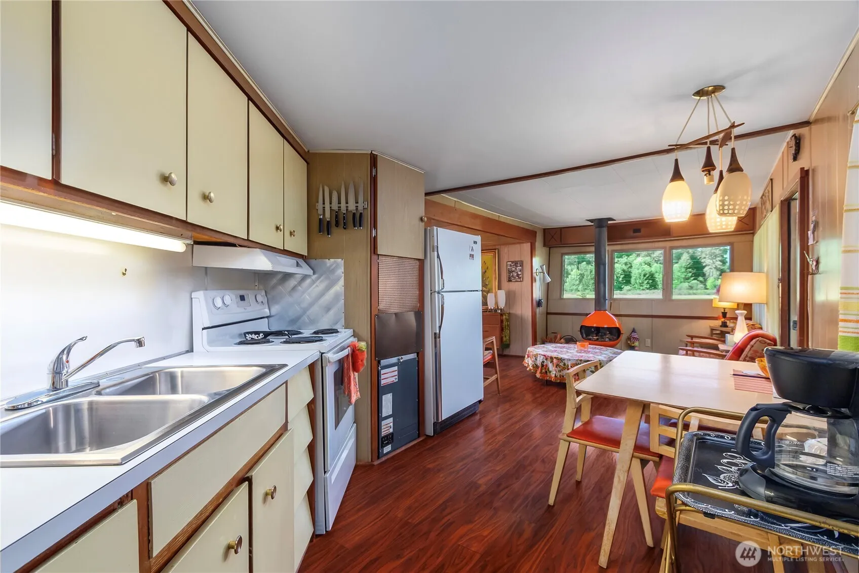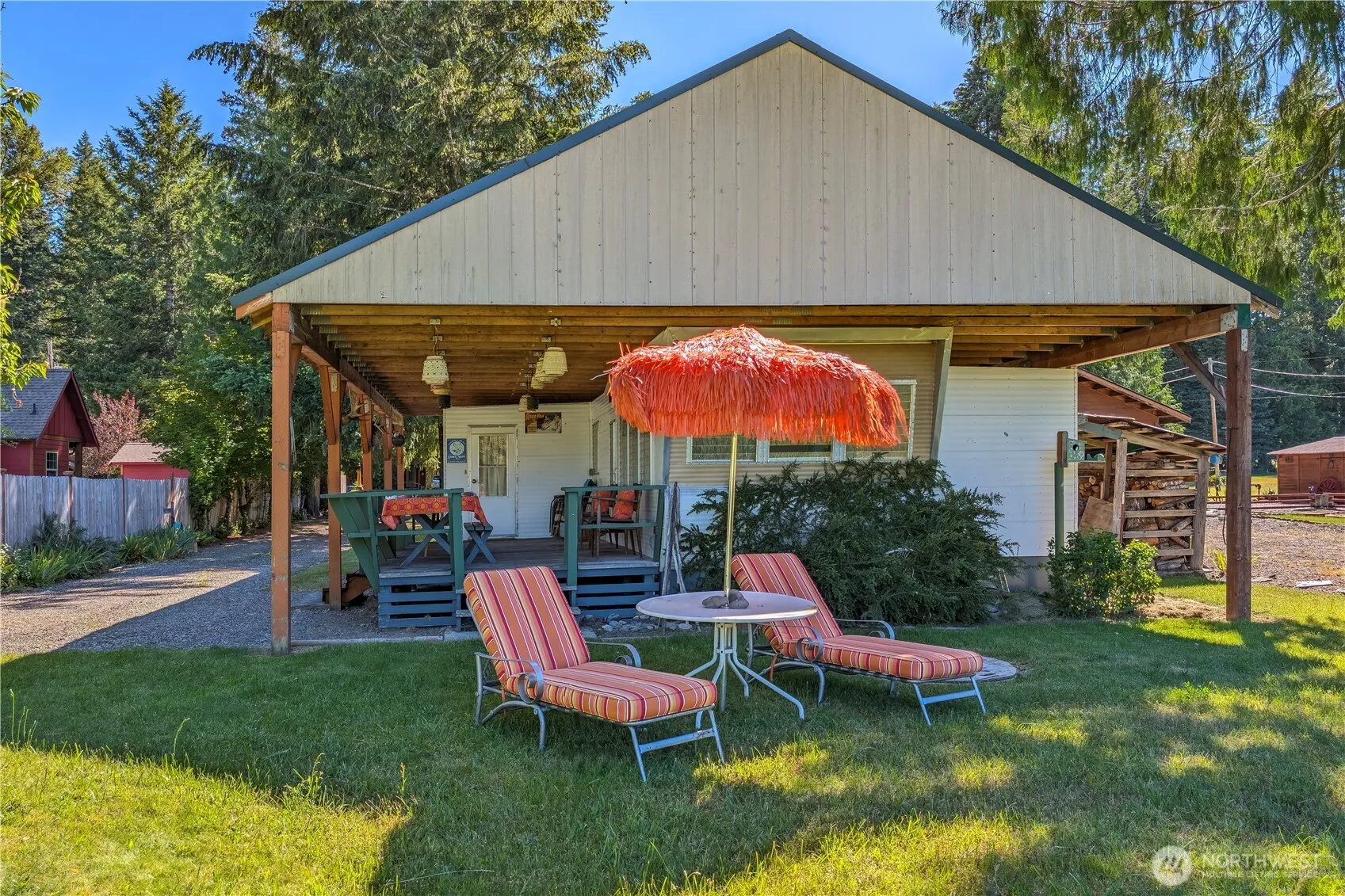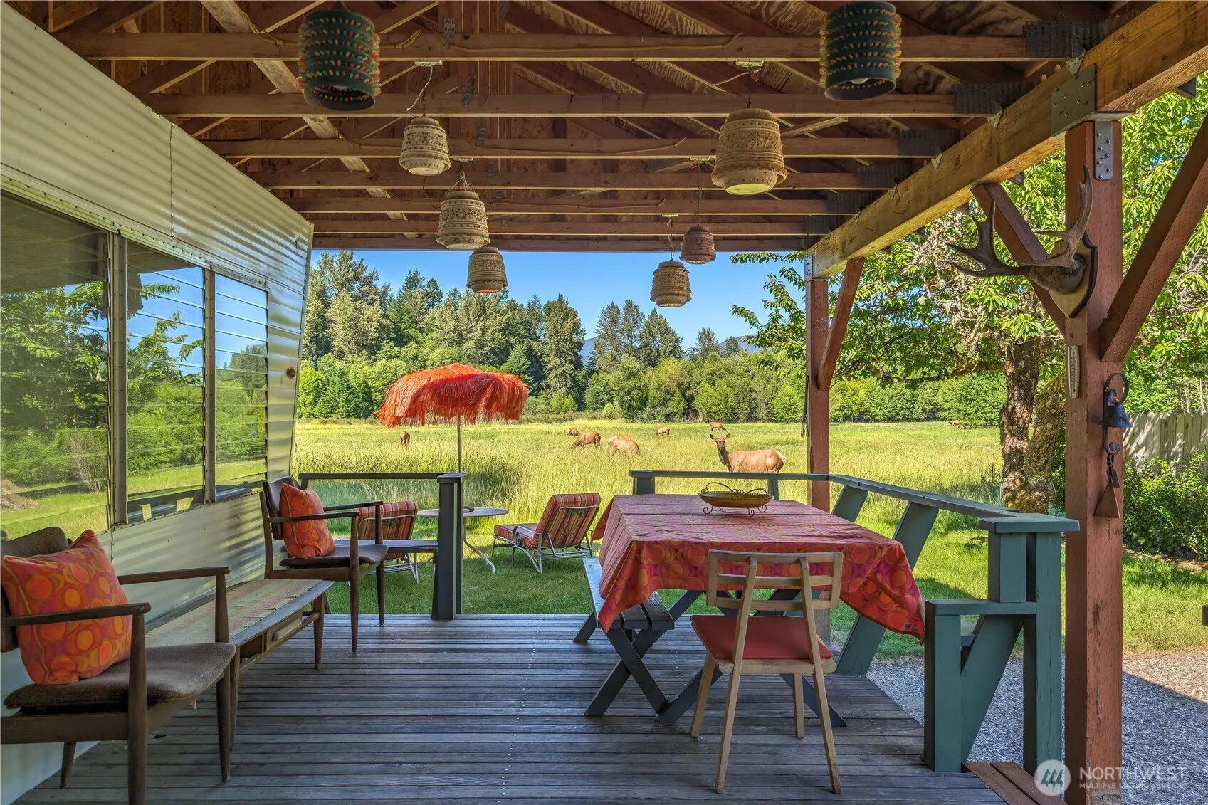 “Discover Maison Marlette, your idyllic getaway in a spacious 1960 trailer. Featuring two slide-outs, it offers two cozy bedrooms, a bath, and a charming bunkhouse suite with two additional bedrooms, and another bath. Lovingly decorated, this vintage trailer showcases delightful details like a midcentury modern wood stove. Enjoy the inviting covered lighted deck, perfect for gatherings. As a member of the High Valley HOA, you’ll have access to pools, golf, and scenic river trails for outdoor adventures. Well-preserved under cover, this unique trailer awaits you on a serene mountain view lot. Embrace tranquility in this charming retreat.”