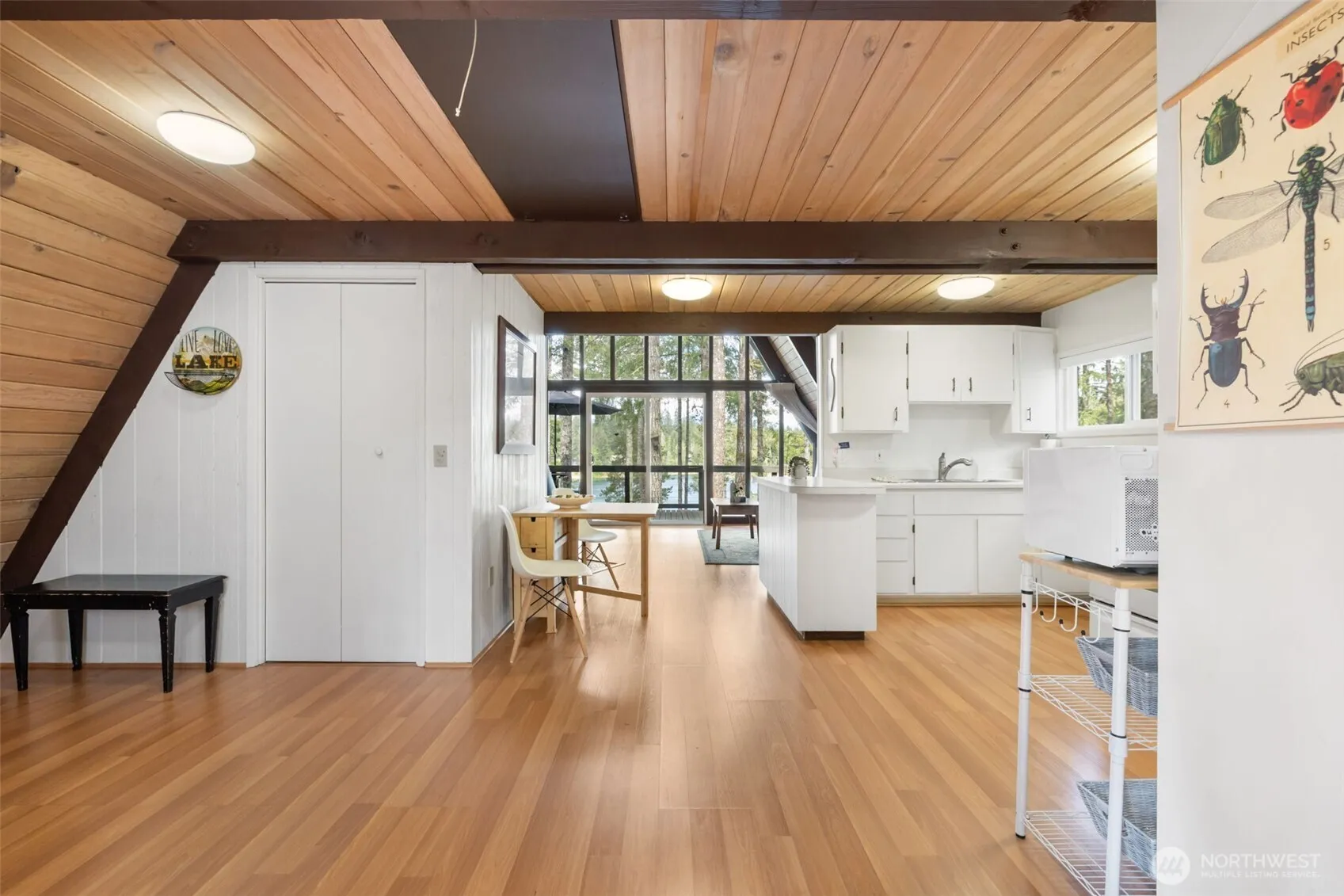 Adorable A-Frame on Maggie Lake! This immaculate 1-bed + loft offers charm & comfort. Fully furnished & impeccably maintained, this cozy retreat is turn-key & ready for you! Step inside to inviting interior w/a bright open layout, then head out to a spacious deck & enjoy the lake & mountain views! An outbuilding provides bonus storage for all your gear, & a gentle trail leads to a lakeside deck, complete with power outlets, ideal for relaxing & fishing! Take the stairs down to the crystal clear lake, stocked annually with trout, making it a haven for fishing & swimming! When you’re ready for more adventure you’ll love the private access to Hood Canal included with ownership. Even better? The lake toys stay—Don’t miss this lake haven!