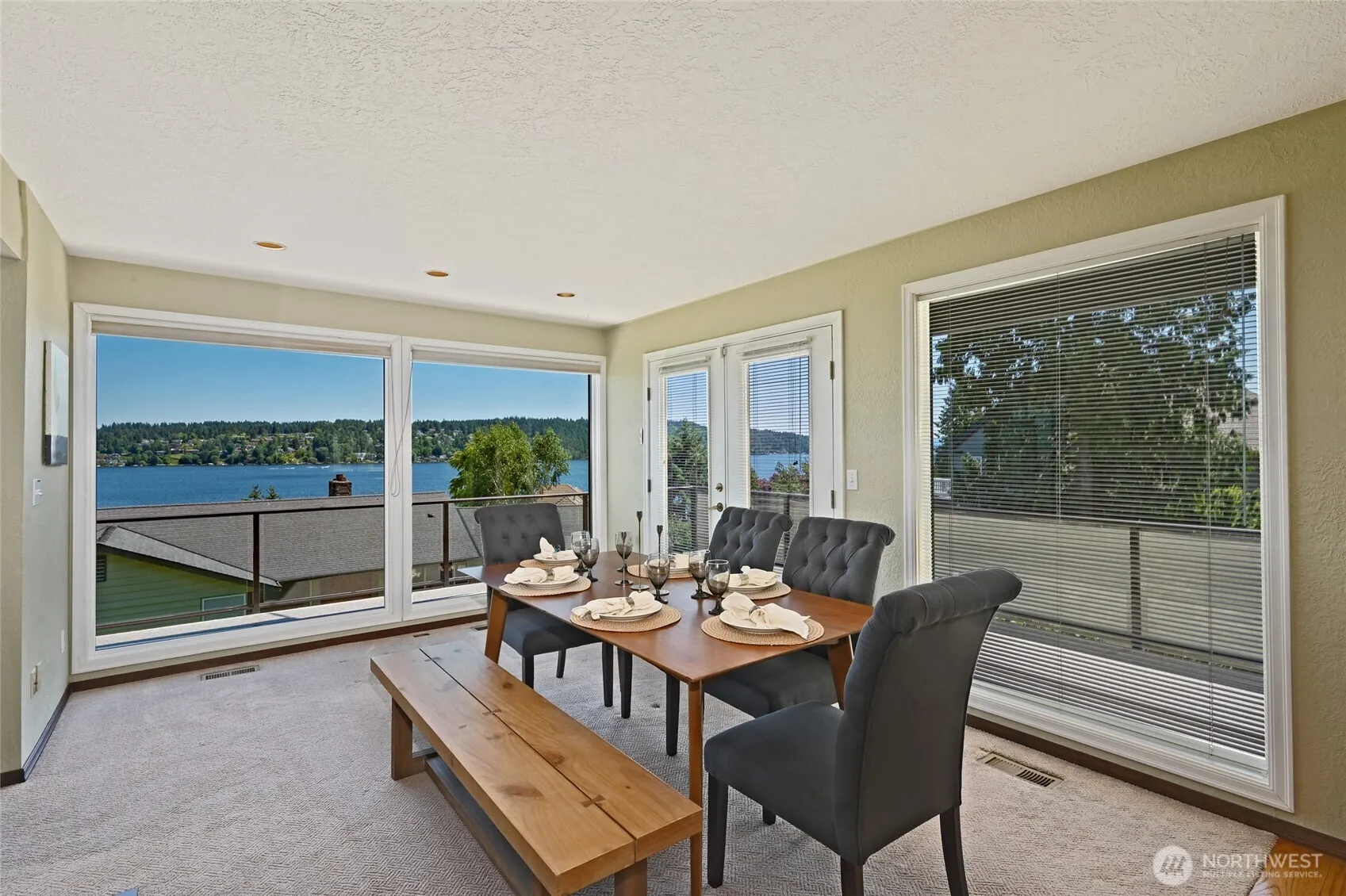 This stylish 4 bed 2.75 bath view home in the desirable Lake Forest Park neighborhood boasts an inviting light filled floor plan, designer touches, and spectacular panoramic lake, mountain, and territorial views from all levels. Features include: primary suite with adjoined bath with 5-piece vanity, walk-in closet, and a spacious sitting area, and a Chef’s kitchen with granite countertops, s.s. appliances, and African Mahogany cabinets. Other features include: gleaming hardwoods, cathedral ceilings with exposed beams, flex room, gas f.p. on all 3 floors, lifetime metal roof, heat pump (AC), & hot tub. The property also features a second kitchen plus w/d units on both the main & lower level which provide for flexible living & MIL potential.