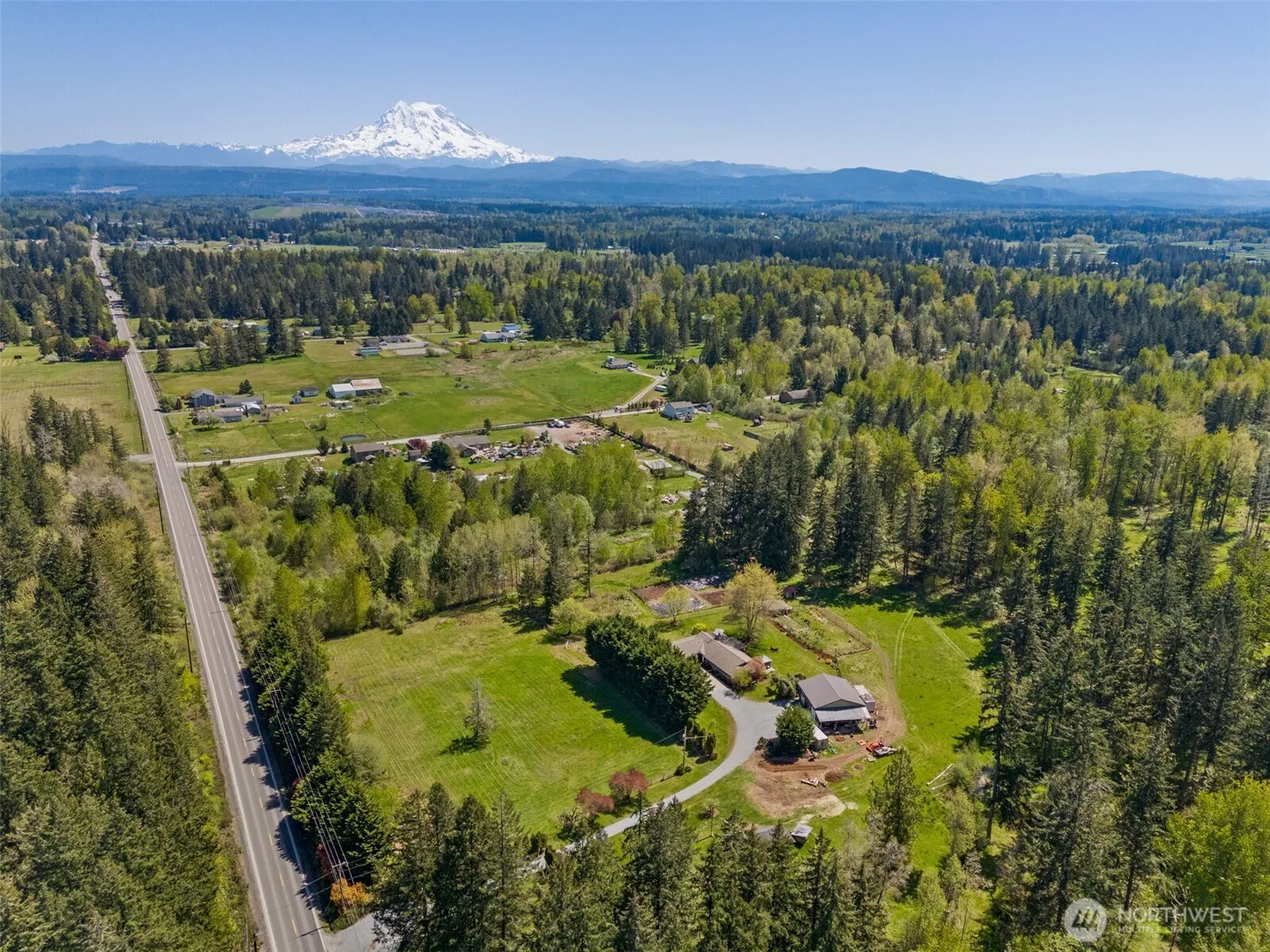 Dreaming of the farm life? 10 level, usable acres, where glorious seasonal Mt Rainier views welcome you up the gated drive & your pantry is full of garden bounty. Where beauty of nature includes sights of deer, elk, eagles; & the covered porch of your immaculate rambler invites you in to find a perfect balance of warmth & fresh design. Island kitchen w/stainless & granite, open to dining & family rms. Gorgeous hickory hardwoods; lg windows offer private pastoral views. Living rm is quiet spot to visit, primary suite has French drs to hot tub, walk-in closet, stunning bath! Designer baths feature tile, quartz, marble, heated floors! 3 more BRs, XL garage w/wkshop. Huge shop, giant fenced gardens, cute garden shed & barn. Make it yours today!
