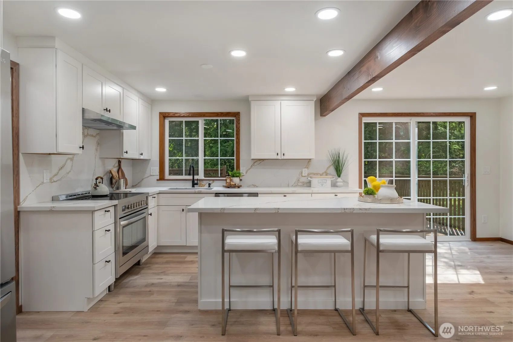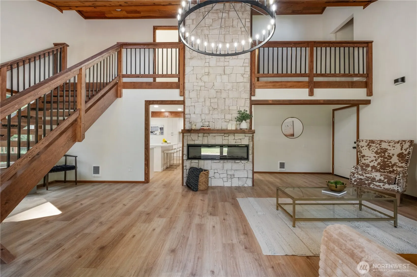 Stunning, fully updated home on 1.3 private acres with designer finishes and room to live, grow, and entertain. The main home features a brand-new chef’s kitchen with quartz countertops, a 36” professional-grade stove, shaker style cabinets, and large island. Open-concept living area boasts soaring ceilings and a dramatic two-story fireplace. Spa-like primary suite with luxurious bath. Enjoy an oversized deck, RV parking, 2 new water heaters, and no HOA. Bonus main-level ADU with private entrance, new kitchen, and full bath—ideal for guests, multi-gen living, or rental income. Oversized Garage with room for storage, and flat, usable land ready for your dreams. Move-in ready!