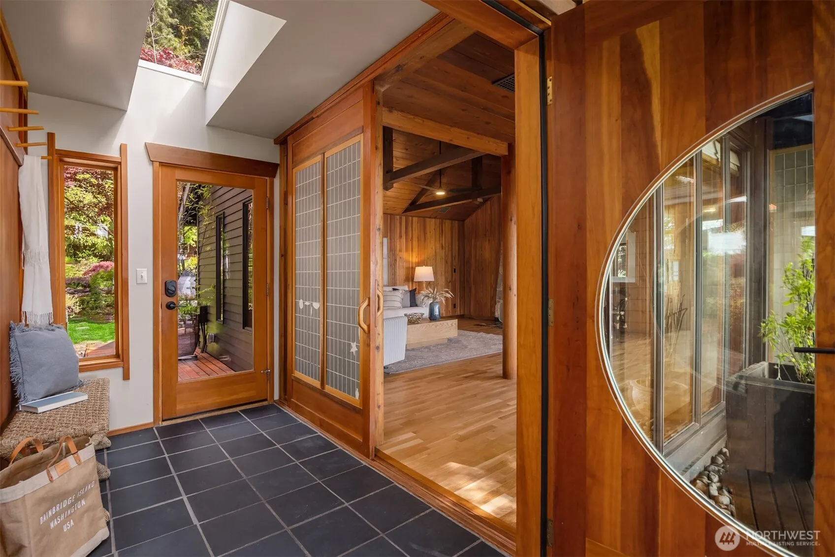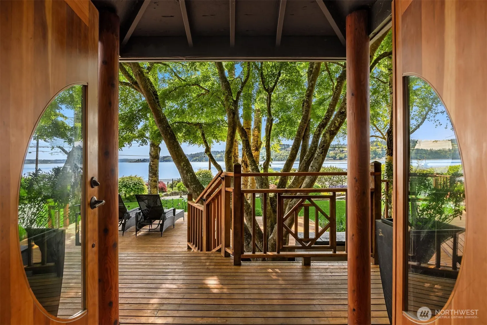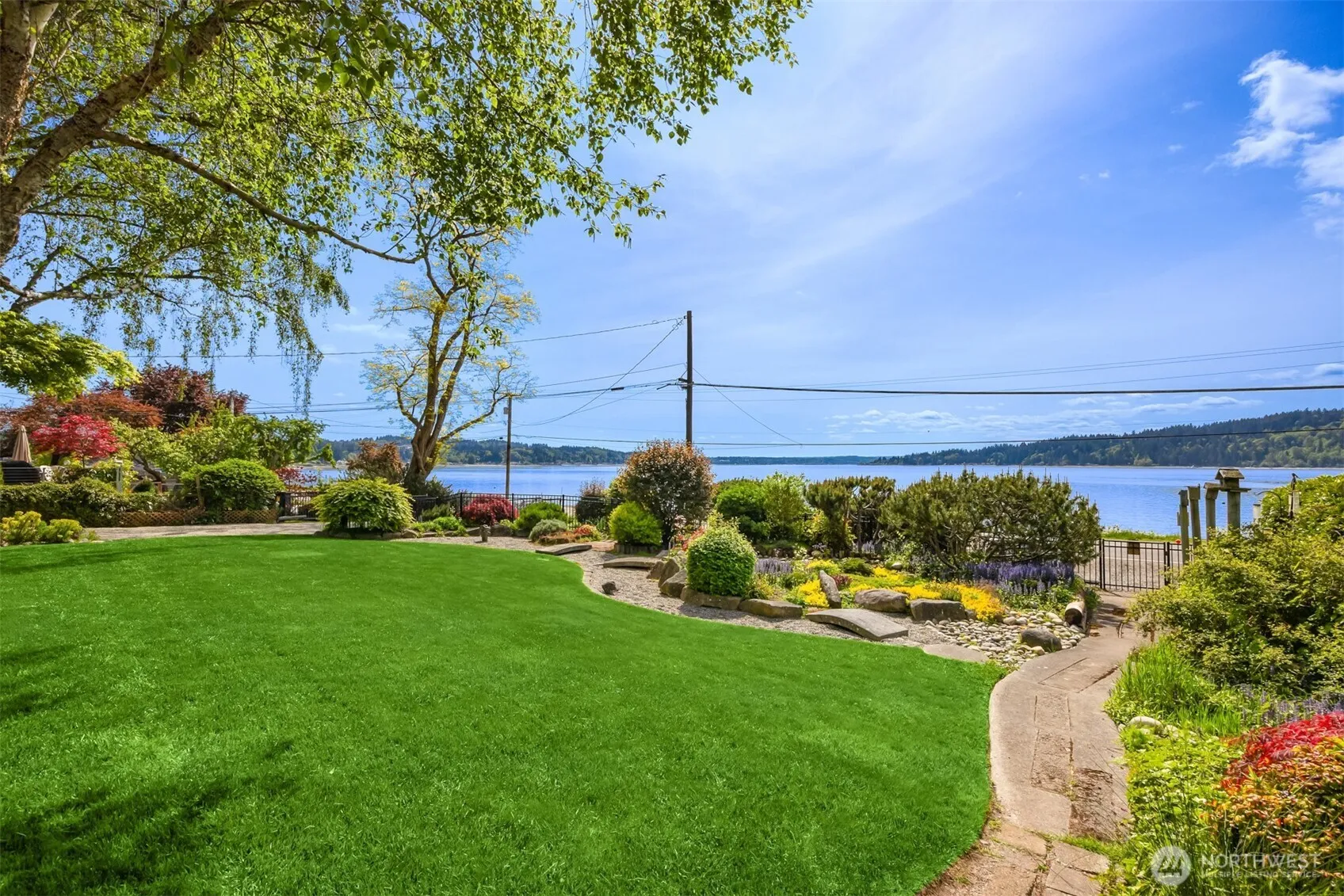 Enchanted waterfront living on spectacular 1+ acre with 100 ft of peaceful shoreline including registered buoy. This unique, one-level sanctuary offers refined living with extraordinary indoor/outdoor spaces, skylights throughout, refinished hardwood floors & original 1941 stone fireplace. Primary suite opens to striking garden oasis with private hot tub, perfect for mindful relaxation. Flexible spaces include detached office/guest suite & separate wing with guest quarters — ideal for creative pursuits or additional suite. Fenced grounds feature lush lawn, vibrant gardens, greenhouse, shop/artist’s studio, numerous outbuildings, whole-house generator, covered parking & meandering garden pathways which complete this harmonious hideaway.