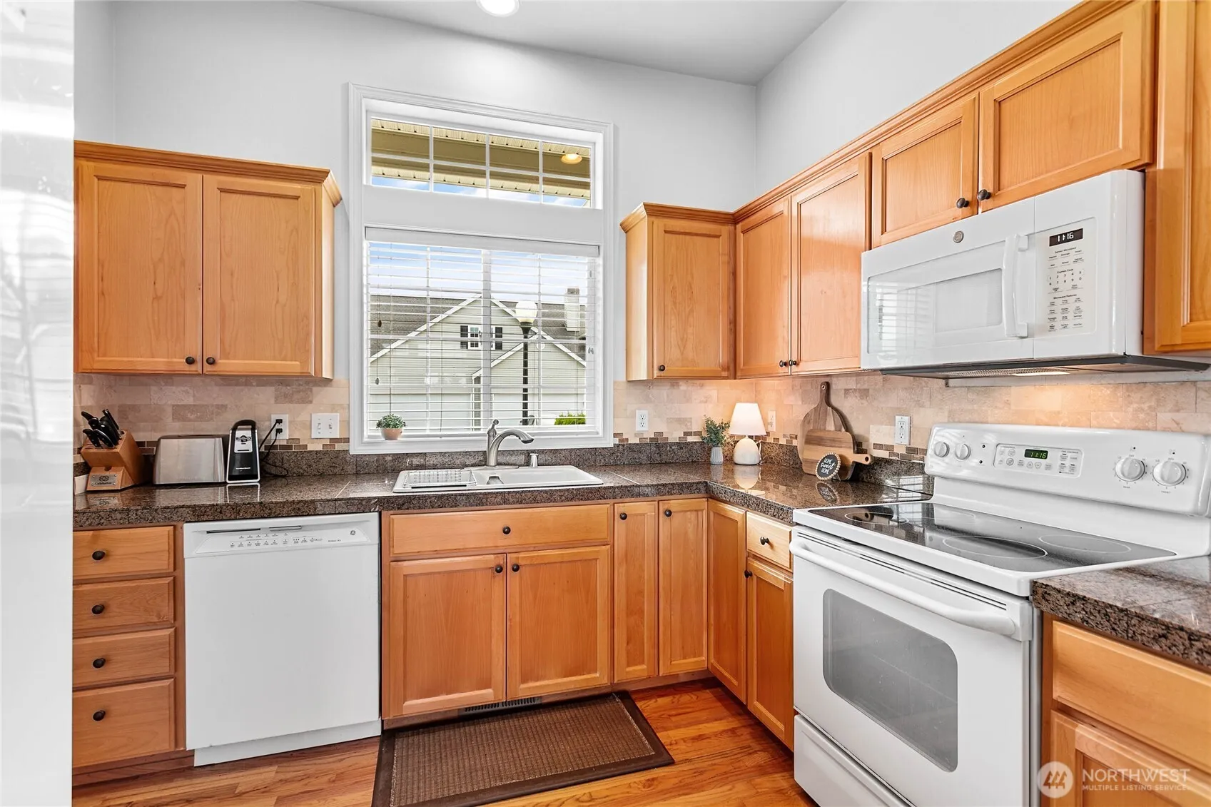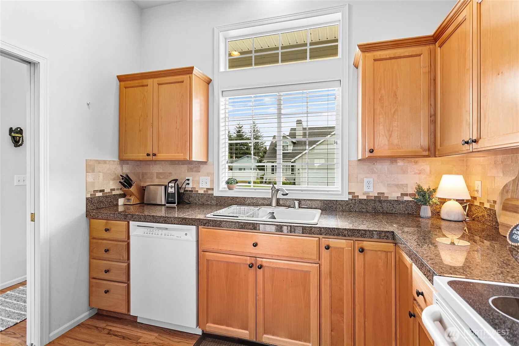 Beautifully updated 2+BD, 2.25BA golf course condo in the heart of Lynden! Nearly 1800 SqFt with all your primary living on the main floor: large kitchen w/bar seating & abundant cabinetry opens seamlessly to the dining & living rooms, w/gas fireplace. High ceilings throughout & fantastic natural light. Step outside to your private patio overlooking the golf course & incredible sunsets. Spacious, main floor primary suite with luxury large tile shower, granite vanity, & walk-in closet, plus a guest bath & attached two-car garage also on the main. Upstairs, you’ll find a versatile loft perfect for a home office, a second bedroom with a full bath, large closet & attached bonus room. Beautiful updates, golf course views, & a prime location!