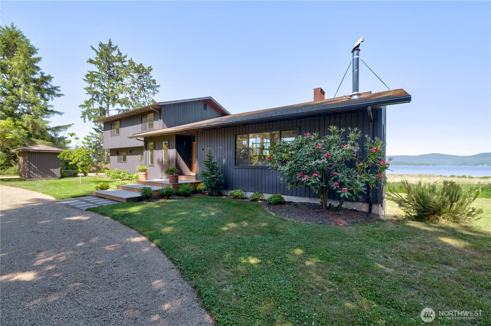 A glamorous home and storied historic property is located on the grounds of the former nationally famous Clarke Rhododendron Nursery. Drive down a quaint country lane by a unique collection of hybrid rhododendrons that are gently hiding in a forested setting. It’s a breathtaking view that is loaded with the charm of an old world horticultural heritage! You’ll gasp when you see the circular drive and the classic large restored NW Contemporary architecture in this large home nestled into a hillside, built exceptionally close to Willapa Bay. Live outside or in on three levels, each presented with so much charm and classic restraint so as not to overshadow the very unique location,views and enviable privacy.Outdoor kitchen with awning !