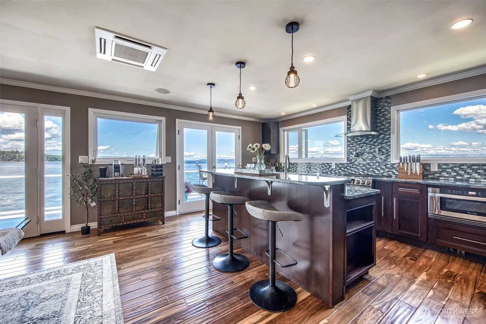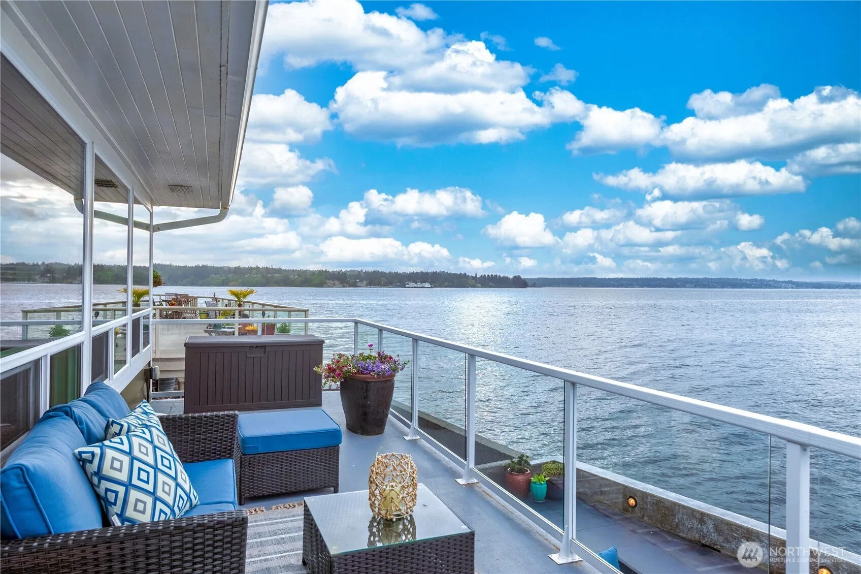 Experience the ultimate in waterfront living in this beautifully updated 3-bedroom 4-bath home, offering unobstructed views north to the iconic Seattle skyline & west to the majestic Olympics. Every inch of this home captures the beauty of the water just steps away. Enjoy both breathtaking sunrises & vibrant sunsets, an exceptionally rare feature! Boasting 2 primary suites, perfect for luxurious living or hosting guests. The versatile 3rd BR includes a built-in Murphy bed, easily doubling as an office. The open-concept LR/DR/KIT offers a seamless, airy layout maximizing natural light & scenic vistas. Every detail reflects quality & sophistication, from the spa-inspired bathrooms, to the rich acacia wood flooring, to the smart home upgrades.