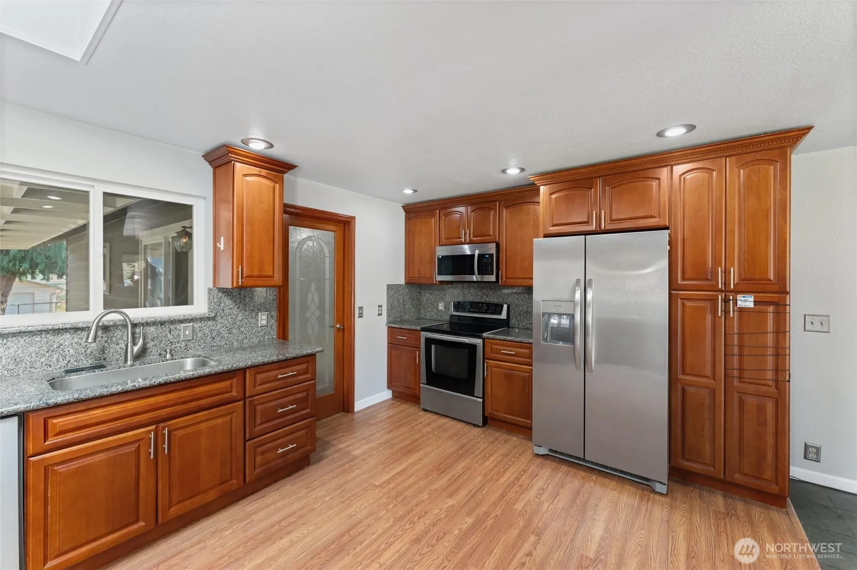 Welcome to this tastefully updated 4-bedroom, 2-bath home, nestled on a spacious and level 8,000+ sq ft lot. Inside, you’ll find a welcoming slate-tile entry and a bright kitchen with ample storage, perfect for daily living and entertaining. The primary bedroom features a convenient ensuite and a generously sized walk-in closet for added comfort and functionality. Step outside to a covered back patio for year-round enjoyment, and take advantage of the fully fenced yard with plenty of space for play, pets, or gardening. With RV parking and easy access to I-5, this move-in ready gem offers comfort, convenience, and versatility in one great package.