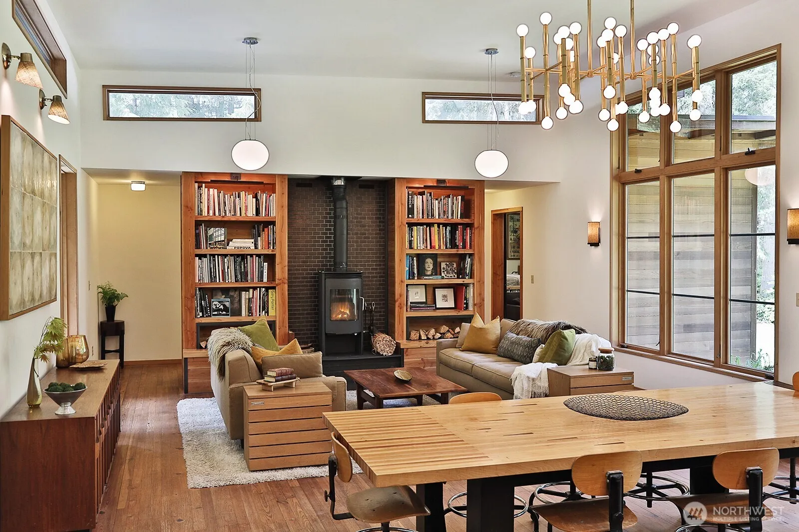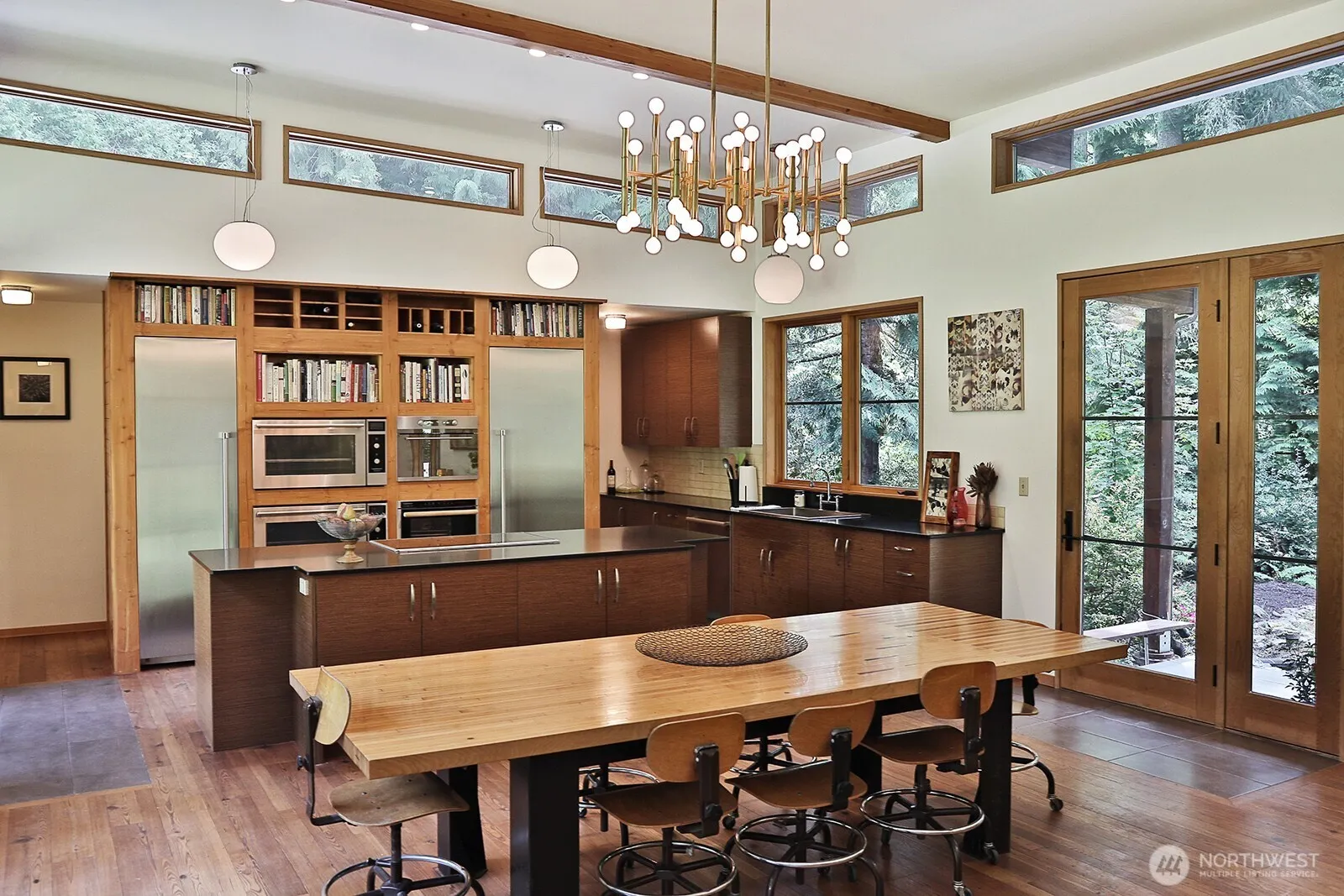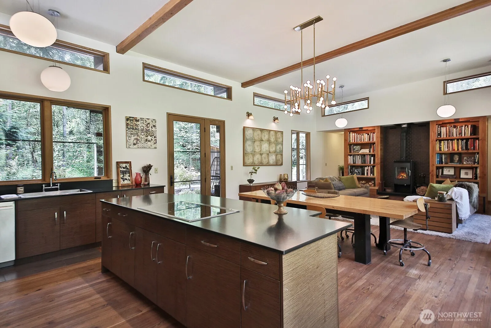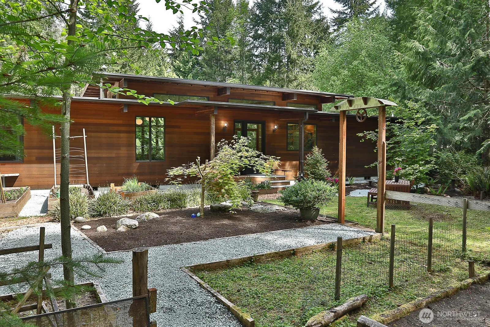 Imagine luxury living in this custom-built, single level home inspired by Frank Lloyd Wright. Enter through the modern glass & metal specialty doors to a large, light-filled open floor plan; Perfect for entertaining! Gourmet kitchen with large island, natural stone countertops, steam oven & stainless Thermador refrigerator and freezer. Floor to ceiling windows, primary bedroom w/beautiful ensuite, guest room, and 3rd bonus room w/sleeping area. Reclaimed wood floors w/radiant heat, wood stove and on-demand hot water. This home’s finely crafted fir trim was created from the very trees where the house now stands! A PNW gem; cedar sauna, Japanese gardens, custom metal art, chicken coop and 6± dreamy acres at the end of a peaceful country road.