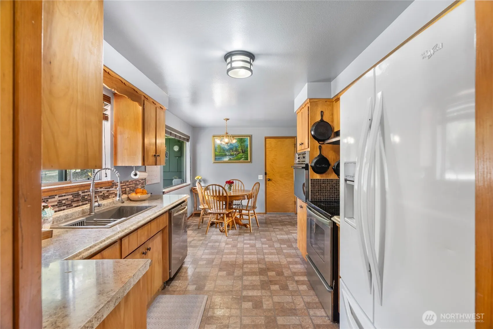 Charming 3-bed, 2-bath home on a spacious 13,068 sq ft lot! Features include a cozy fireplace, ductless heat pump, and electric furnace for year-round comfort. The primary bedroom has a large closet and a private 3/4 bath. Enjoy cooking in the kitchen with plenty of counter space and dining nook. The one-car garage offers a work area, and the laundry room has space for hobbies or crafts. Outside, you’ll find a 12x24ft carport, RV parking, outbuildings, and a chicken coop. The beautifully landscaped yard is fully fenced, with garden space, a fire pit, and Apple, Pear, and Peach trees! For your peace of mind, the electrical panel was updated, a newer roof, and newer insulation. Zero-entry access adds to the ease and convenience. A Rare find!