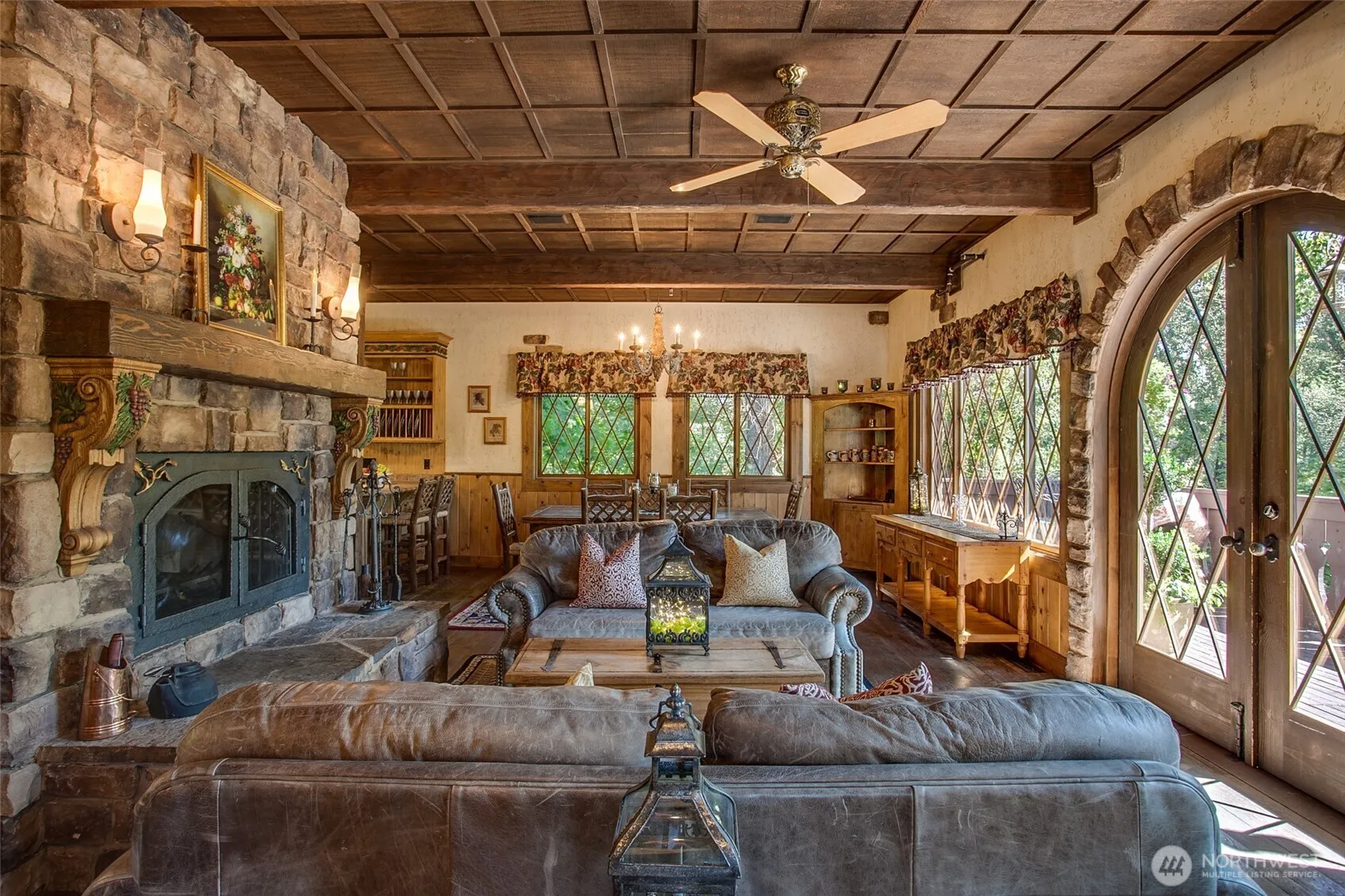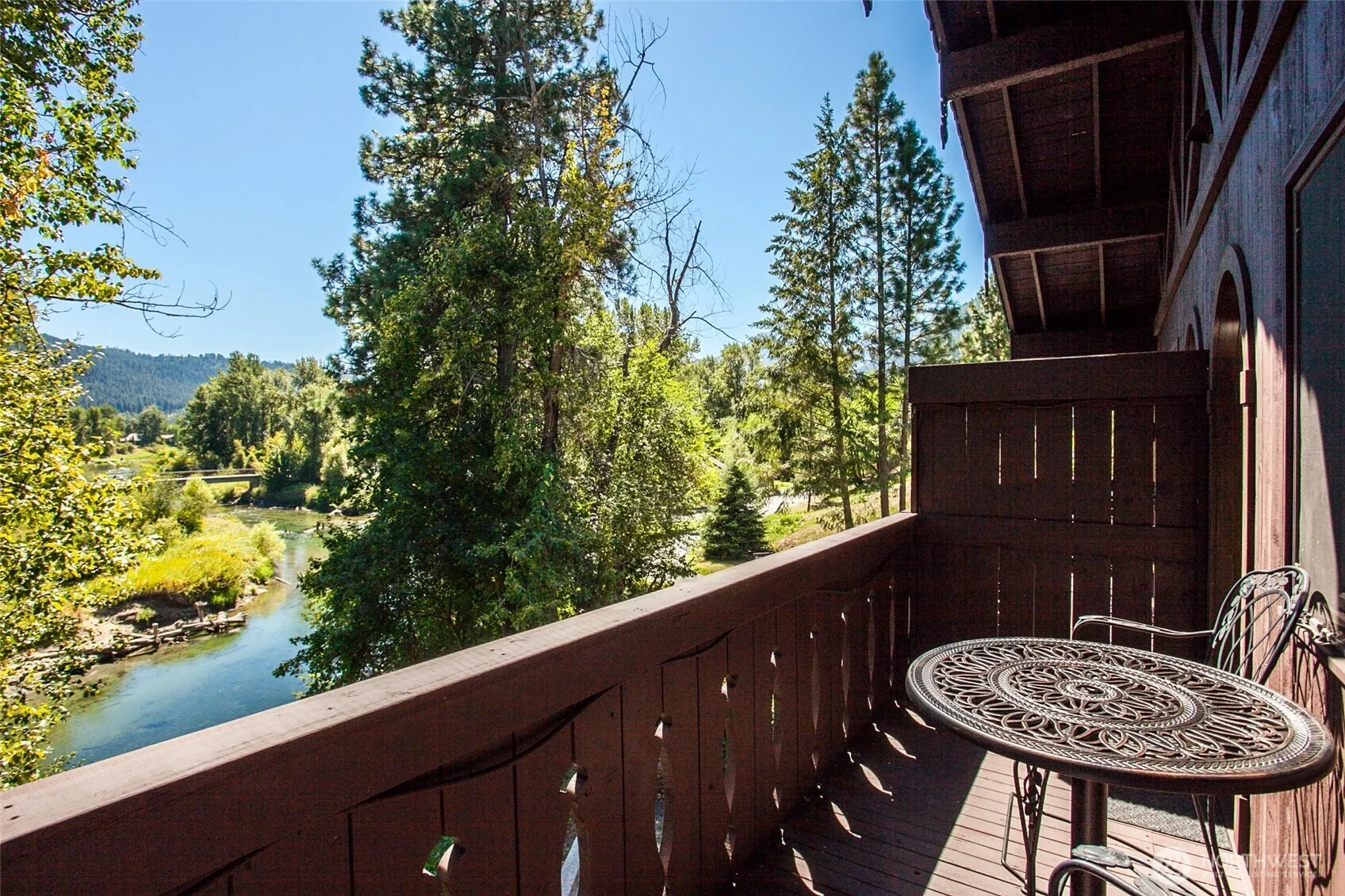 Discount for Cash ~ Rare Opportunity: Waterfront & Commercially Zoned in downtown Leavenworth. Bavarian style manor with views of the Wenatchee River, mountains and Black Bird Island. Currently 3 suites are offered as nightly rentals with the option of adding the 2 additional bedrooms as nightly rentals for increased revenue. Hardwood and stone flooring, soaking tubs, waterfall stone showers, wood burning fireplaces, rustic wood beams, on-site parking and fountain garden. Sale includes all furnishings, including antique items.