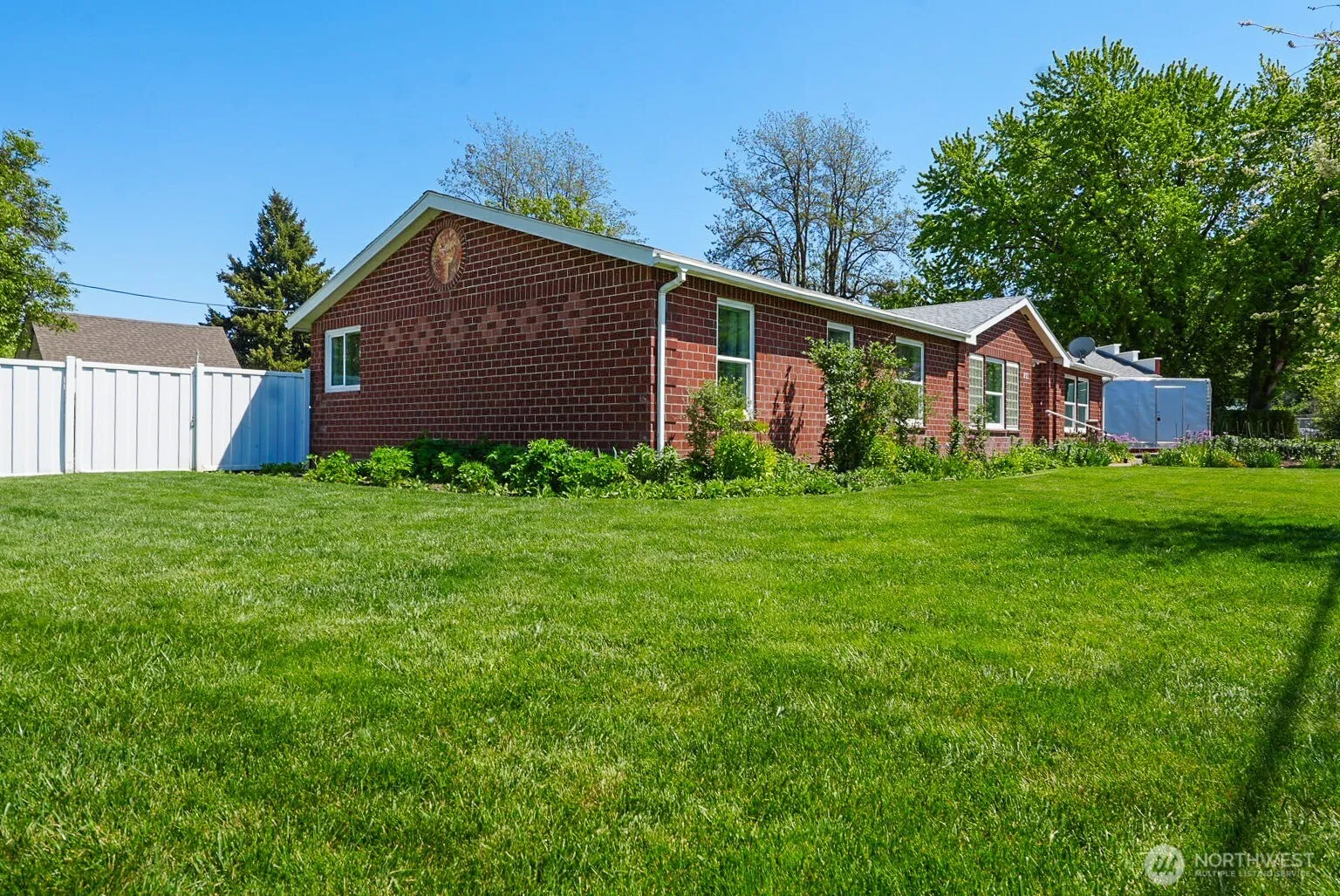 Wonderful 3 bed, 2 bath home with stunning custom updates. This home is extremely well maintained and boasts a living room, family room with wood fireplace and bamboo flooring, magnificent kitchen with beautiful cabinets, lots of storage, island w/eating space, and gorgeous marble flooring, large dining room, utility room w/built in office area, main bedroom with bath, two other bedrooms and full guest bath. Picturesque landscaped fenced backyard w/underground irrigation, 8 raised garden beds, patio w/sink, refrigerator, and custom reflexology path. The amazing 1562 sq ft garage/shop has lots of room for hobbies, crafts, or rebuilding your dream cars. Lot has RV space, 30/50 amp service, and dump station. New roofing completed in April.