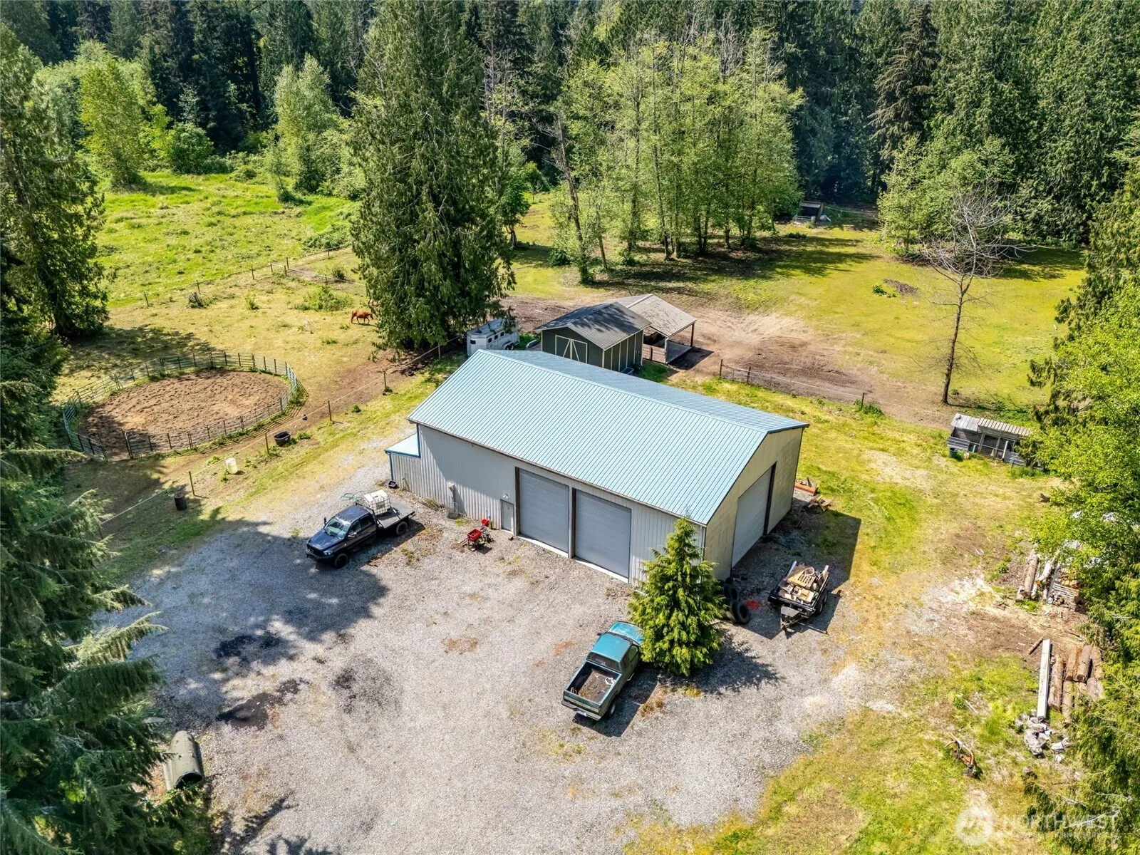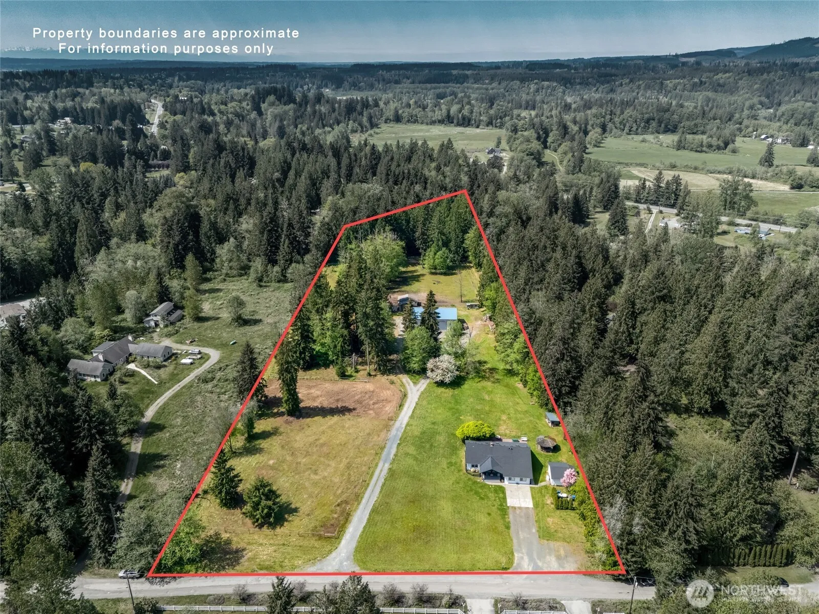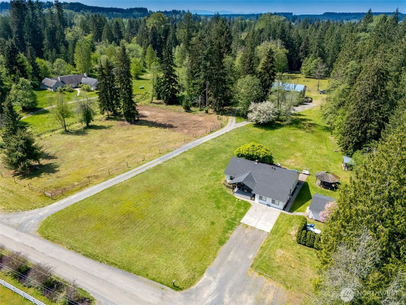 Remarkable Jim Creek rambler on 6.77 level acres with a 2400 sq ft shop plus 1440 sq ft loft (DADU or income), 400 sq ft hay barn, 3 stall loafing shed, 100’x150′ outdoor arena, 50’ round pen, & fenced/gated pastures. Open, updated home features vaulted clear cedar ceilings, LVP flooring, fresh paint, updated bathrooms, wood stove, and French doors leading to a deck, gazebo & firepit. A chef inspired kitchen shines with a 48″, 8-burner range, granite counters, big island, pot filler, all custom cabinetries. The shop has four 18′ doors/drive-thru, loft with exterior entry & Mini split, W/D, and air compressor. Plus, new panel, mini-splits/A/C, windows, 25KW generator, RV parking, gym, coop & kennel.A rural retreat w/a creek & Ebey Mtn views.