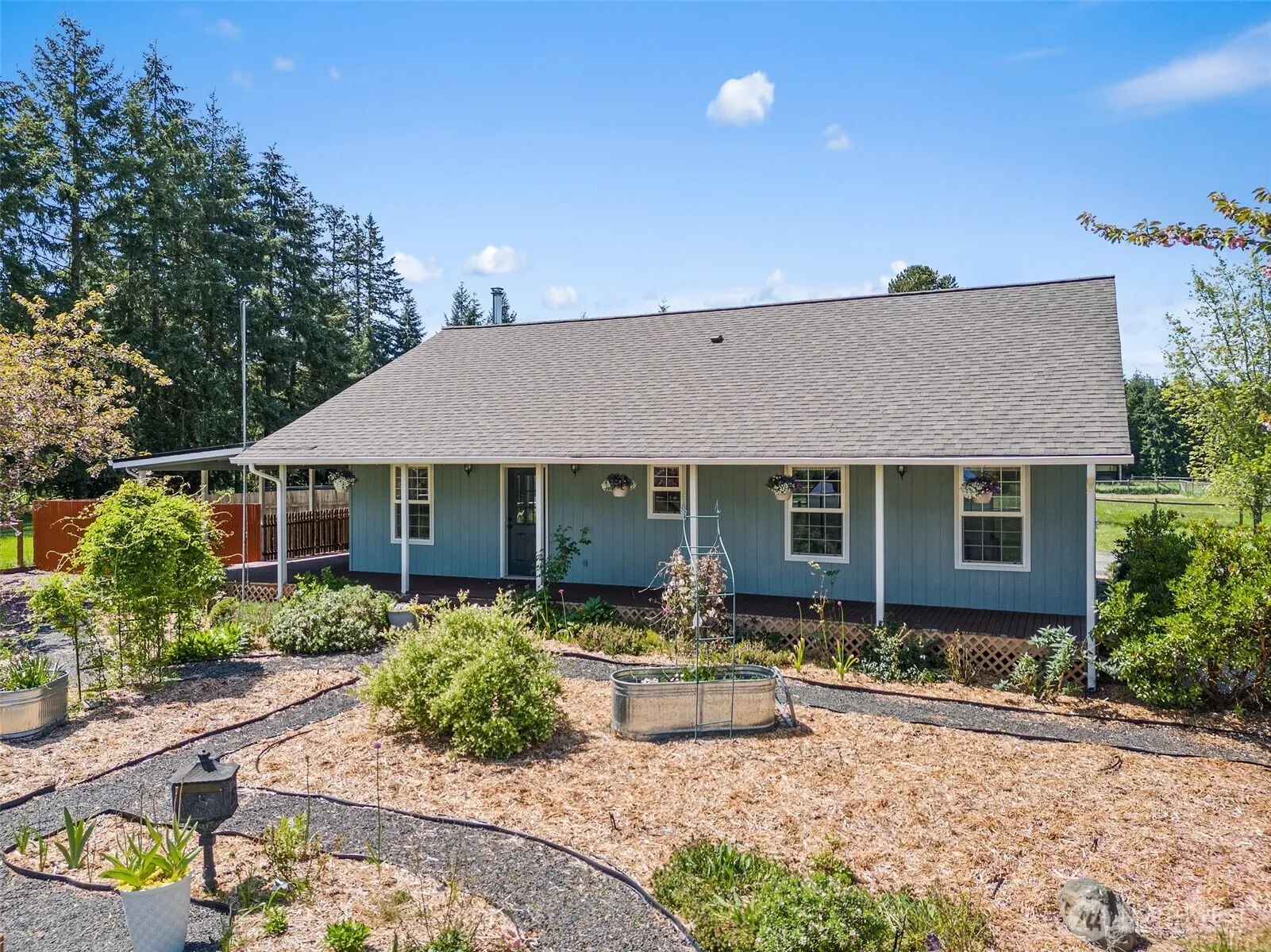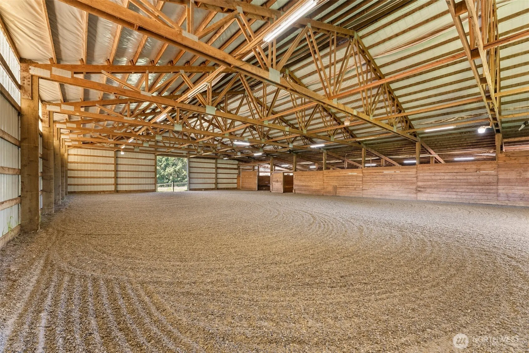 Premier equestrian estate offering a blend of modern living & EXCEPTIONAL horse facilities. Situated on 5.31 FLAT acres. Cute & Quaint home w/ 3 beds, 2 baths, Sun room, open concept living, wood stove, vaulted ceilings, kitchen w/ newer appliances, tons of natural light. The property boasts a PRISTINE 60×100 INDOOR RIDING ARENA w/ updated gravel/sand/rubber footing, 10 stalls, 2 heated wash racks, a tack room COMPLETELY MOVE-IN READY! 5-bay shed for Trailers/Trucks/Boats. 5 Pastures, 2 paddocks, 10X16 Greenhouse, Fruit Trees & X-fenced w/no climb & top rails. Other amenities include a shop, woodshed, RV hookup, & access to 20 acres of logging timber for riding. Recent upgrades totaling $150,000 making it a turn-key for equestrian lovers.