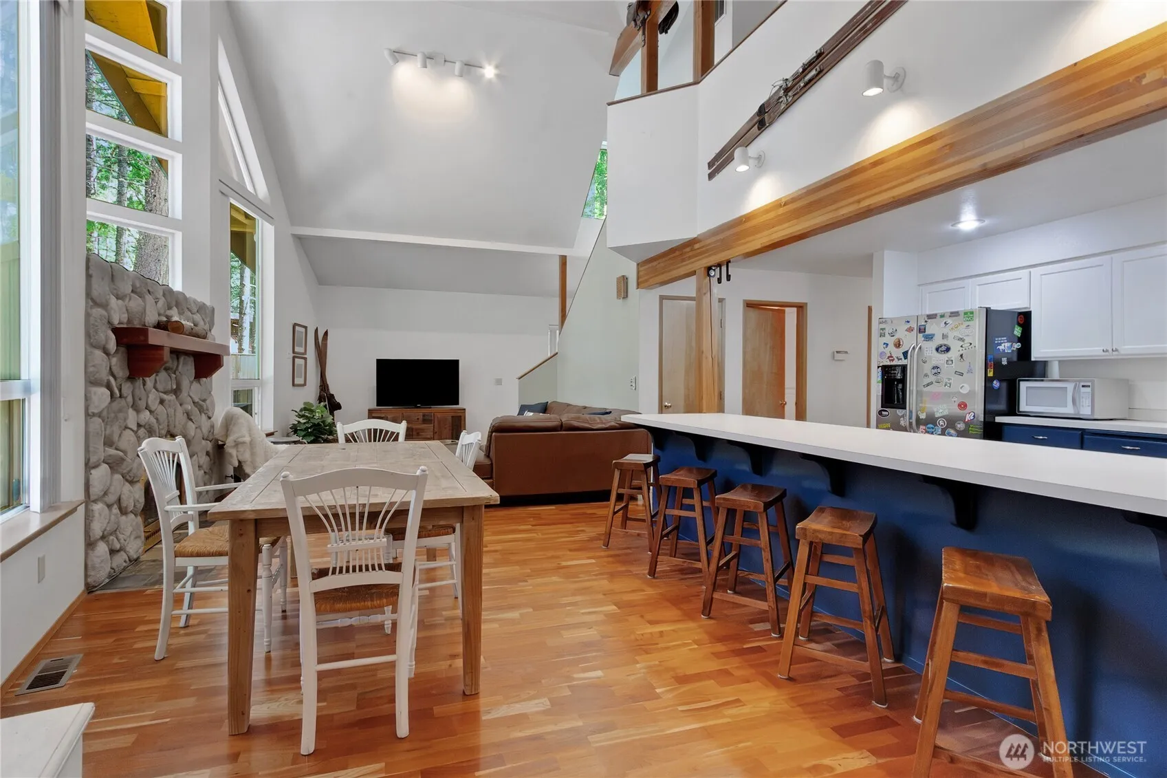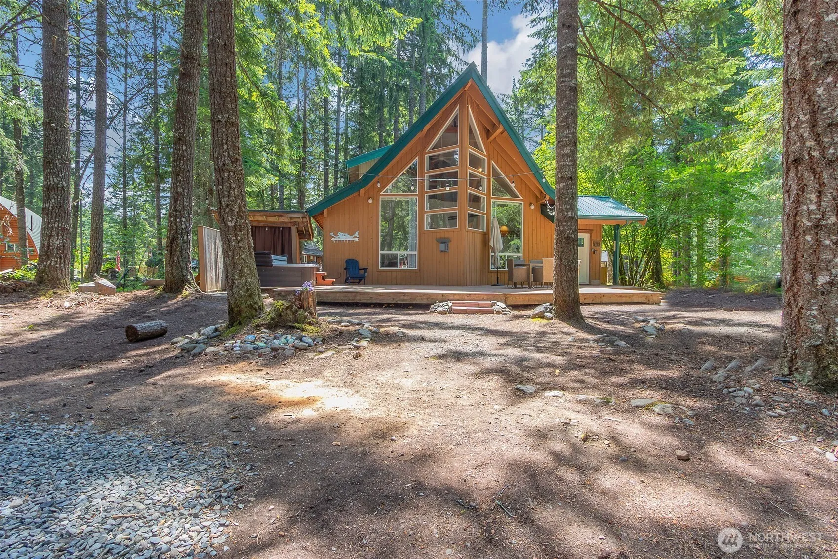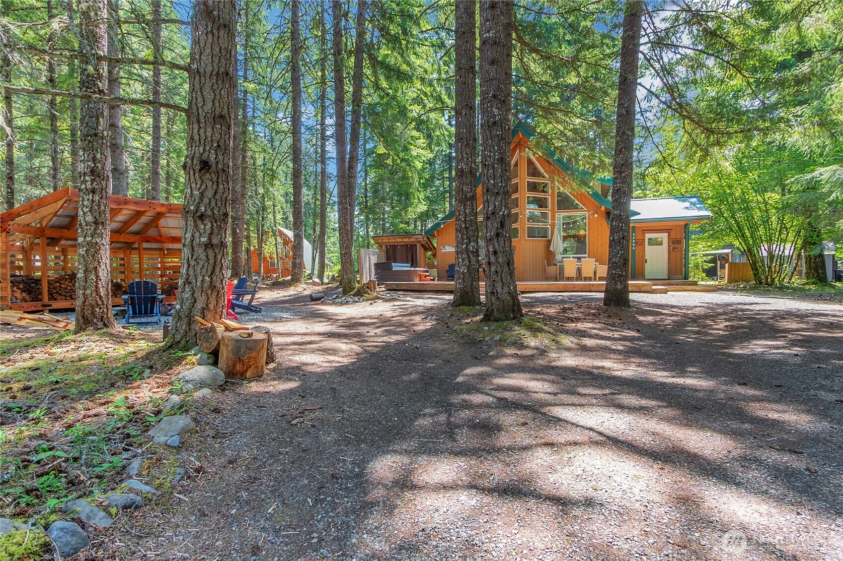 Ready for Ski Season! NW Mountain Chalet in Crystal River Ranch neighborhood, Greenwater, WA. Just 20 minutes to Crystal Mtn Resort & Mt Rainier Nat’l Park. 1,562 SF cabin on a 10,000 SF lot. Open great room, vaulted ceilings, gas fireplace w/river rock hearth. Kitchen w/ loads of cabinetry. Upper level primary bedroom w/ private bath, gas fireplace & walk-in closet. Loft area for reading, working or sleeping extra guests. 2 main level bedrooms & full bath. Utility room leads out to a fenced dog run. On-demand whole house generator. Large entertaining deck. Cozy around the campfire or soak in the hot tub telling stories after a day in the mountains w/ friends. Community clubhouse, play fields, trails & more. Most furniture included.