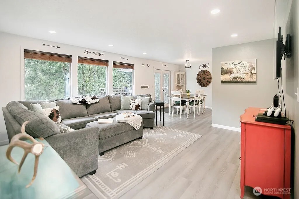 CASTLE ROCK– Nearly 6 Acres– REMODELED & UPDATED in 2022– 1 Level– 2684 Sqft– 5 Bdrms/3 Ba– Living Rm– Kitchen w/Dbl Ovens, 2 Pantries, NEW Appl, NEW Quartz, NEW Custom Cabinets & Pull Outs– Dining Area– Primary Bdrm w/Ba– BONUS Rm– NEW Interior & Exterior Doors– NEW Tile & LVP Flooring– Hardwoods– NEW Tankless H/W Heater– Heat Pump & AC– Vinyl Windows– NEW Interior Paint & Fixtures– NEW Water Softener & Filtration– ATTACHED ADU / Sep Liv Quarters has 2 Bdrms/1 Ba– Great Rm w/Fireplace– Full Kitchen w/NEW Appl, NEW Quartz Countertops– 48×20 SHOP + Carport– Yard– Chicken Coop– Butterfly Garden– Covered Patio– Deck– Shed– Individual Well– Septic– Backs Up to State Park– Less than 1 Hour to Vancouver/PDX Area