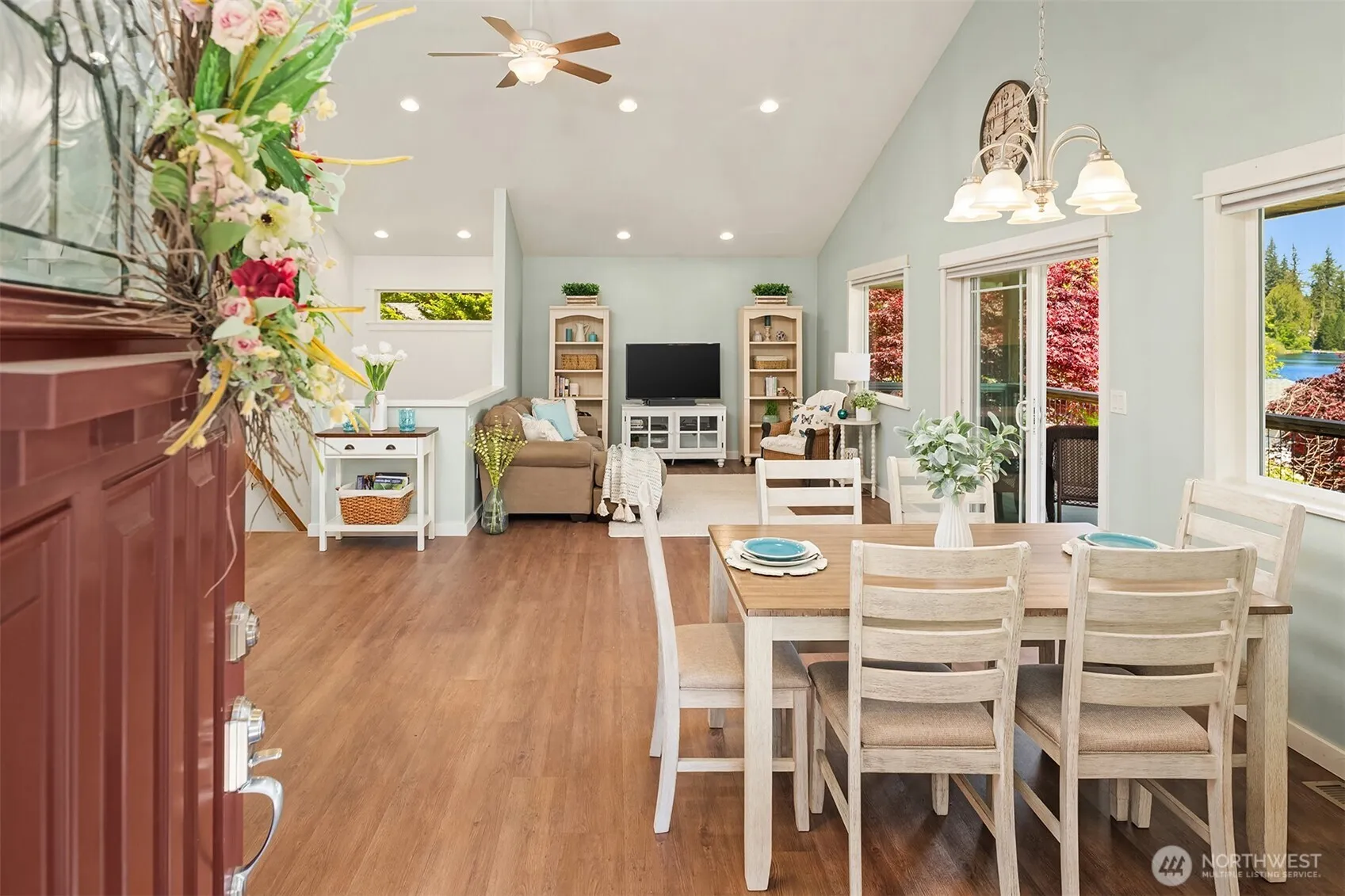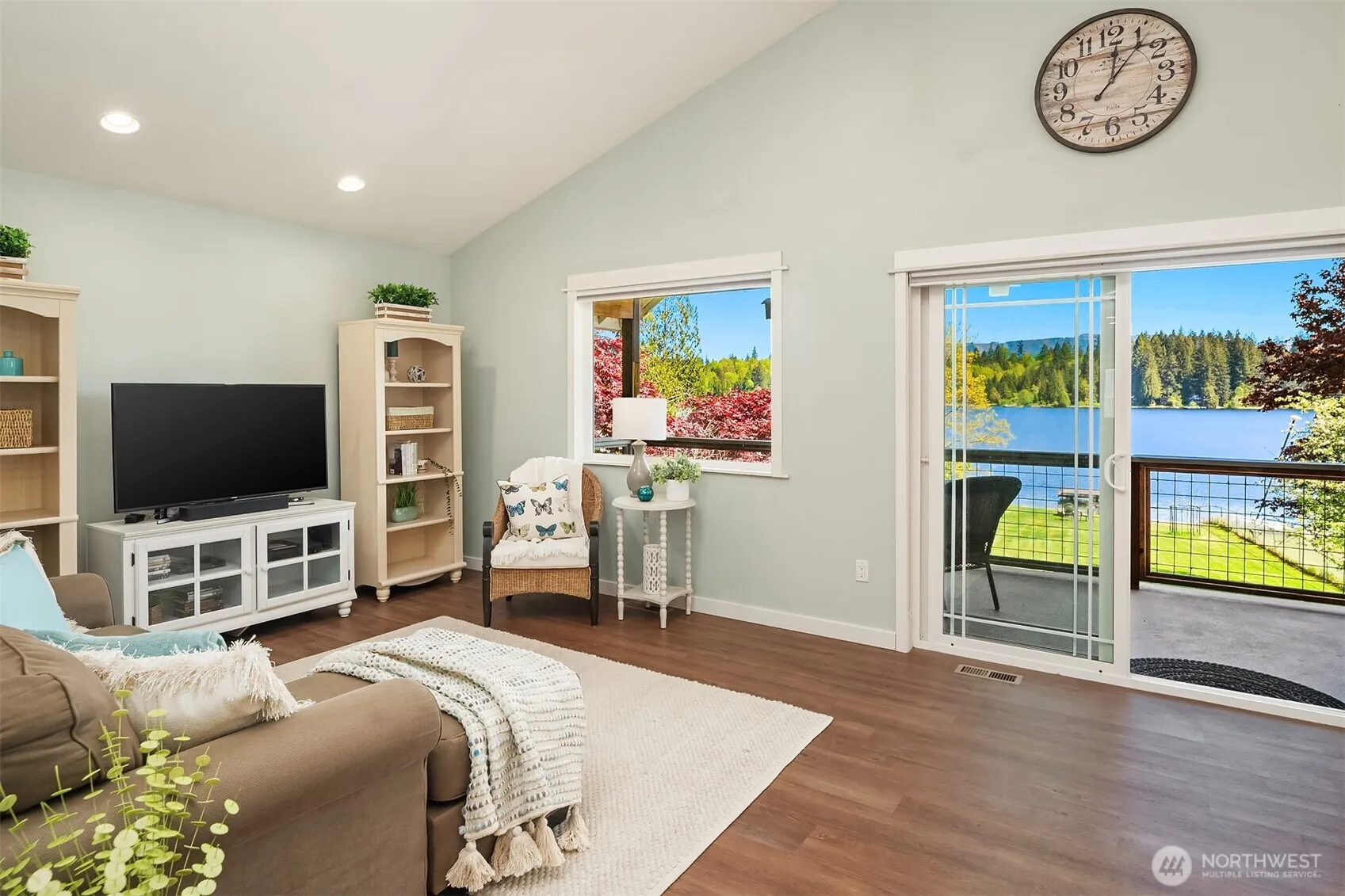 Enjoy the Lake Joy lifestyle from this charming waterfront cottage offering 50′ of no-bank lakefront with dock. Stunning lake and mountain views from the open-concept home. Completely rebuilt from the foundation in 2016, this comfortable great room floor plan offers vaulted ceiling, easy-care luxury vinyl floors, a cheerful kitchen w/center island, shaker style cabinets, quartz counters & stainless appliances. The lower level bonus room with .75 bath is great flex space. Wrap-around porch! Large 2-car garage & shop w/220 amp & loft storage. Garden space & apple trees. Lake Joy is an easy commute for everyday living or a special week-end getaway. Idyllic setting to canoe, kayak, swim, fish & live the peaceful lifestyle. Pre-inspected. Hurry!