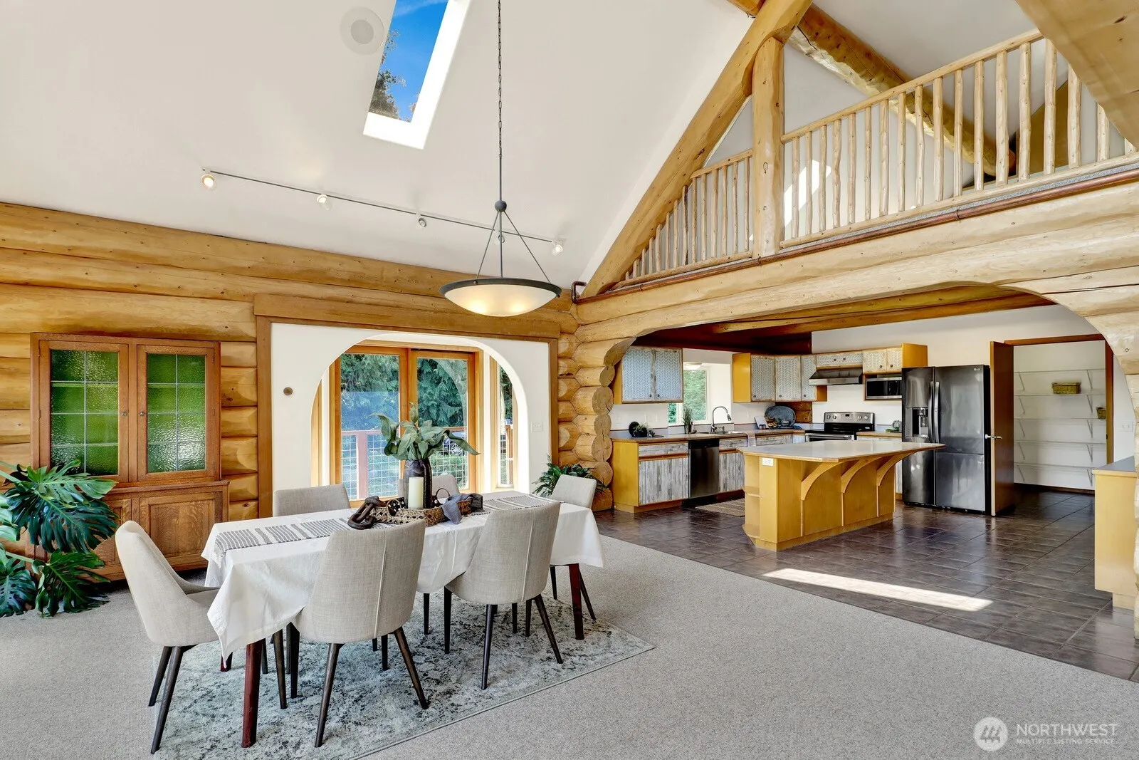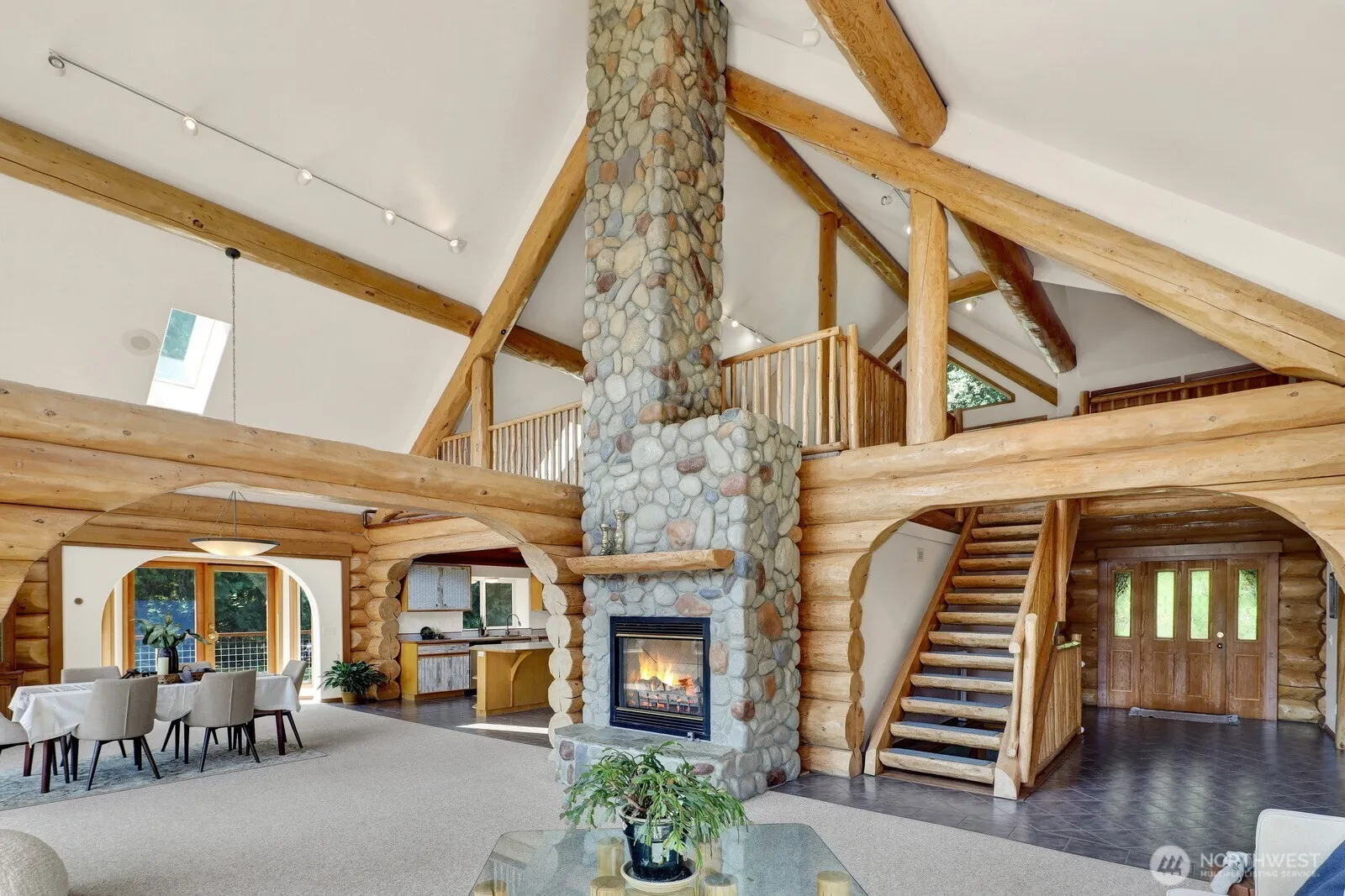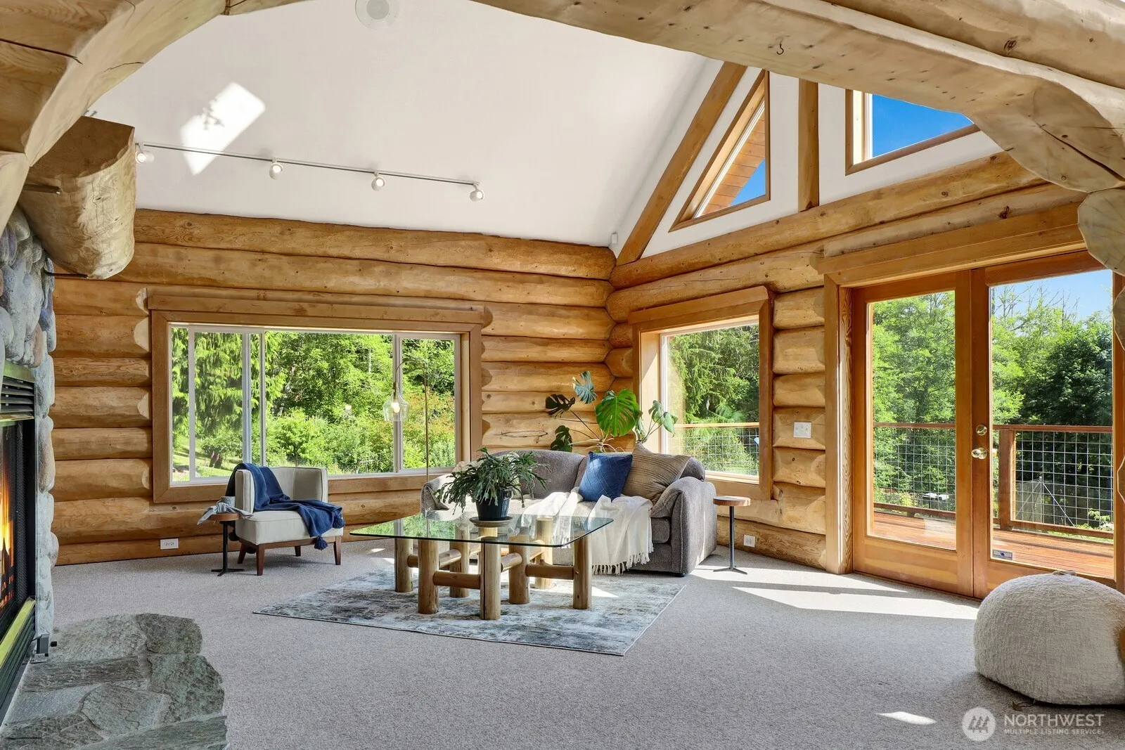 A rare opportunity to own an immaculate white spruce log home that perfectly blends rustic elegance with modern brightness. Vaulted ceilings and expansive windows frame majestic mountain views, while sections of white interior walls keep the space light and airy. This private, gated sanctuary is a gardener’s dream with raised beds, fruit trees, berries, and lush natural surroundings teeming with wildlife. Designed for multi-generational living or extended guest stays, the lower level includes a stylish 2-bedroom suite with its own kitchen, living room, and flex space. Ideal for entertaining, the expansive wraparound deck offers unforgettable views, and the property includes a sports court, RV parking, and multiple outdoor gathering spaces.