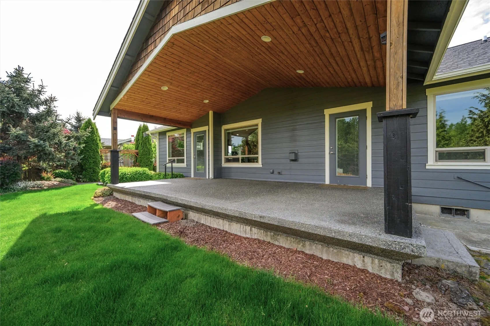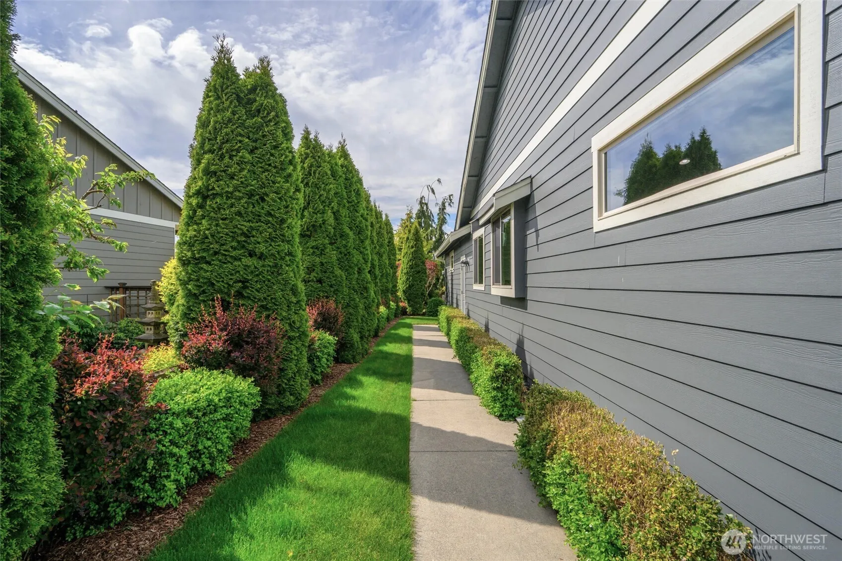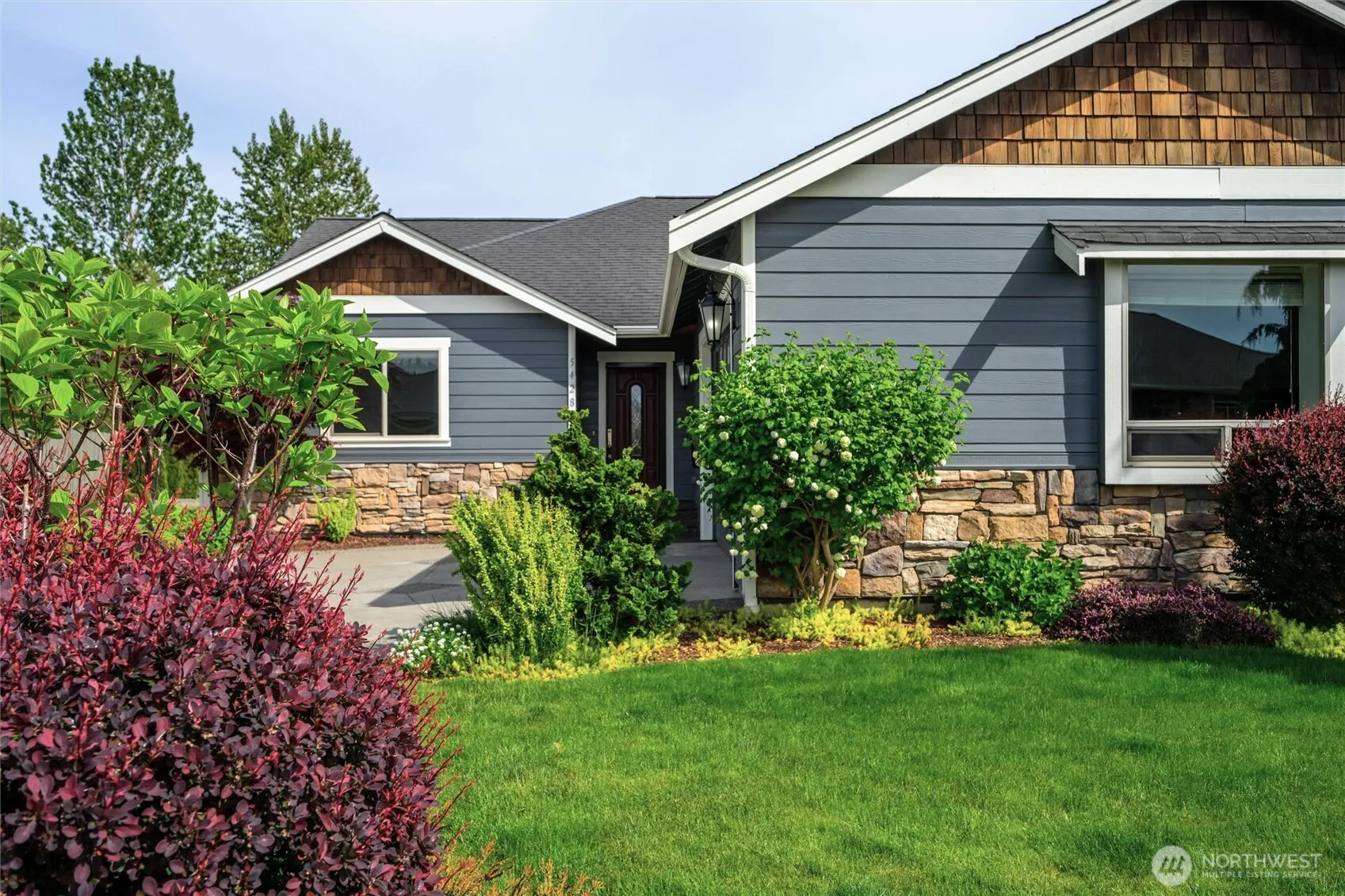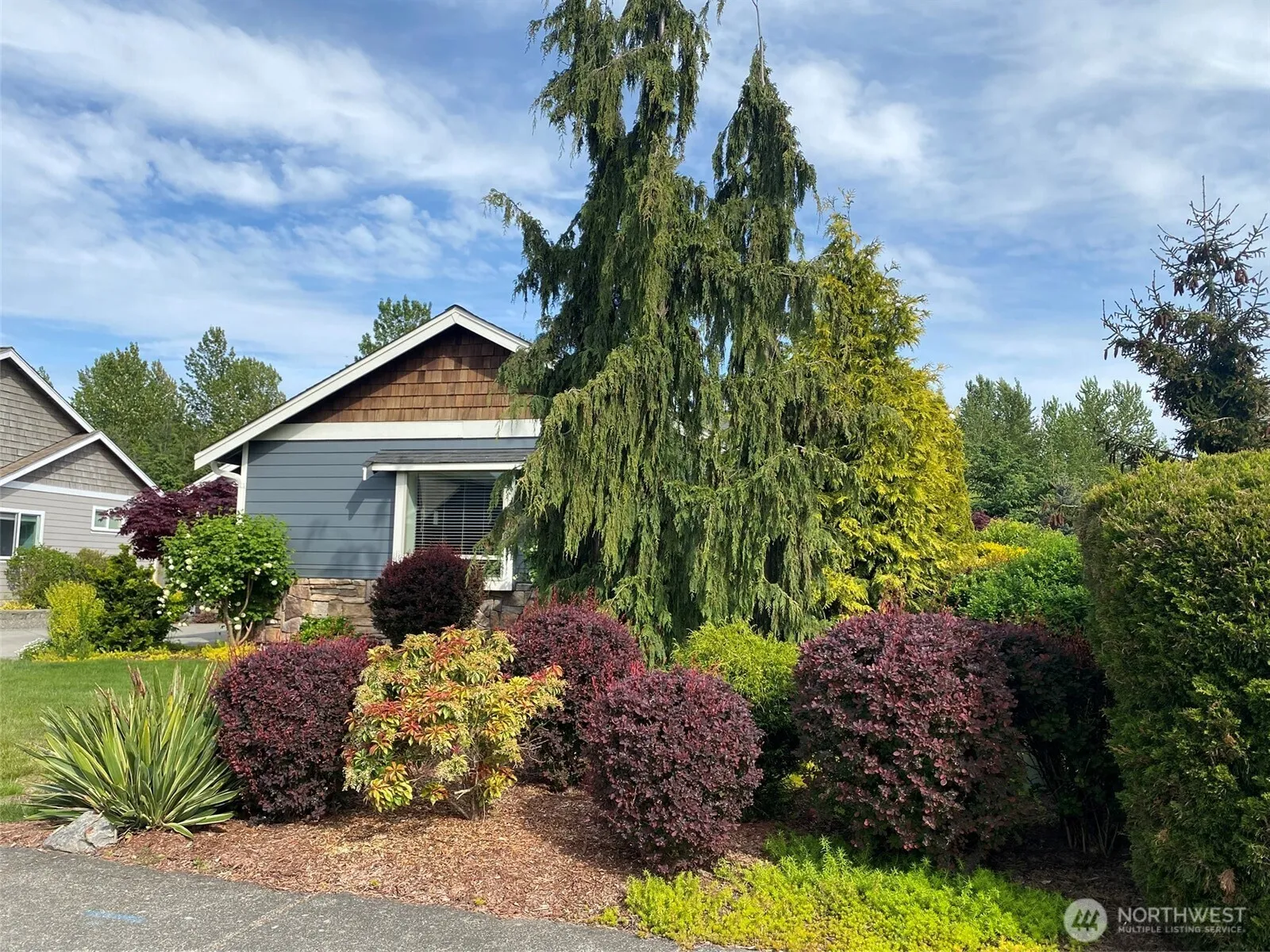 PRISTINE RAMBLER nestled in the quiet Skyview neighborhood, where pride of ownership abounds. 3 bed/2 bath open plan features airy vaulted ceilings, a gas fireplace & luxury vinyl plank flooring. Extensive windows throughout welcome the natural light. Bright & functional kitchen with walk-in pantry & breakfast bar. Primary ensuite bath & generous walk-in closet. Cordless window shades, 2 ceiling fans & many accessibility/safety features like a garage entry ramp. Glass doors open to a huge covered patio with gas BBQ connection. Delightful fenced backyard with manicured gardens & a striking water/rock feature. It backs onto a 15-acre green space & wildlife sanctuary. Meticulously maintained, with many upgrades, it’s your perfect forever home.