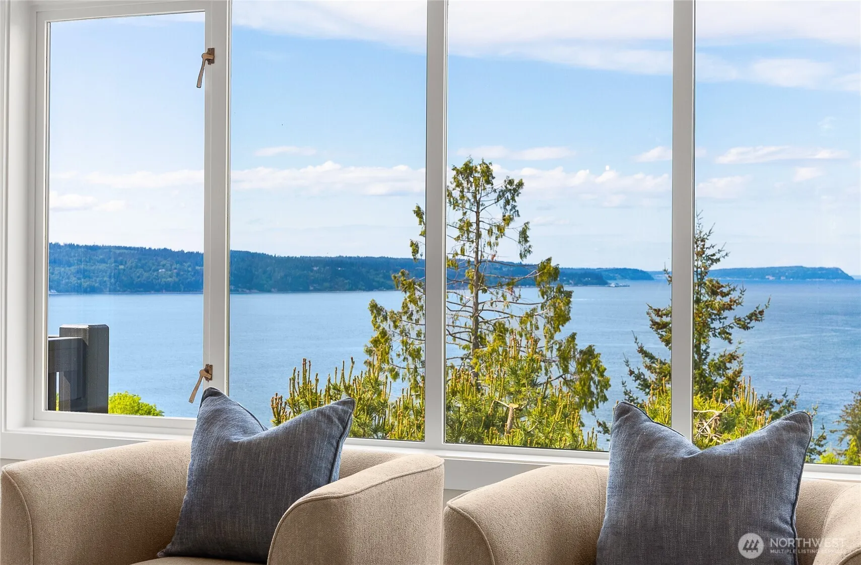 Experience 270 degrees of sweeping views of Possession Sound, the Olympics & Mt. Baker. This luxurious & newly remodeled craftsman showcases custom design, high-end finishes & panoramic vistas from nearly every room. Bright & light-filled w/vaulted ceilings, skylights, gourmet chef’s kitchen, open concept dining, 2 living spaces & elegant primary suite that has its own east wing w/huge bed, private deck, office, spa-worthy bath & 2 walk-in closets. The main floor also features a spacious guest room w/private bath. Go downstairs for 2 lrg beds, 1.5 bath, storage, massive rec room & huge 2-car garage. Unwind outside on the newly stained 2-tiered entertainment deck overlooking unmatched views, mature landscaping & peaceful privacy.