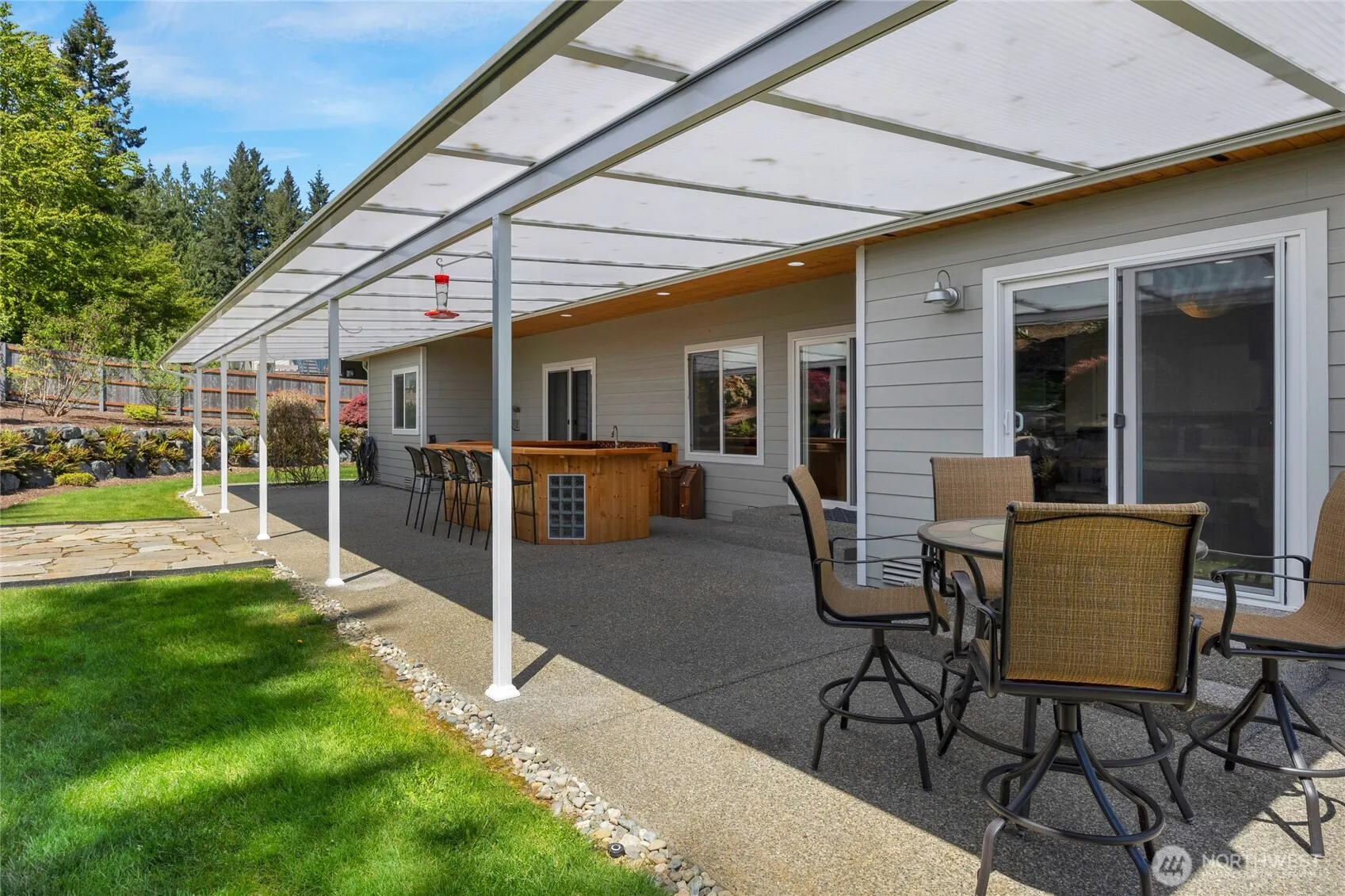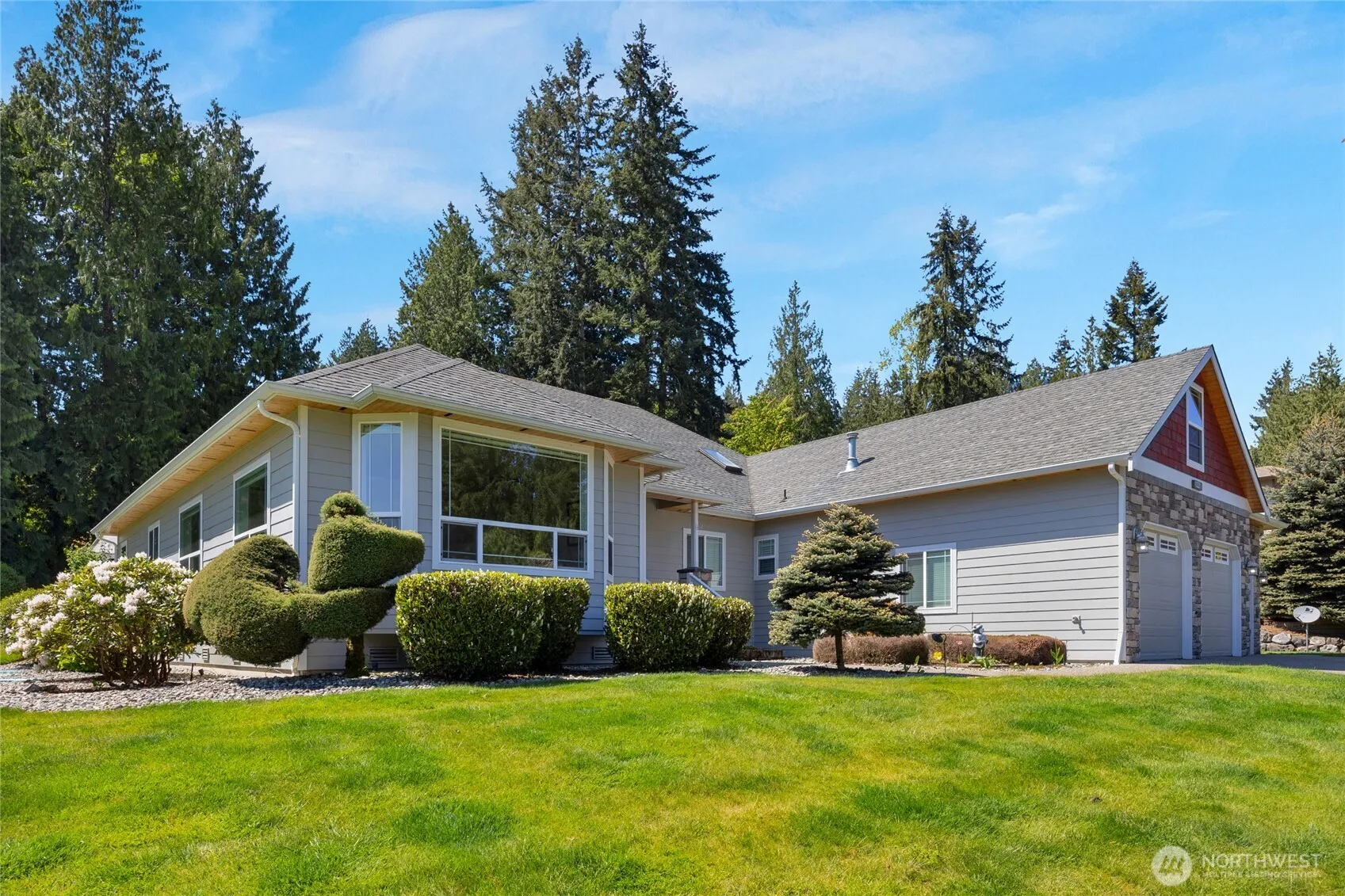 Welcome to this exceptional rambler set on a full acre in the sought-after Aspen neighborhood. This beautifully landscaped property backs to a peaceful greenbelt and boasts scenic mountain views. The gourmet kitchen is a chef’s dream, featuring a large breakfast bar, granite countertops, double ovens, wine fridge, mini fridge, and a cozy eating nook. Spacious family room offers soaring ceilings, a gas fireplace, and direct access to the backyard. Rich cherry hardwood floors flow through the entry, hallway, living, and dining rooms. Retreat to the luxurious primary suite, complete with its own gas fireplace, a spa-like five-piece bath, walk-in closet, and a private slider to the yard. Outside, entertain in style under the large covered patio