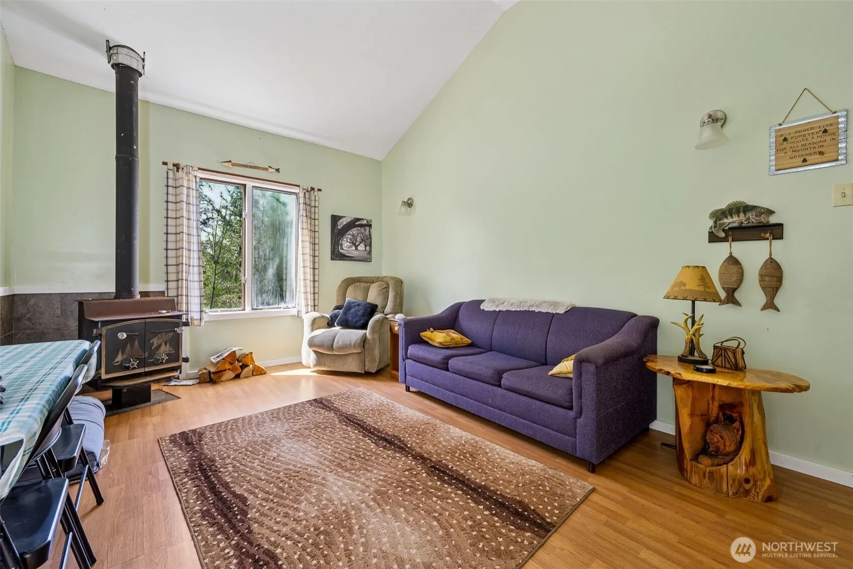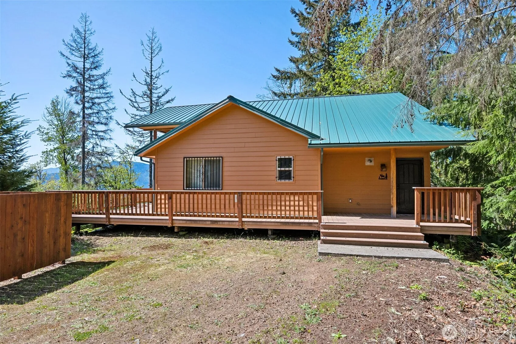 True off-grid living with this stunning custom-built home, offers breathtaking views. Vaulted ceilings & exposed wood beams enhance the open-concept living. Custom woodwork & raw edge finishes bring warmth & character. The kitchen features granite countertops, a propane range, & opens to the dining & living areas. Large windows provide natural light. Two primary suites include private ¾ baths, while a large balcony provides space for guests or gatherings. The home comfortably sleeps ten! Enjoy hardwood floors, tile accents, propane fireplace, & large ceiling fans. Step out on the deck & immerse yourself in the wildlife around you. The property offers a shop w/ finished living quarters which sleeps two, ideal for guests and income potential.