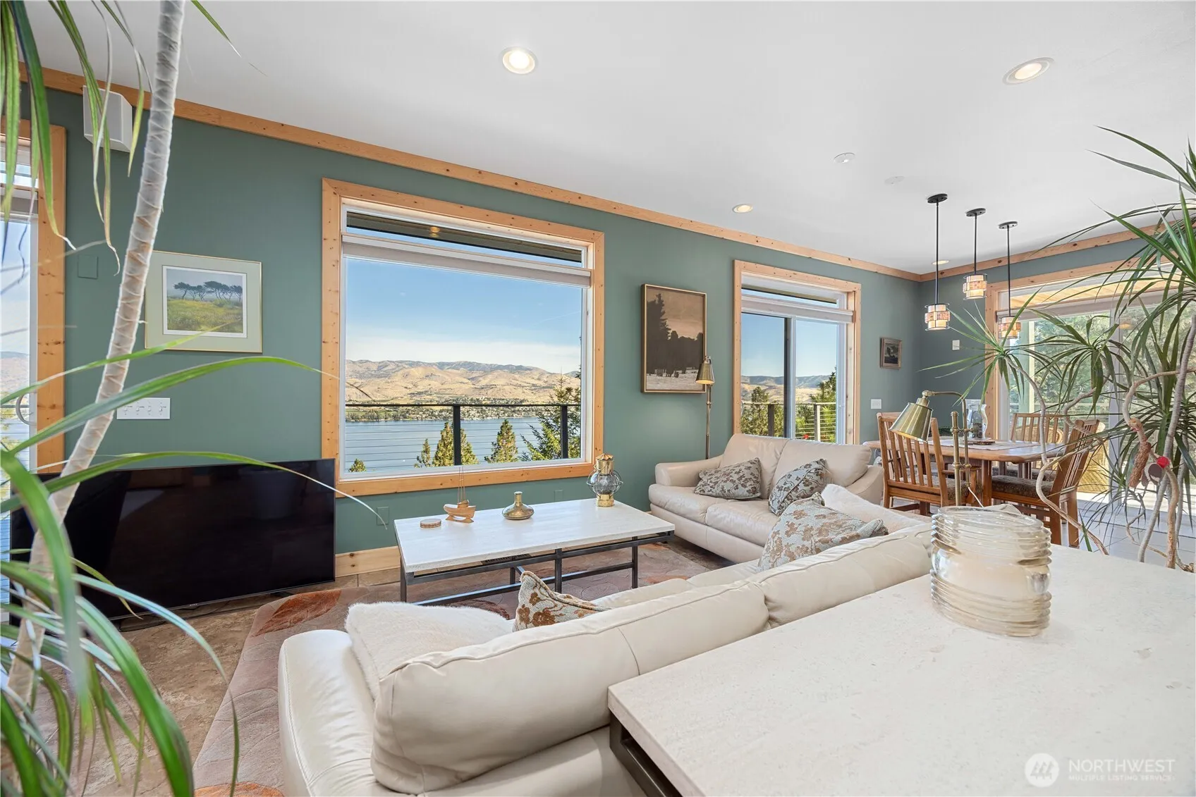 Tucked into the natural beauty on Lake Chelan’s South Shore, this studio-style home offers sweeping uplake views of the Lake, Stormy Mtn, Slide Ridge as well as Manson Bay and Wapato Pt. Above the 2-car garage, the open-concept living space features a well-appointed kitchen & a thoughtful design that lives larger than expected. A spacious wraparound deck creates the perfect setting for outdoor entertaining or quiet mornings w/a view. There is a 2nd full BA downstairs, & a room (could be 2) framed for Egress which could serve as additional living space. Just minutes from the state park boat launch. Excellent “Lock & Leave” opportunity set amongst million dollar homes where privacy abounds. Possible STR….your Lake Chelan escape awaits.