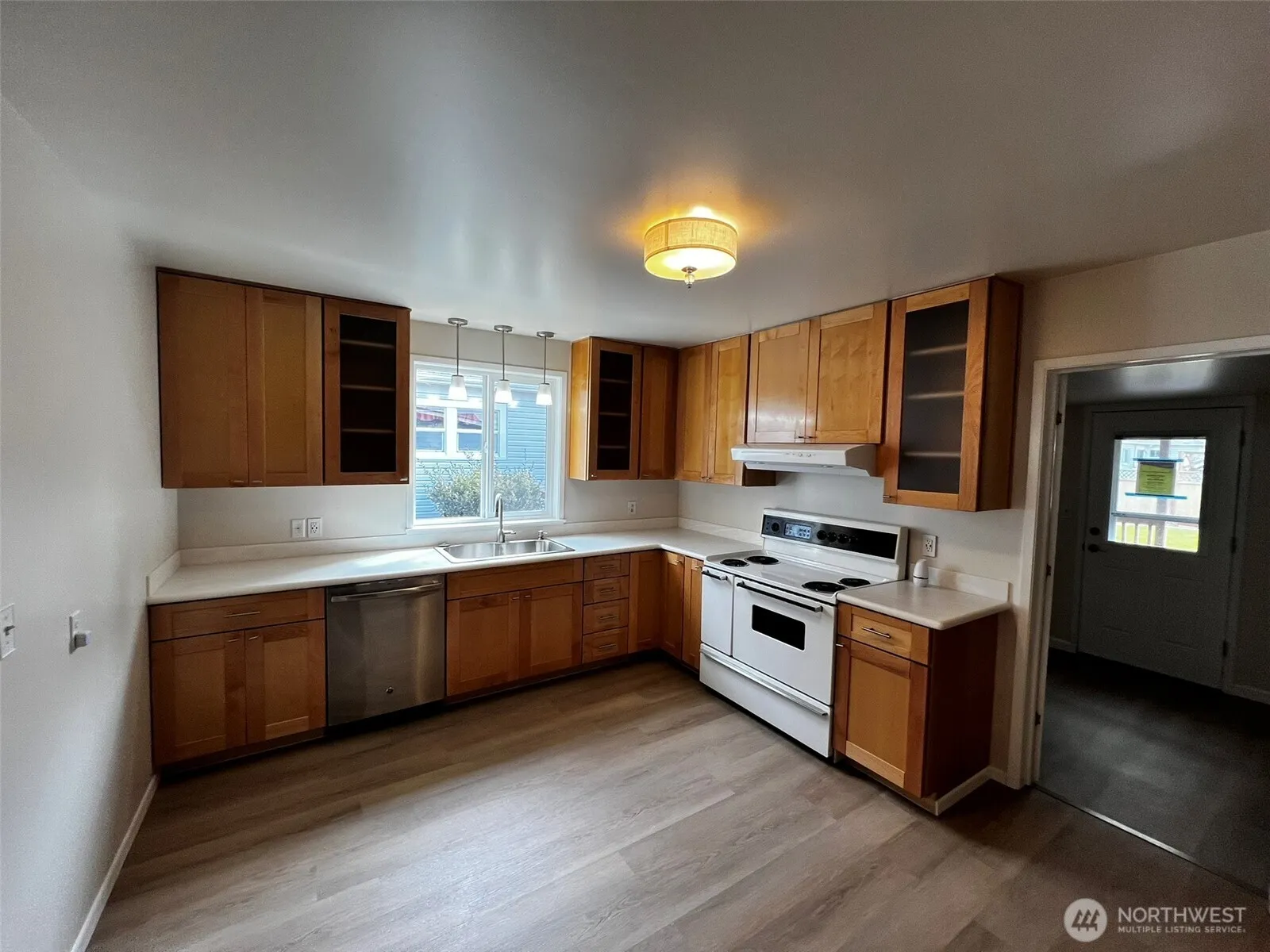 Charming and comfortable this inviting 3 bedroom 1 bath home features a welcoming covered front porch and a spacious living room that flows into a combined dining area, perfect for entertaining. The nicely updated kitchen includes a cozy eating area and modern finishes. You’ll love the bathroom with walk-in shower. Step out onto the covered back deck overlooking a fully fenced yard with handy storage shed. Enjoy the convenience of a good sized laundry room, a ductless heat pump unit and natural gas hot water.