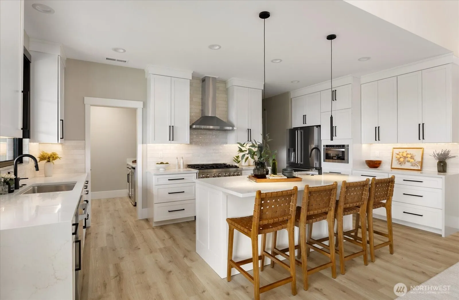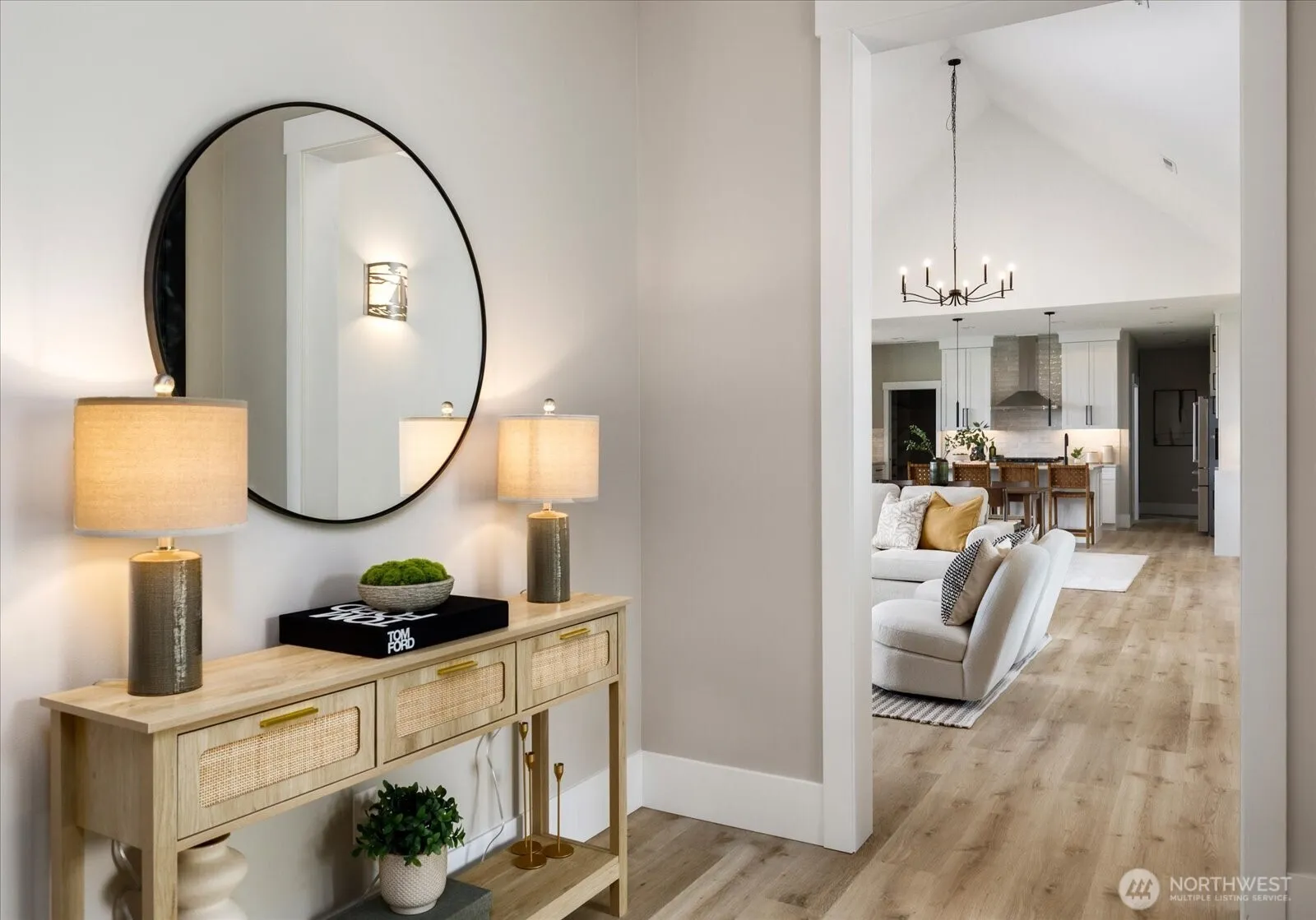 Exquisite new construction above Cultus Bay with stunning easterly views of the Puget Sound & Olympics! An elegant single-story home resides on a sprawling 1+ acre in the private & desirable “Possession Point”. This custom design by Flat Iron Architects presents a phenomenal & unique floor plan centering around a magnificent great room with cathedral-style ceilings, seamlessly blending the Chef’s kitchen & dining area adorned with walls of windows to take in the awe-inspiring views. Window walls open to a full length covered deck providing extensive outdoor living. The split bedroom layout allows a separate Primary suite “wing” with an adjacent bonus space, while the opposing “wing” has a large secondary suite with another additional room.
