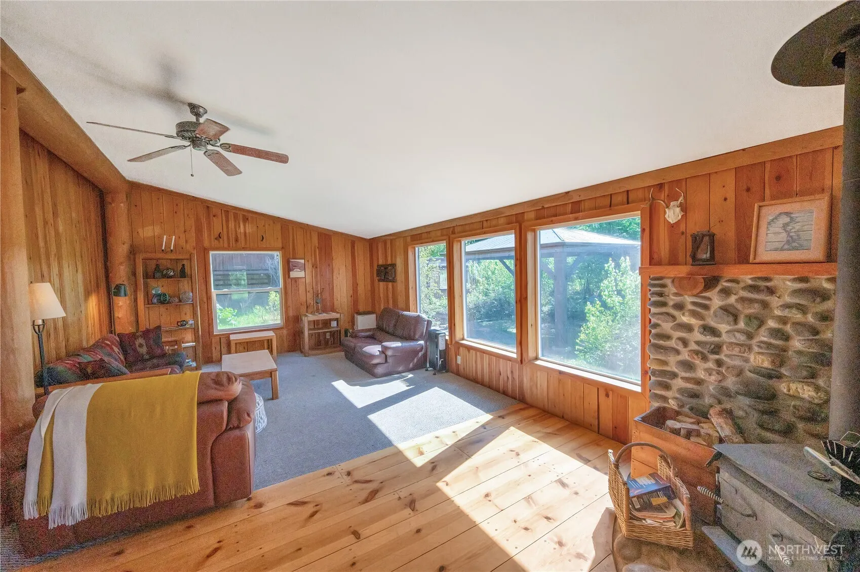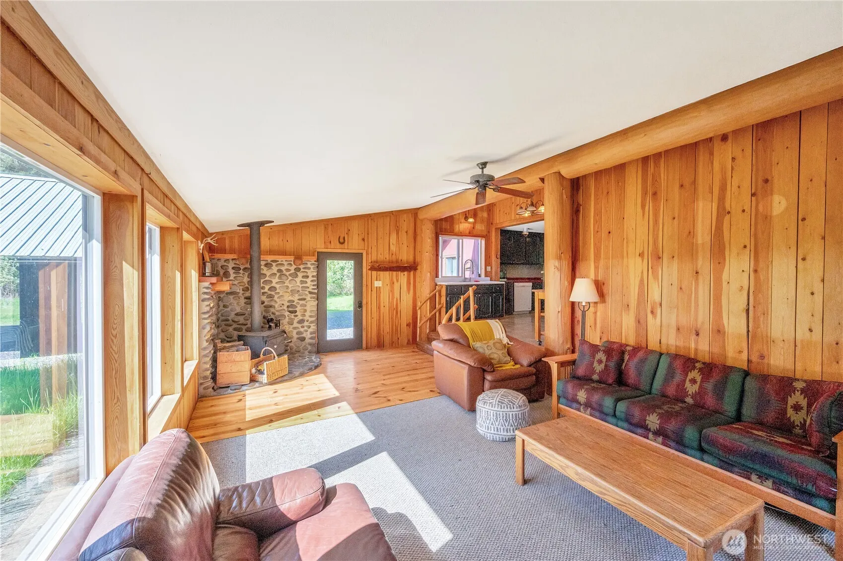 Rustic Mountain Home situated on 1.2 acres in the Village of Maple Falls. Beautiful vaulted exposed tongue and grove ceilings and Fir lapped walls & floors make this home feel charming and warm. Enjoy your coffee while warming up next to one of the two wood burning stoves. Kitchen has Farm sink, with good storage in the adjoining laundry room. Two rooms upstairs can be used as bedrooms or use one as an office. Enjoy Mountain views while in the different areas in the yard like the gazebo, greenhouse, deck, and firepit area. The Barn w/3 stalls is great for storage, workshop, and tools. ADU has two twin beds for extra house guests. Two tax parcels with potential for 2nd build site. Close to Mt Baker Ski Area & outdoor activities!