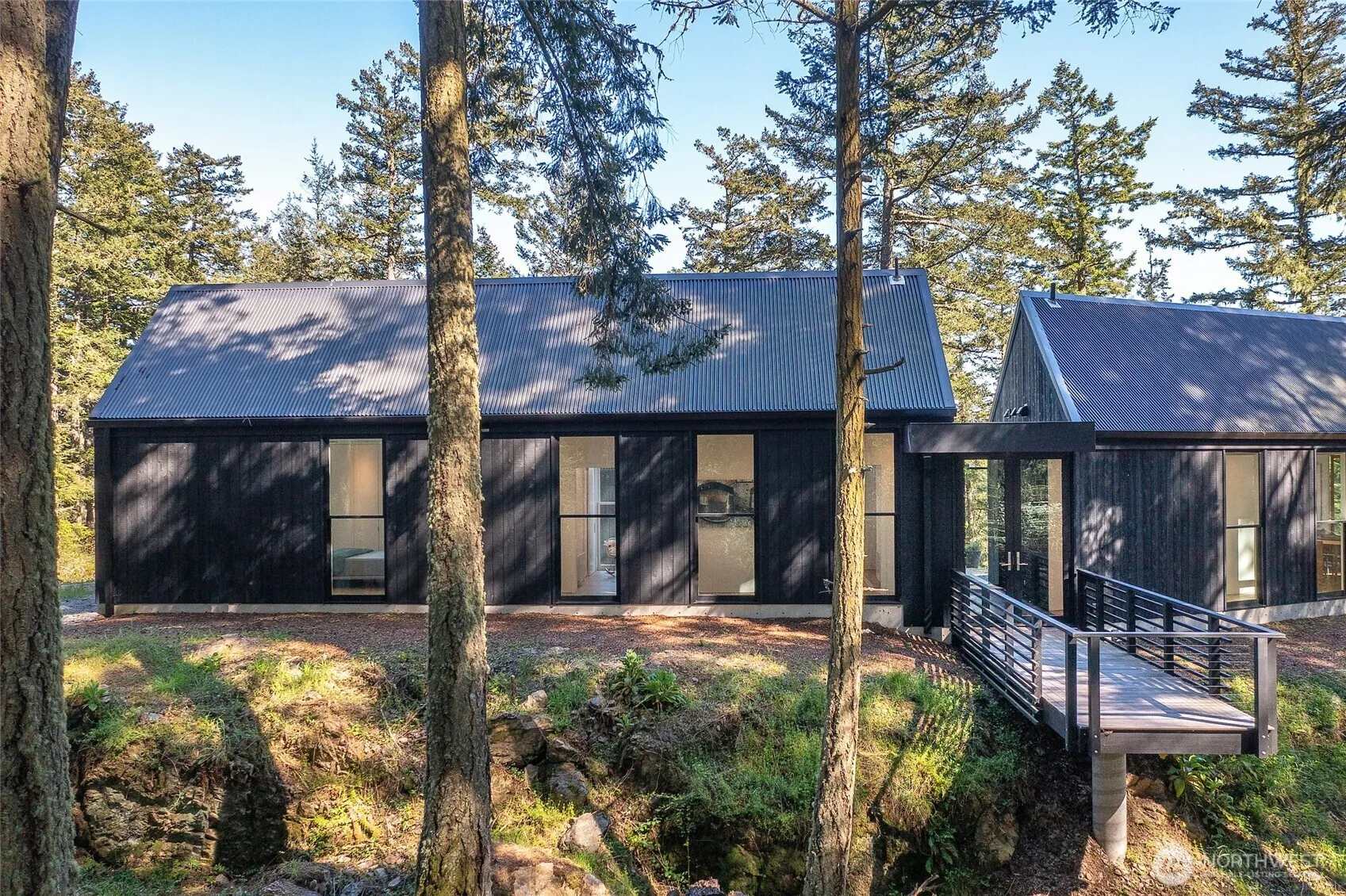 Immersed in nature overlooking the water & the woods, this recently completed stunning Scandi Modern design by Heliotrope Architects flows gracefully from the entryway moving south to the light-filled living area and onto a large view deck. Vaulted-ceilings, white oak floors & warm crisp white walls reflect sunlight streaming in the floor to ceiling windows. The 3 bed, 1.5 bath, 1552 sq. ft. design incorporates kitchen, dining and living area. A wooden walkway leads you through the entry to a cantilevered forest deck walk creating a natural division of communal and private spaces. Bedrooms face the forest edge overlooking a mossy knoll. Surrounded by numerous outside socializing spaces to enjoy the beauty. Mostly furnished.