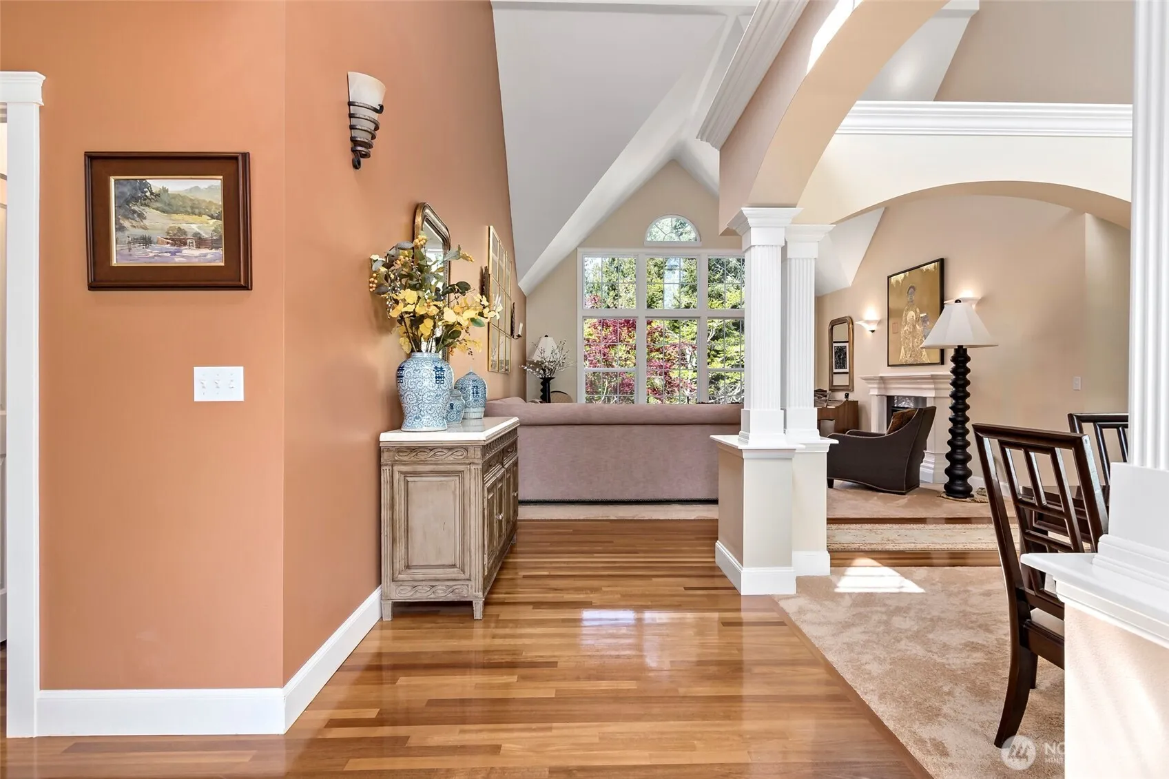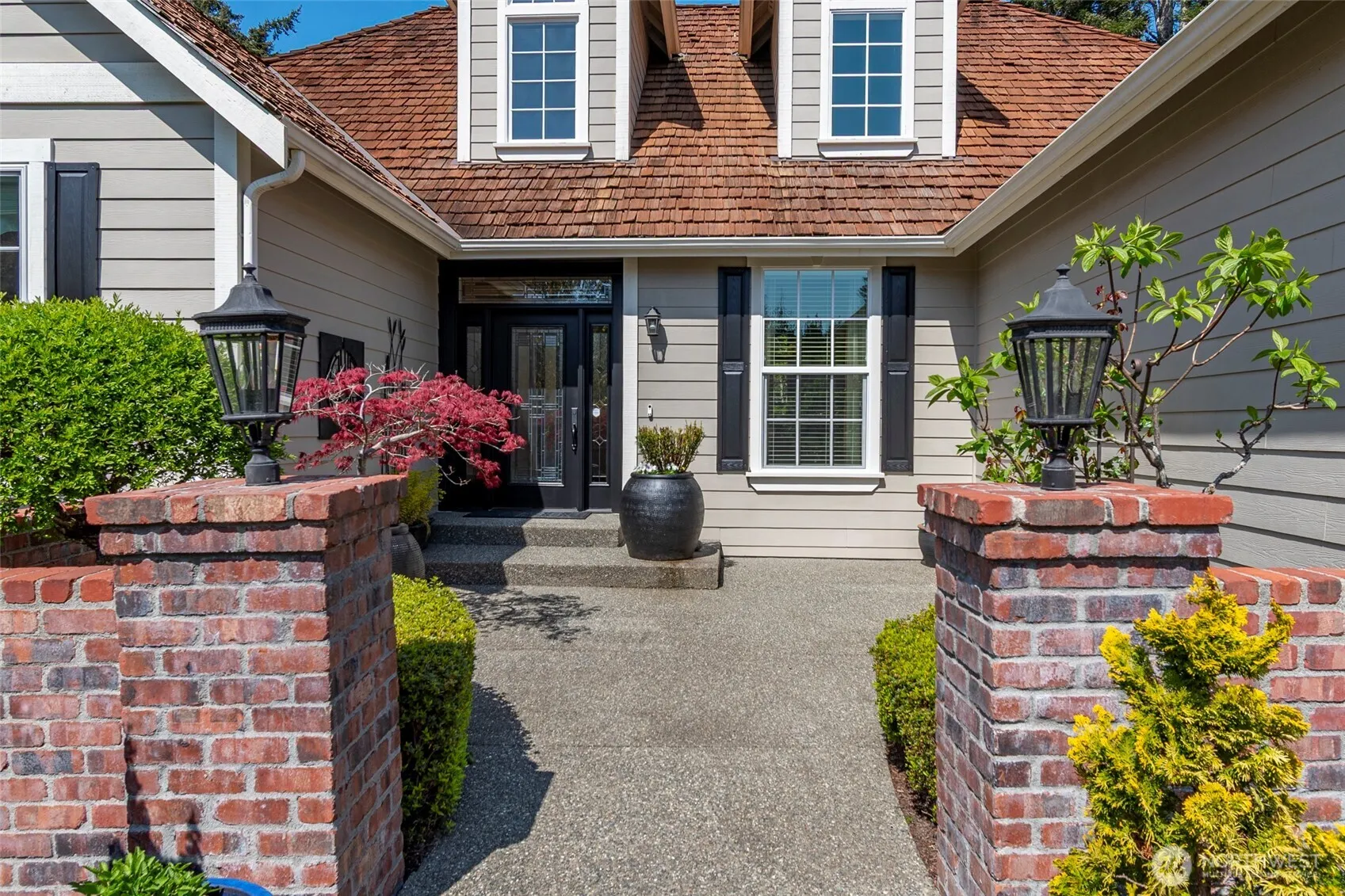 Elegant one level home on a large lushly landscaped corner lot in the coveted Parkside neighborhood! This beautiful well-appointed home offers hardwood floors, crown molding, formal living room w/ soaring vaulted ceilings, sunlit formal dining room, & a dual sided fireplace adjoining the spacious family room & formal living room. The gourmet kitchen features granite counters, double oven, butler’s pantry, & island w/ eating bar. Luxurious primary suite w/ cozy gas fireplace, private deck, jetted tub, dual vanity & tiled shower. Spacious office with built in shelves & 2 generous sized guest bedrooms. Enjoy entertaining on your back deck overlooking the beautiful park-like yard. New 50-year composition roof to be installed before closing!!!